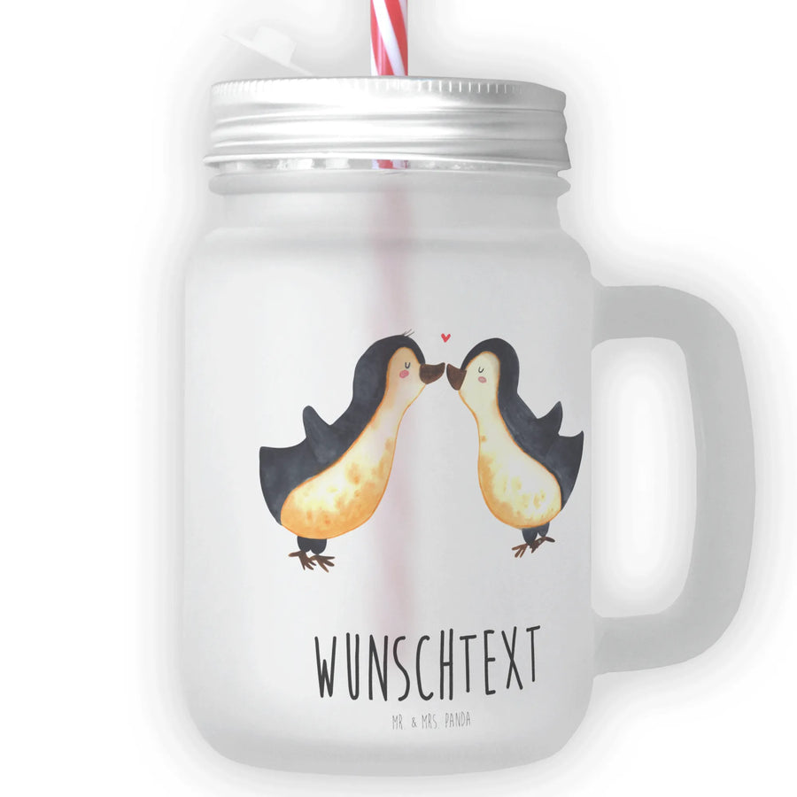 Personalised mason jar drinking glass Penguins in love