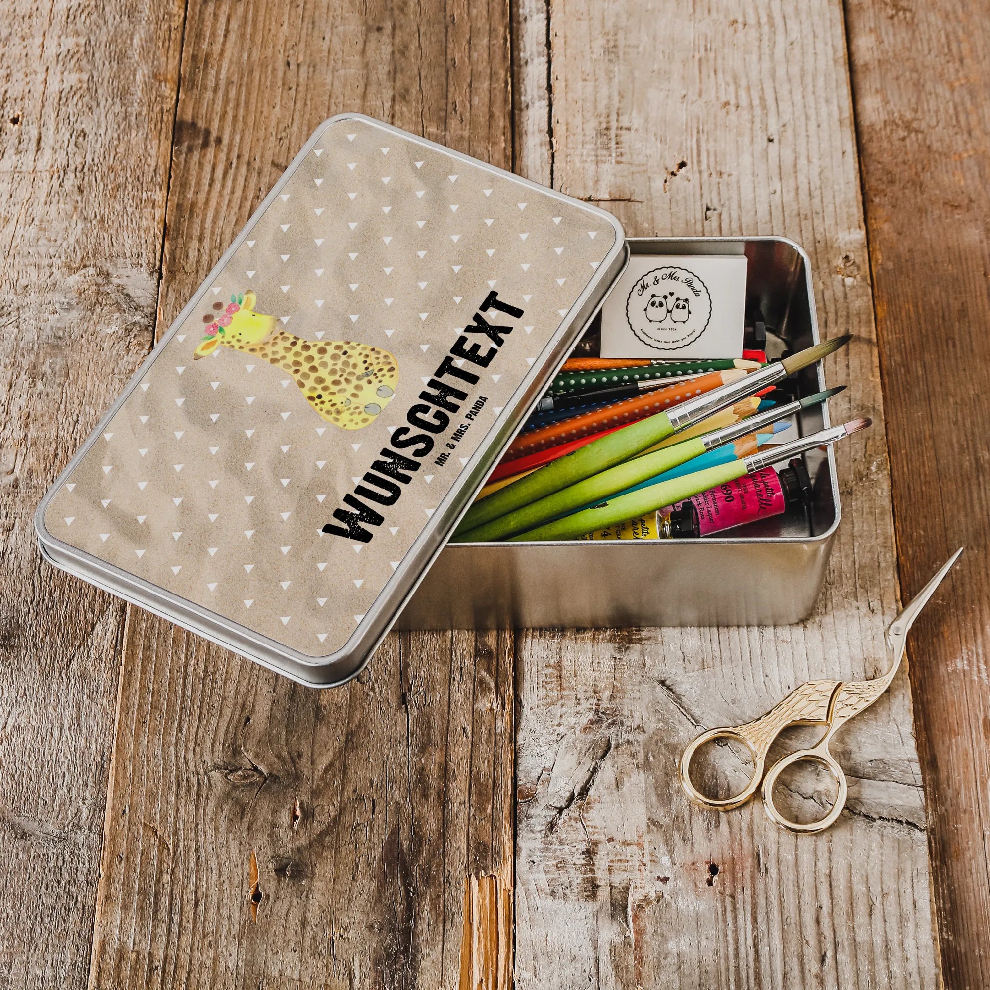 Personalised metal tin giraffe flower wreath