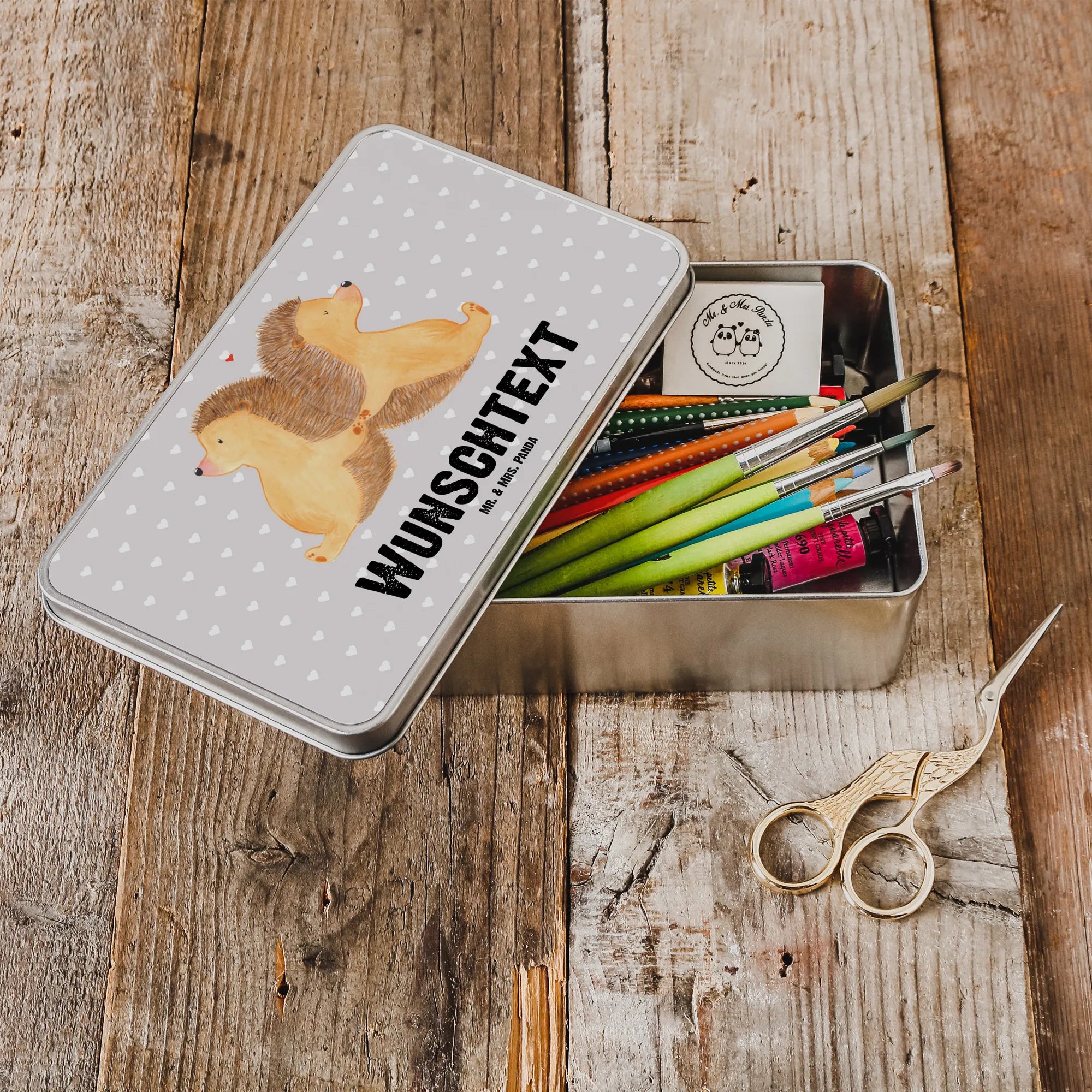 Discover the charm of our personalised metal tin, perfect for storing your favorite cookies or precious memories. Measuring 198 mm x 128 mm x 50 mm (8 inch x 5 inch x 2 inch), this sturdy tin is crafted from high-quality metal and weighs 180 g (6 oz). Adorned with beautiful Mr. & Mrs. Panda designs and sayings, it can be personalized with your chosen name or text to make it truly special. Its glossy finish adds an extra touch of elegance. Ideal as a sustainable gift box, it’s perfect for birthdays, weddings, or just to show you care. Please note, we recommend hand washing for longevity. Fill it with sweet treats, surprise notes, or use it as a decorative piece in your home. This durable tin is not only functional but also a whimsical addition to any space, promising to bring a smile to anyone who receives it.