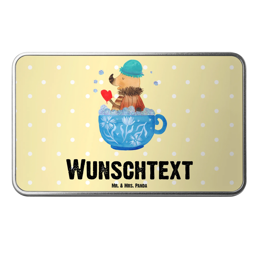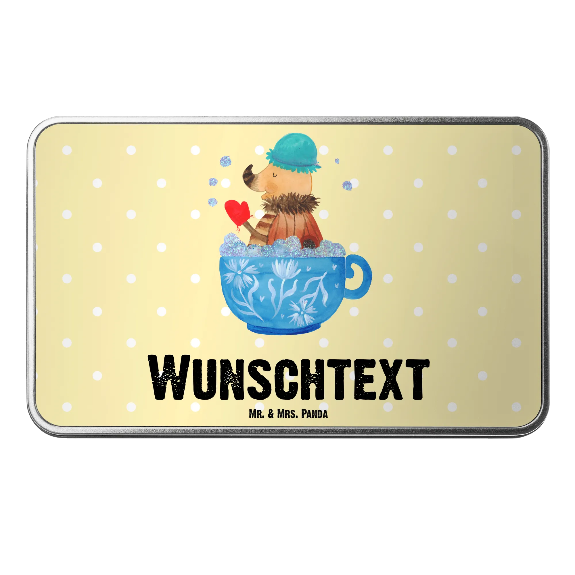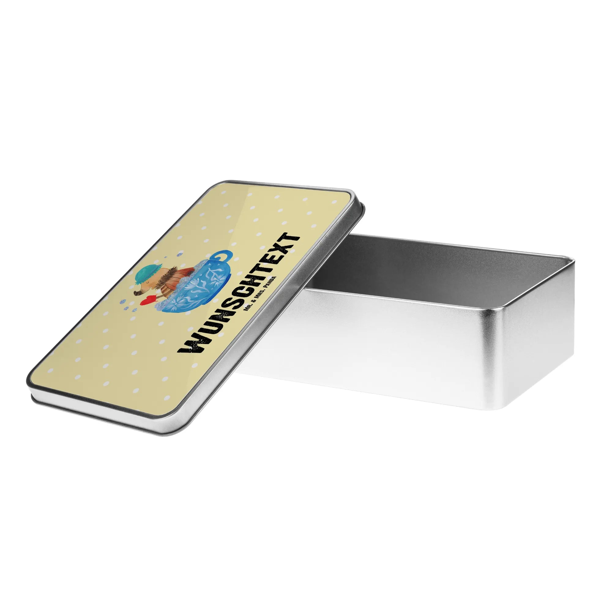 Discover the charm of our personalised metal tin, perfect for storing your favorite cookies or precious memories. Measuring 198 mm x 128 mm x 50 mm (8 inch x 5 inch x 2 inch), this sturdy tin is crafted from high-quality metal and weighs 180 g (6 oz). Adorned with beautiful Mr. & Mrs. Panda designs and sayings, it can be personalized with your chosen name or text to make it truly special. Its glossy finish adds an extra touch of elegance. Ideal as a sustainable gift box, it’s perfect for birthdays, weddings, or just to show you care. Please note, we recommend hand washing for longevity. Fill it with sweet treats, surprise notes, or use it as a decorative piece in your home. This durable tin is not only functional but also a whimsical addition to any space, promising to bring a smile to anyone who receives it.