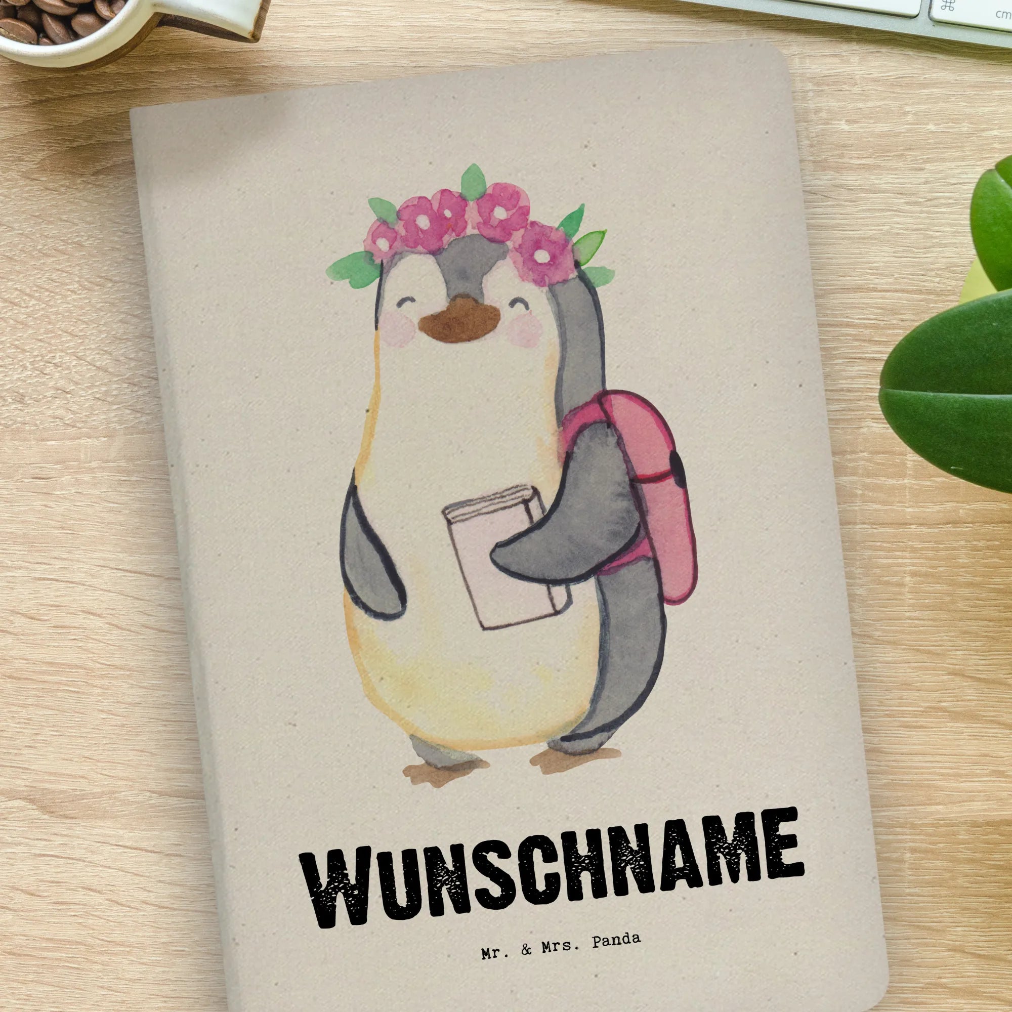 Step into a world of creativity with the personalized notebook from Mr. & Mrs. Panda! Measuring 297 mm x 210 mm x 15 mm, this stylish cotton notebook is perfect for documenting your dreams and ideas. The cover showcases adorable designs and uplifting phrases that inspire your every word. Personalize it with your choice of name or text for that special touch! Inside, you'll find 96 pages of natural, unbleached paper ready to catch your thoughts. The durable hardcover keeps your notes safe, while the included ribbon bookmark, elastic closure, and pen loop add a touch of convenience. This notebook makes an excellent gift for friends, family, or for treating yourself! Just a reminder, personalized items can't be returned or exchanged, so make it truly yours before you order!