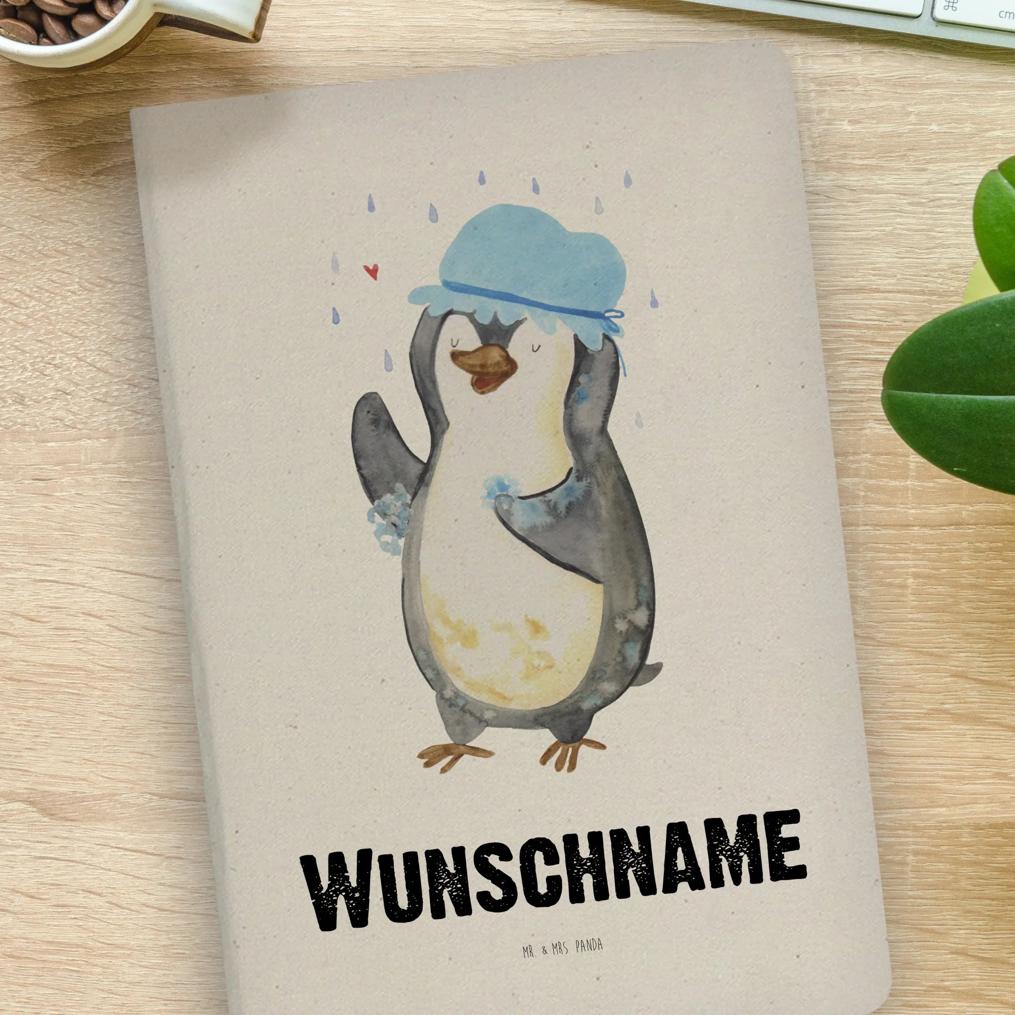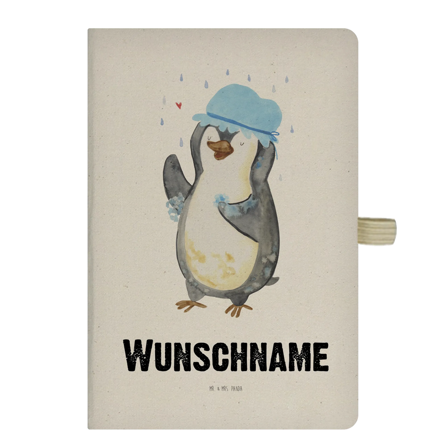 Personalised notebook Penguin have a shower