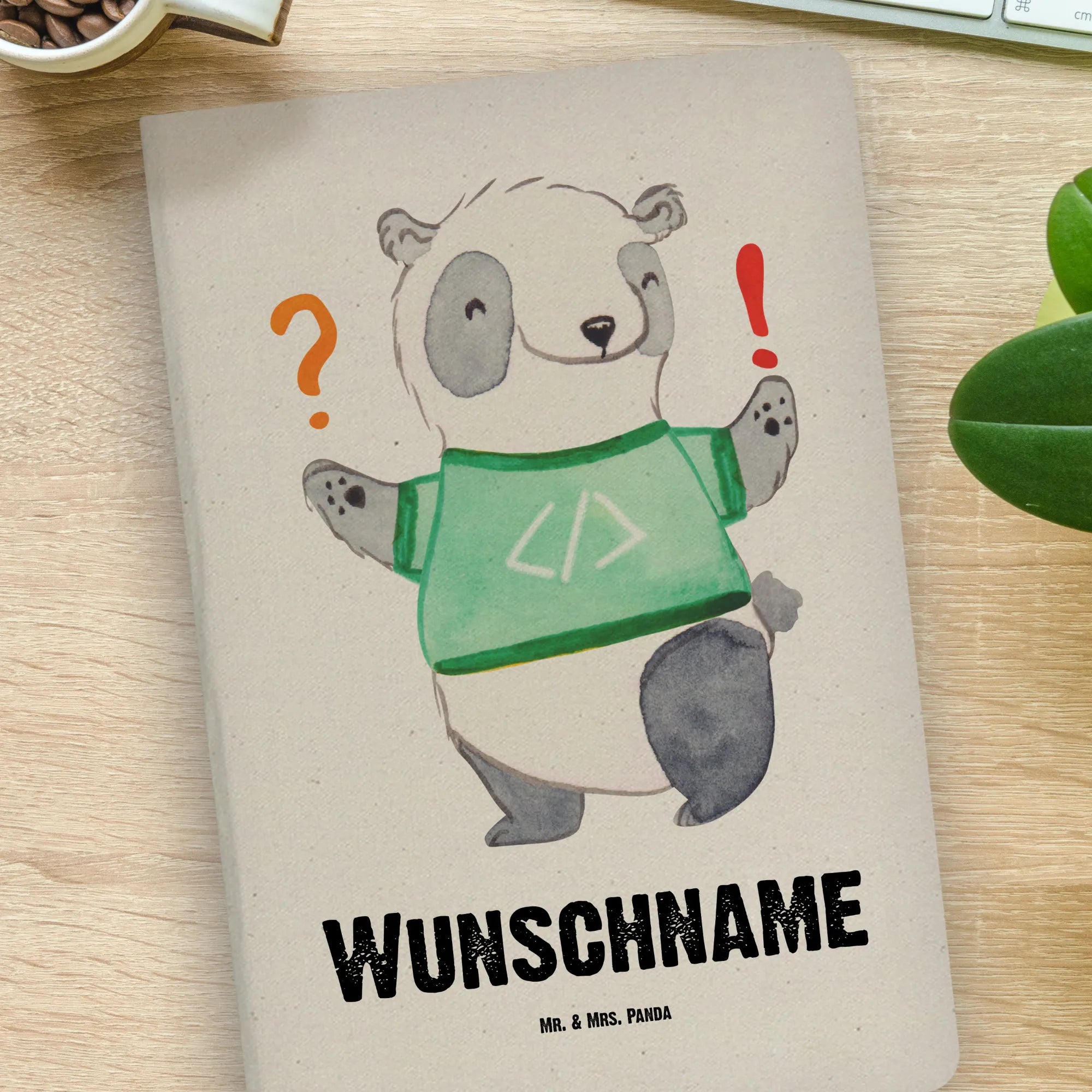 Elevate your writing experience with Mr. & Mrs. Panda's personalized notebook! This beautifully crafted notebook, 297 mm x 210 mm x 15 mm in size, combines functionality with charm. Adorned with sweet illustrations and quotes, it's perfect for capturing spontaneous ideas or thoughtful reflections. Make it uniquely yours by personalizing it with a name or a special message. Each of the 96 pages features unbleached, lined paper that feels fantastic to write upon. The hardcover is wrapped in high-quality cotton for durability, and it includes a convenient ribbon bookmark, elastic band, and pen loop for ease of use. Perfect for gifting to friends or rewarding yourself, this notebook is a must-have for anyone who cherishes creativity. Just a heads up—personalized notebooks cannot be returned, so make sure your customization is just right!