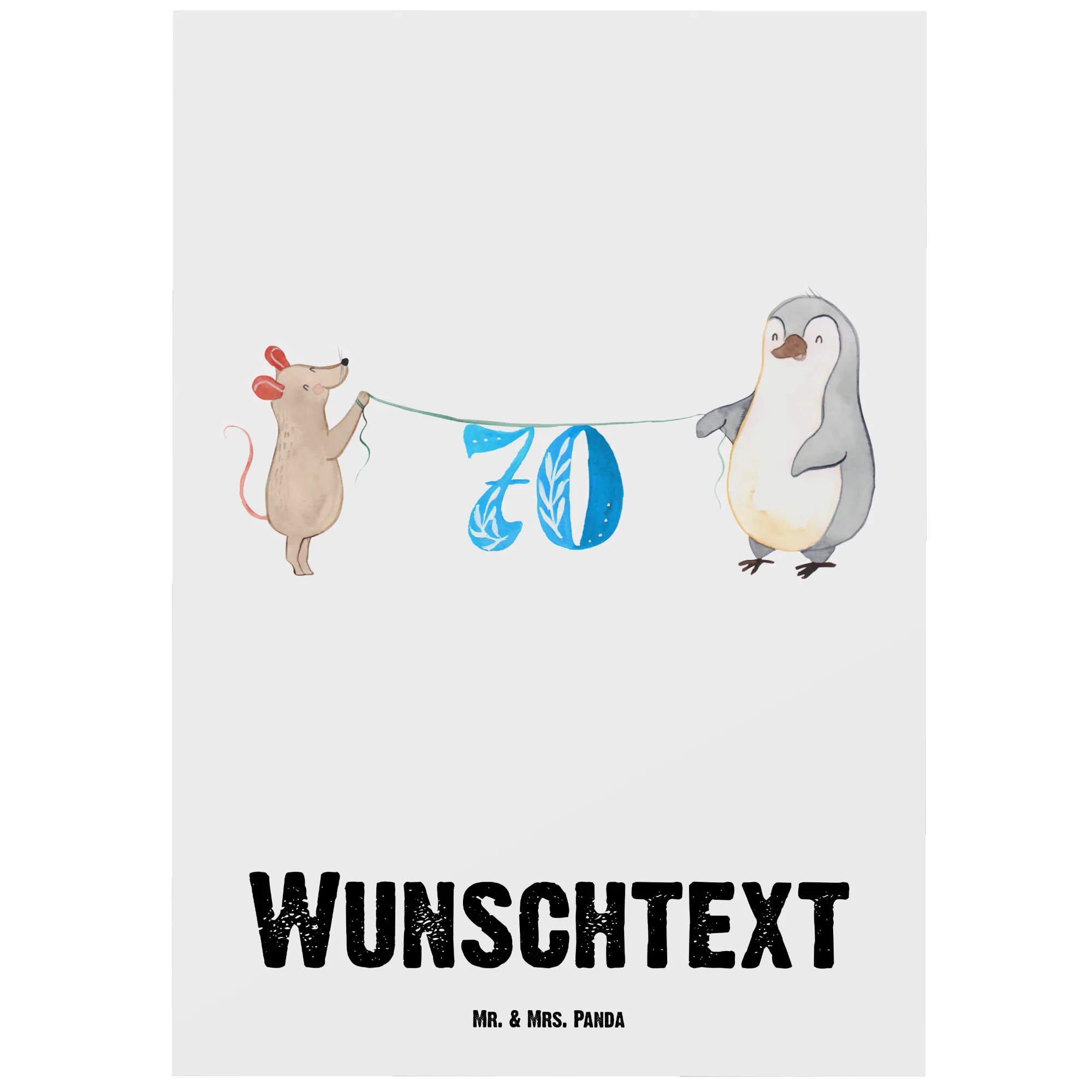 Personalised postcard 70th Birthday mouse penguin – Mr. & Mrs. Panda