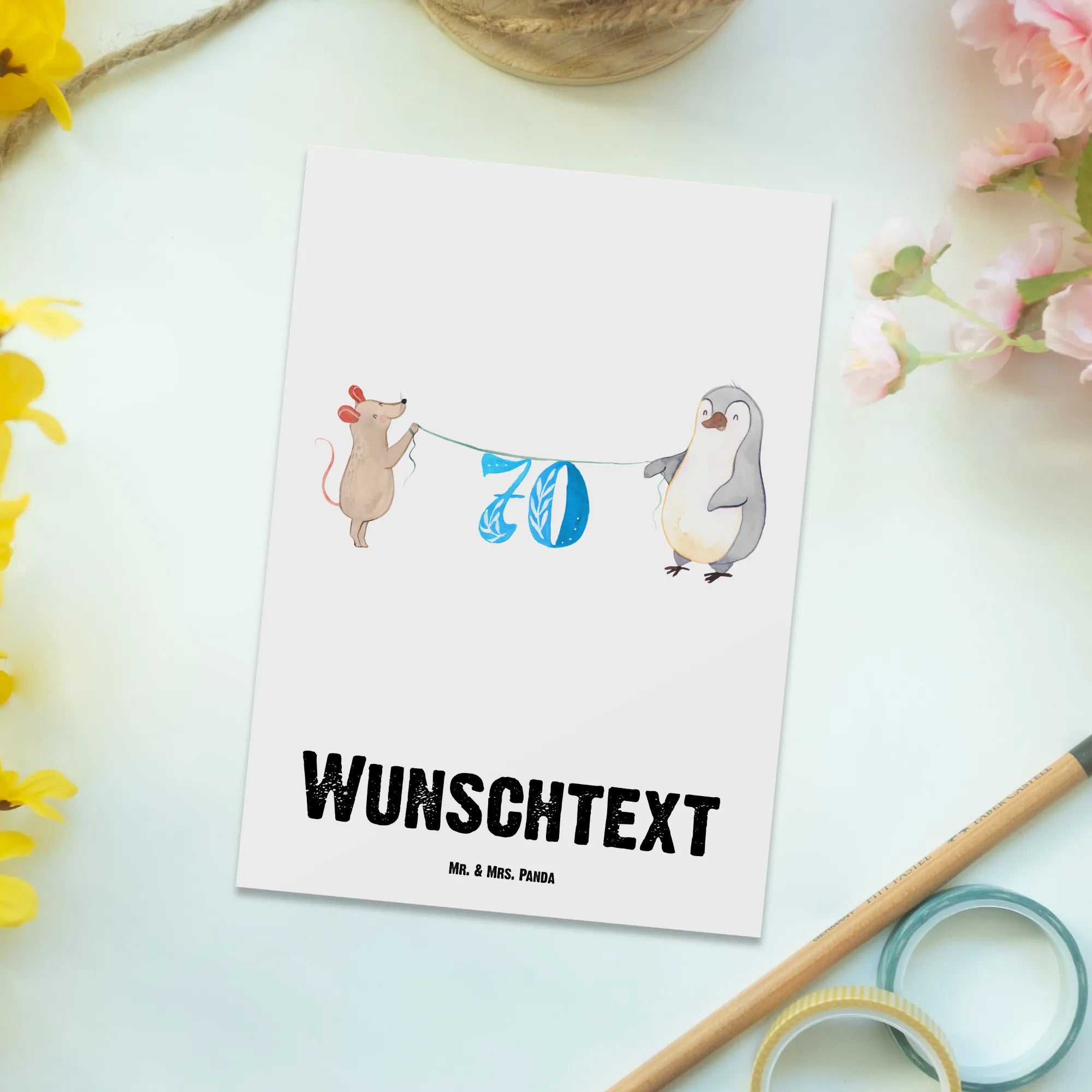 Personalised postcard 70th Birthday mouse penguin Birthday, celebration, party, birthday party, friends, family, birthday wish, birthday present, birthday cards, 18th birthday, 30th birthday, 40th, 50th, 60th, 70th, 80th, 90th, 90th., gift ideas, gifts for girlfriend, boyfriend, mom, dad, brother, sister, congratulations, funny, sayings, 1 year, money gifts, guest gifts, gifts online, gift basket, special gifts, unusual gifts, extraordinary gifts, gift package, original gifts, gift items, special birthday gifts, cake, birthday, present