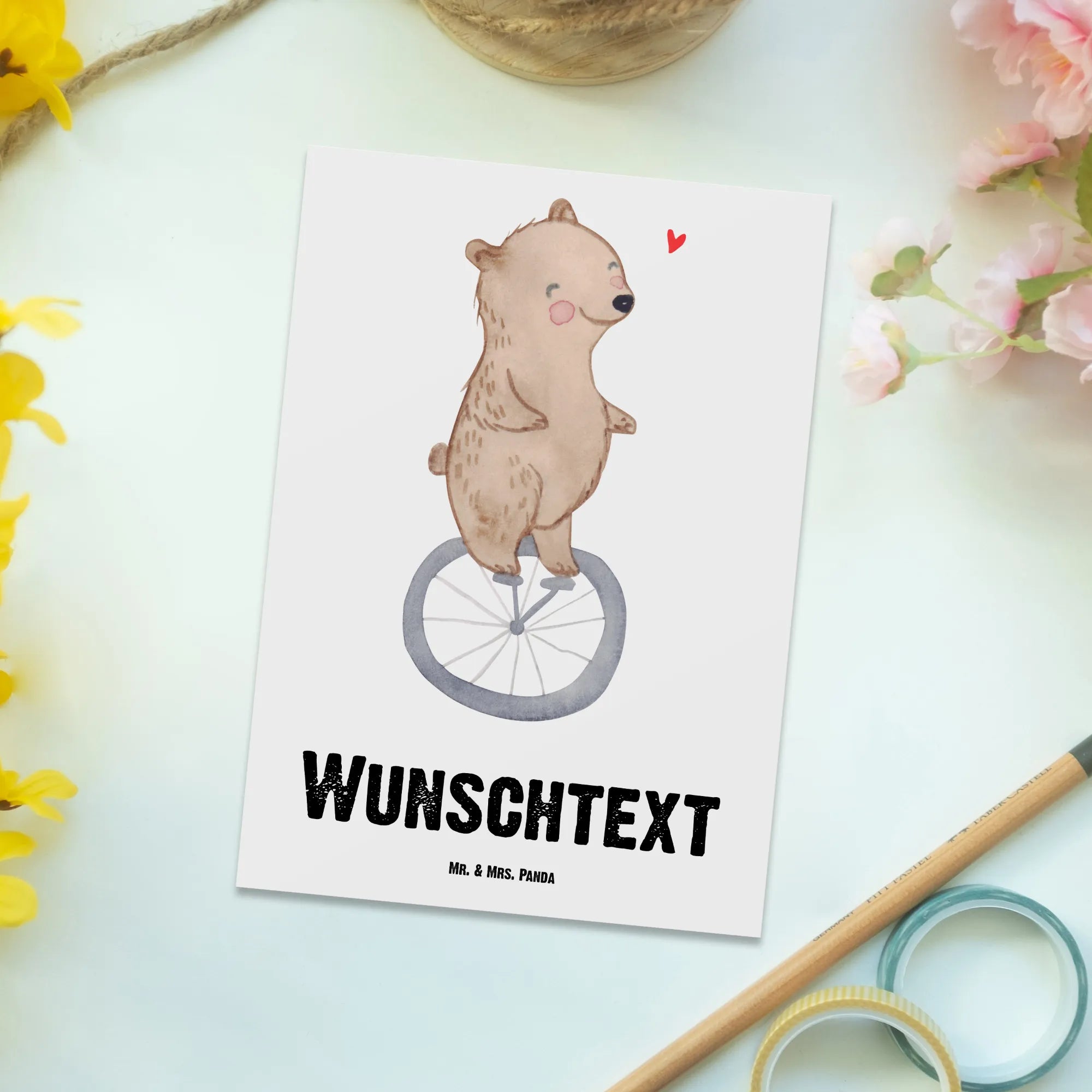 Personalised postcard bear ride a unicycle