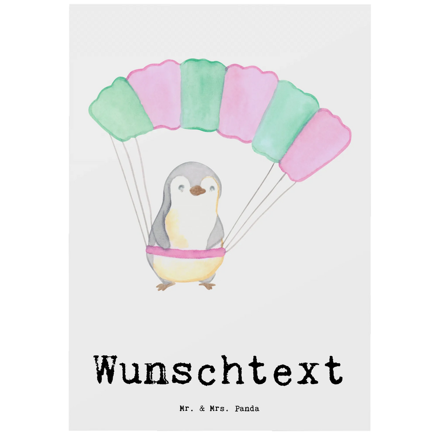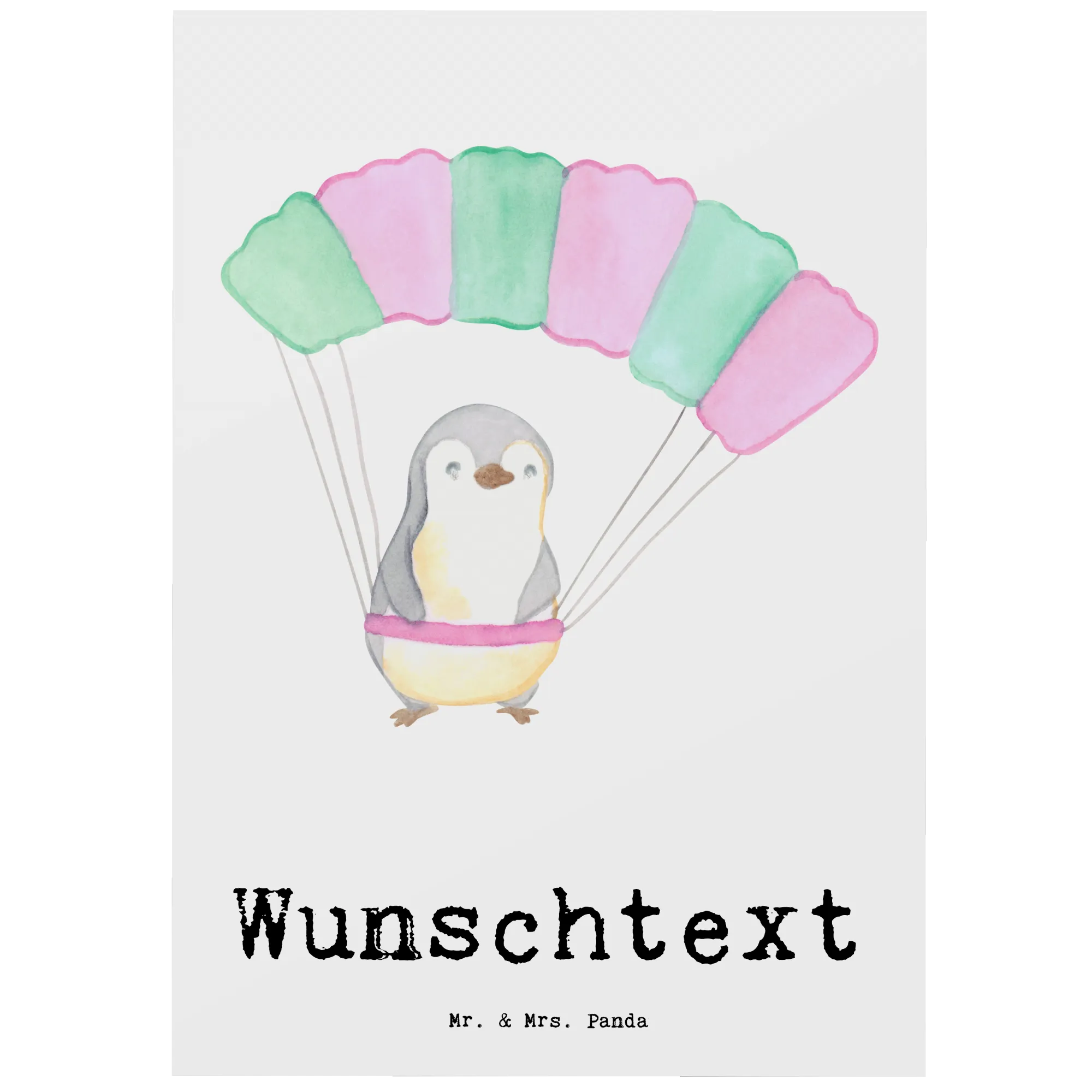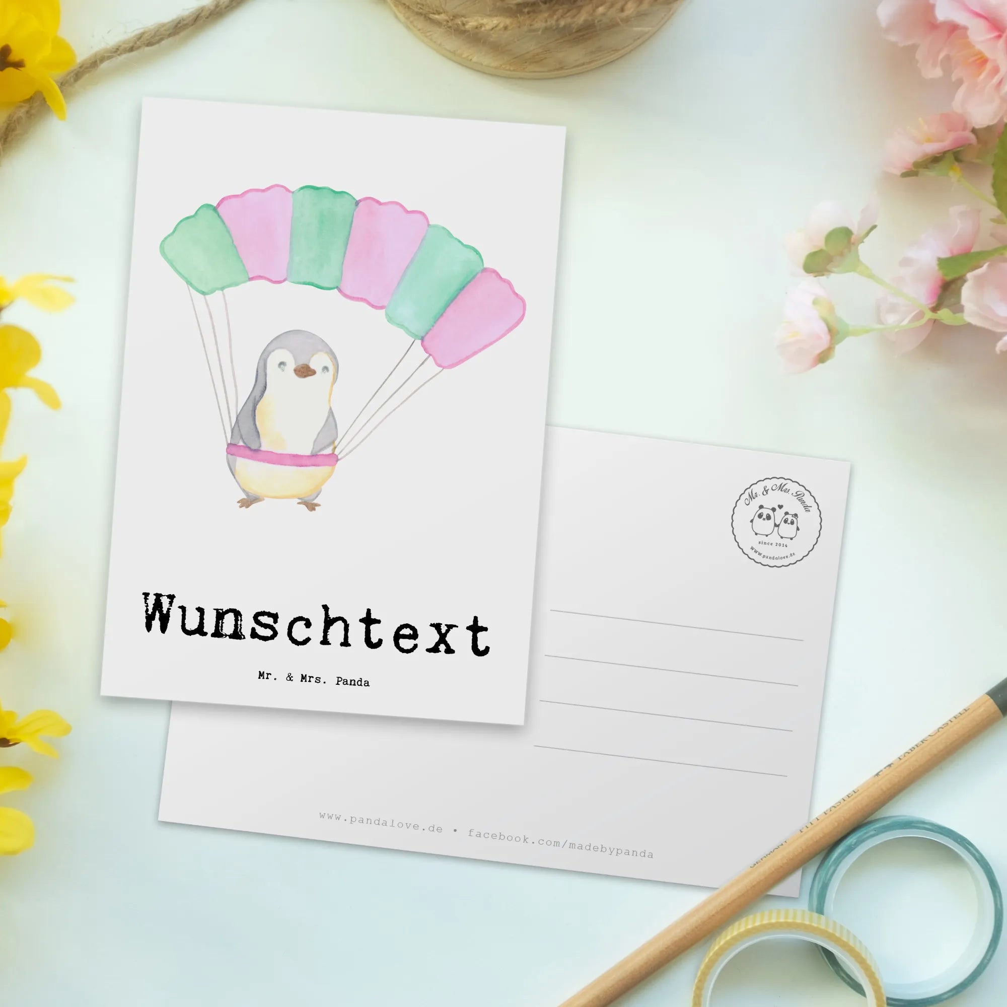 Personalised postcard penguin parachute jump Gift, sport, hobby, giving, thank you, award, profit, athlete, Skydiving, parachute jump, skydive