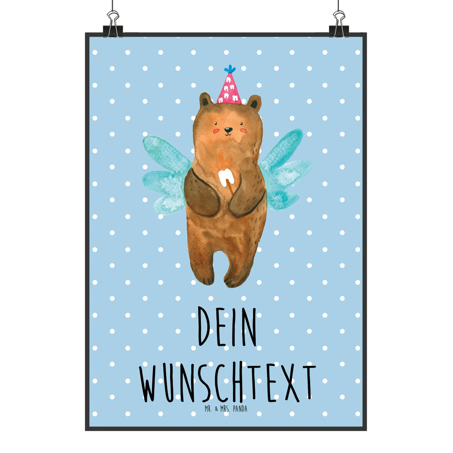 Personalised poster bear tooth fairy - DIN A0 - Blue Pastel