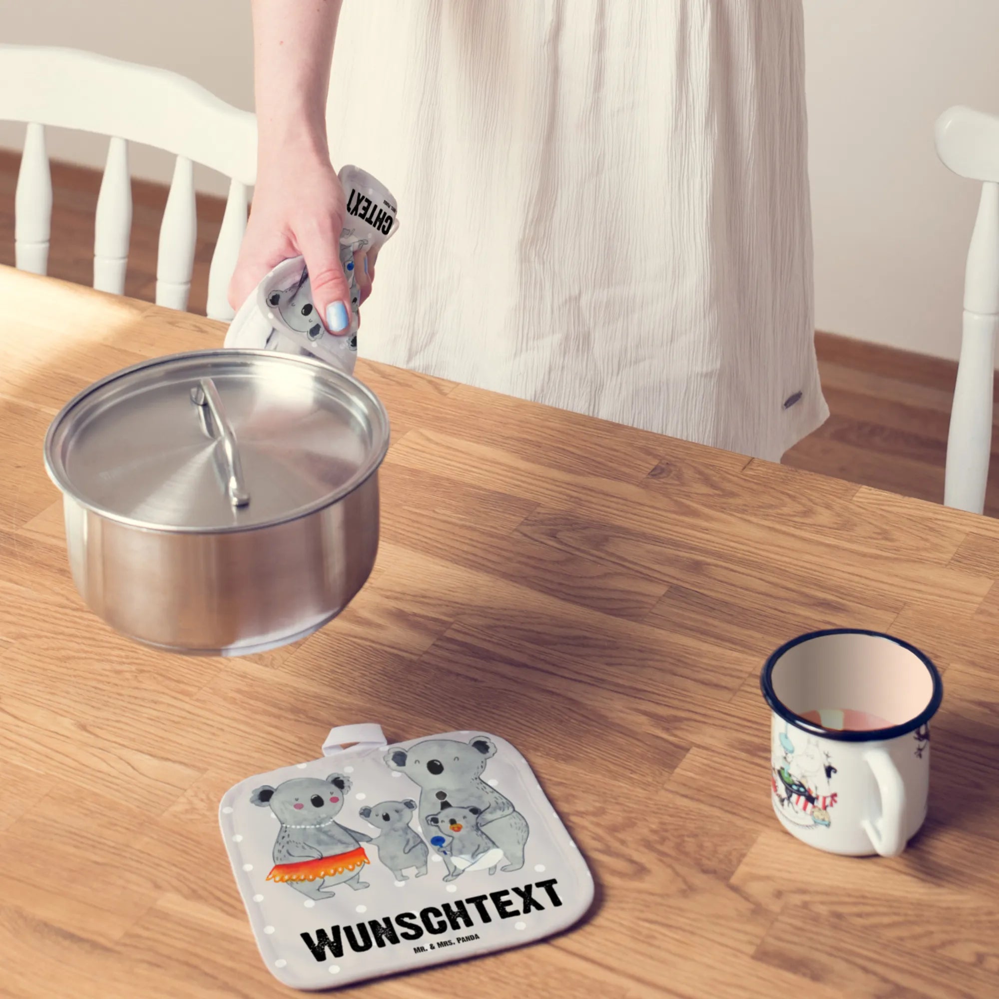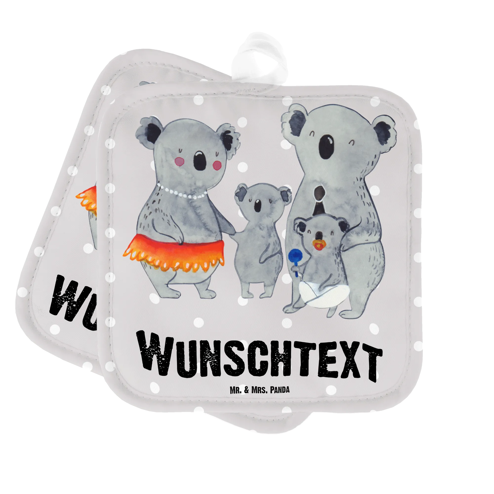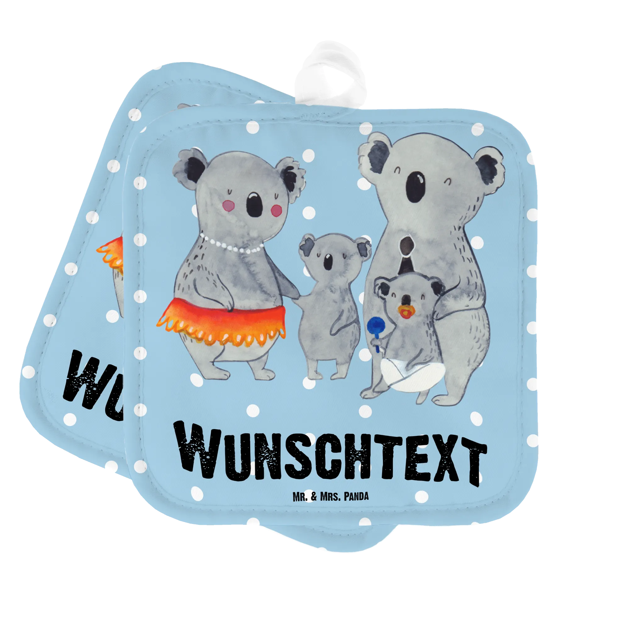 Personalised pot holder Koala Family - Blue Pastel