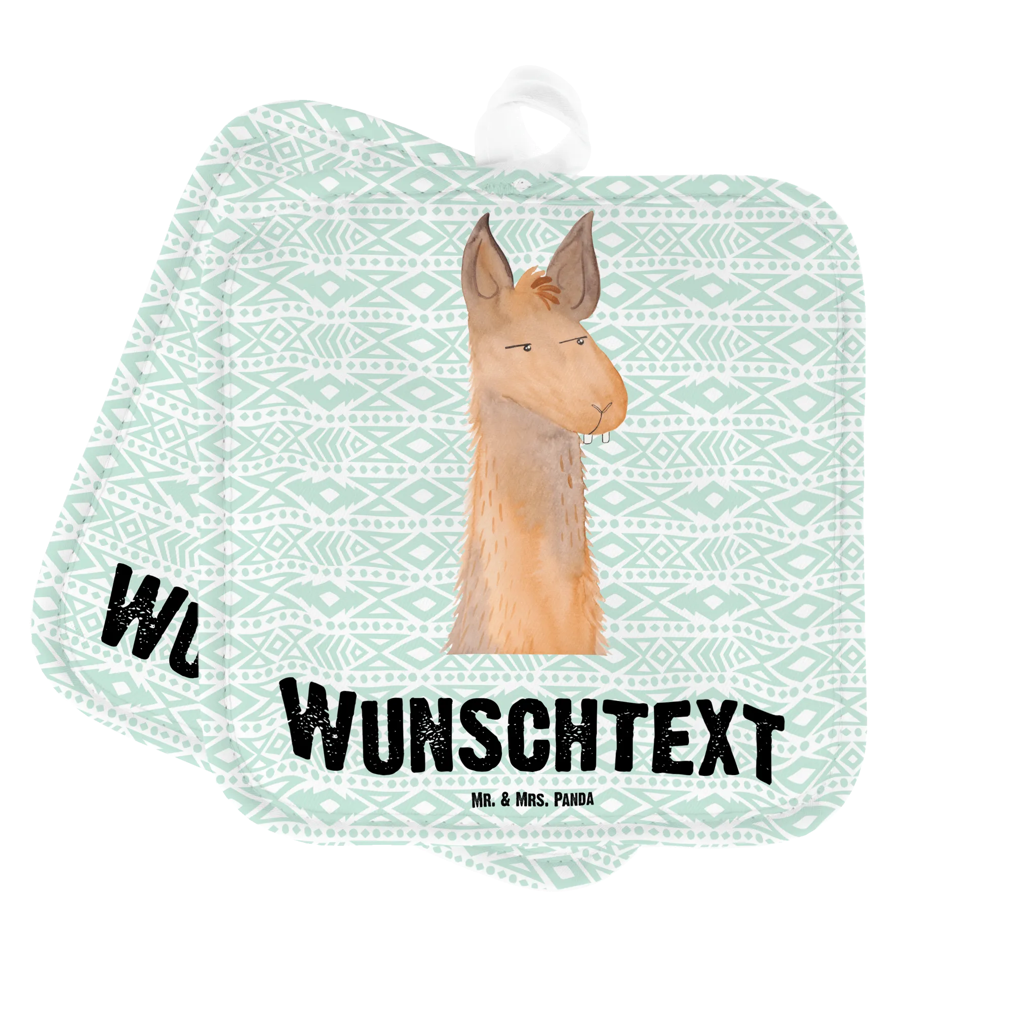 Personalised pot holder llama head Annoyed