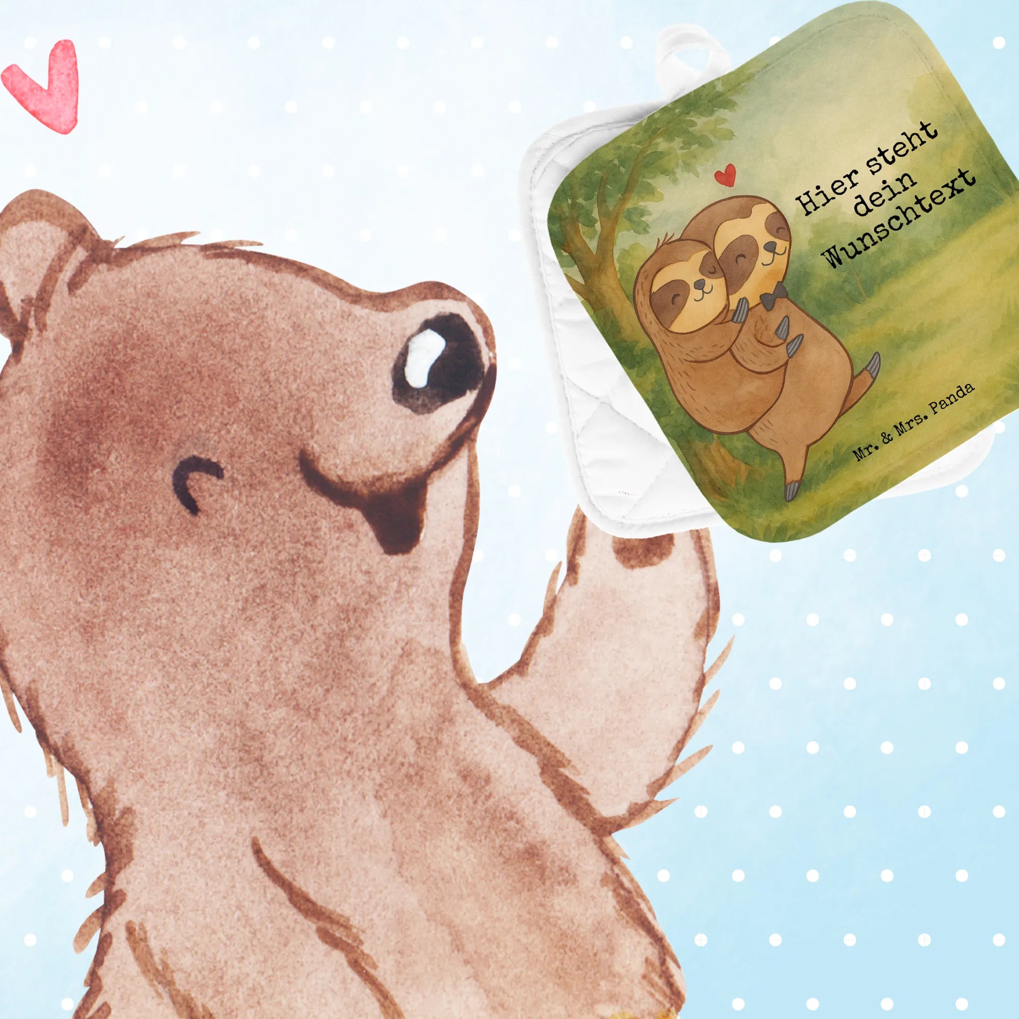 Liebe, Wärme und ein persönlicher Touch zum Vatertag: Unsere personalisierten Topflappen – Motiv Faultier Papa von Mr. & Mrs. Panda sind das ideale Geschenk für alle Papas, die gern in der Küche zaubern oder einfach eine liebevolle Erinnerung an die Familie mögen. Das Set zeigt zwei umarmende Faultiere, eines mit schicker Fliege und ein rotes Herz darüber – ein echtes Herzstück für Papa.