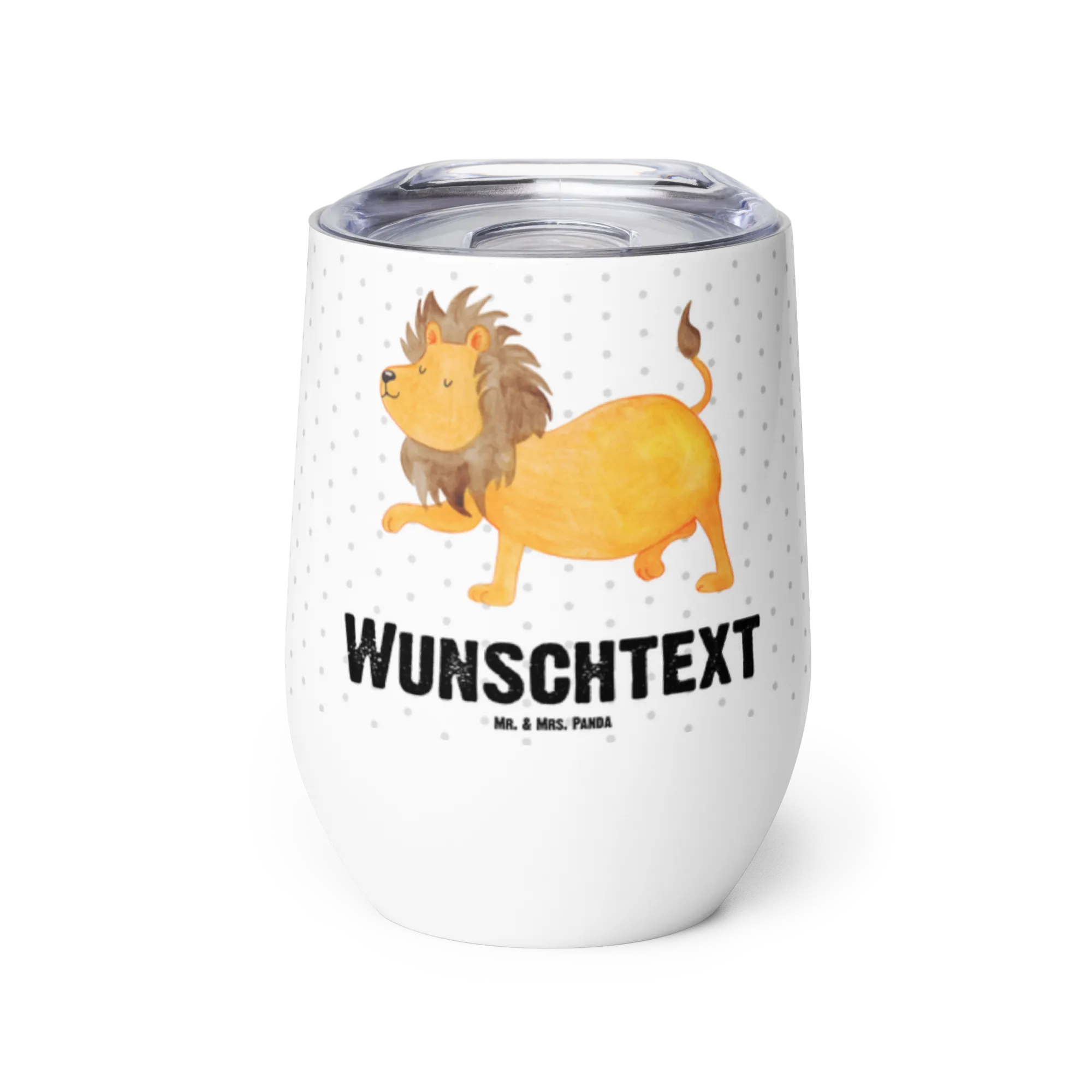 Der personalisierte Weinbecher mit dem Sternzeichen Löwe von Mr. & Mrs. Panda ist das perfekte Geschenk für stolze Löwen, die entweder im Juli oder August geboren sind. Mit dem liebevoll handgezeichneten Motiv eines majestätischen Löwen und dem Slogan 'Stark und stolz wie ein Löwe' wird dieser Becher jeden erfreuen, der den kräftigen Charakter und die einzigartigen Eigenschaften des Löwen zu schätzen weiß.