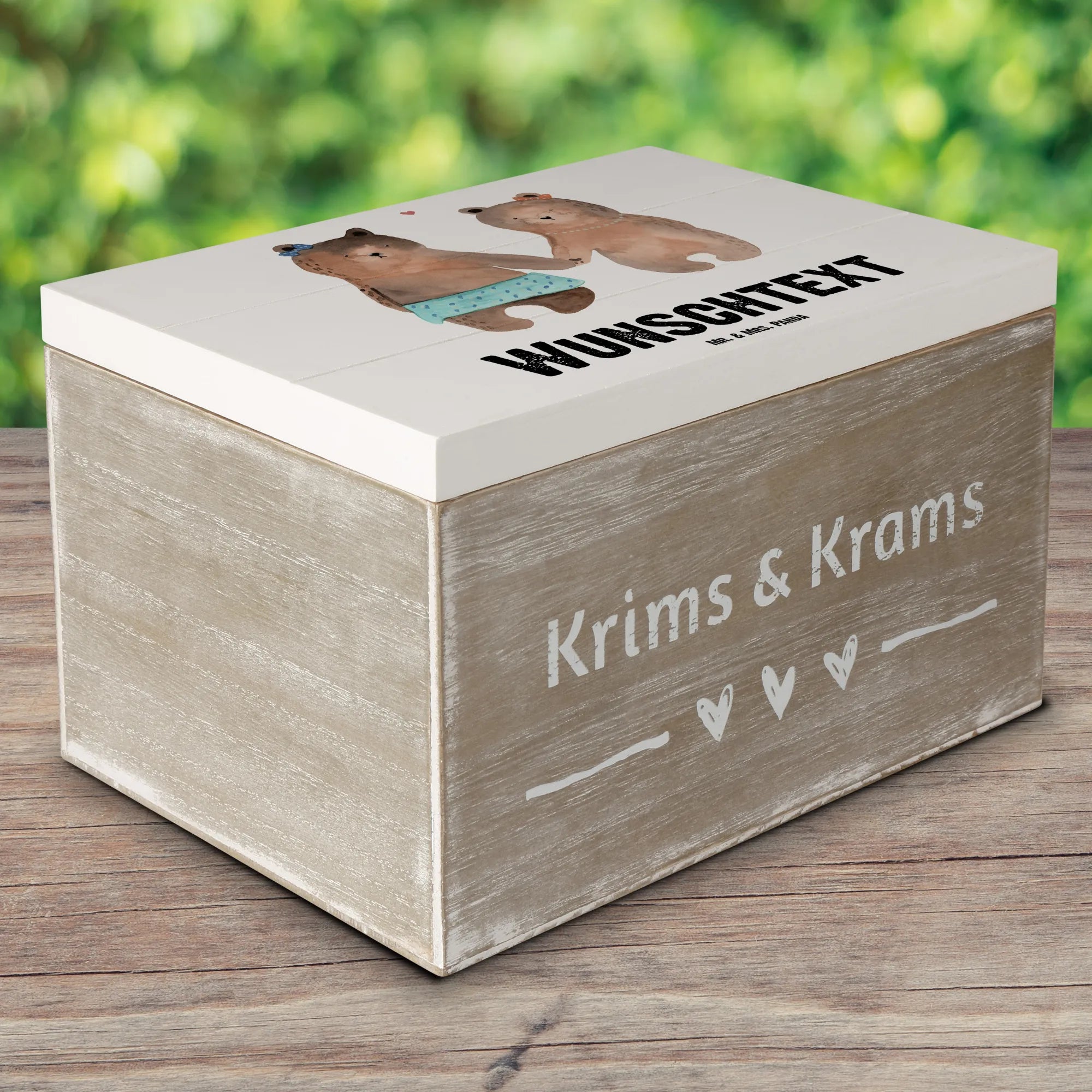 Cherish your memories with our delightful personalised wooden chest by Mr. & Mrs. Panda! Measuring 220 mm x 150 mm x 120 mm, this robust chest is made from high-quality wood fiber, making it perfect for storing your special items. It's adorned with charming motifs and meaningful quotes that resonate with everyone. What's more, you can personalize it with your choice of text or name, making it an even more special keepsake. Ideal for occasions like weddings, anniversaries, or even as a precious childhood reminder, this chest combines functionality and elegance. It features sturdy slotted hinges for easy access and a comfortable weight of 540 g, allowing you to move it around effortlessly. Caring for it is simple—just wipe with a slightly damp cloth. Not just a storage solution but a stunning decoration, this chest is an eco-friendly gift option that leaves a lasting impression.