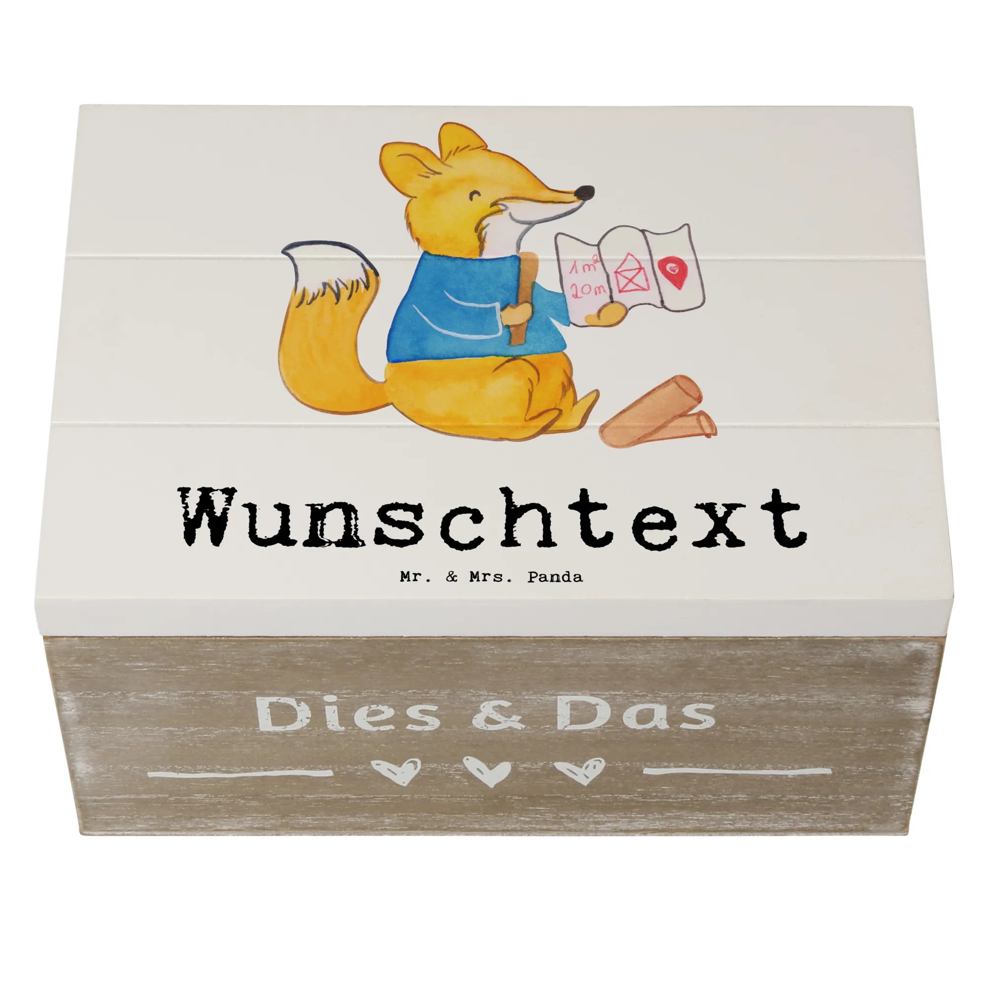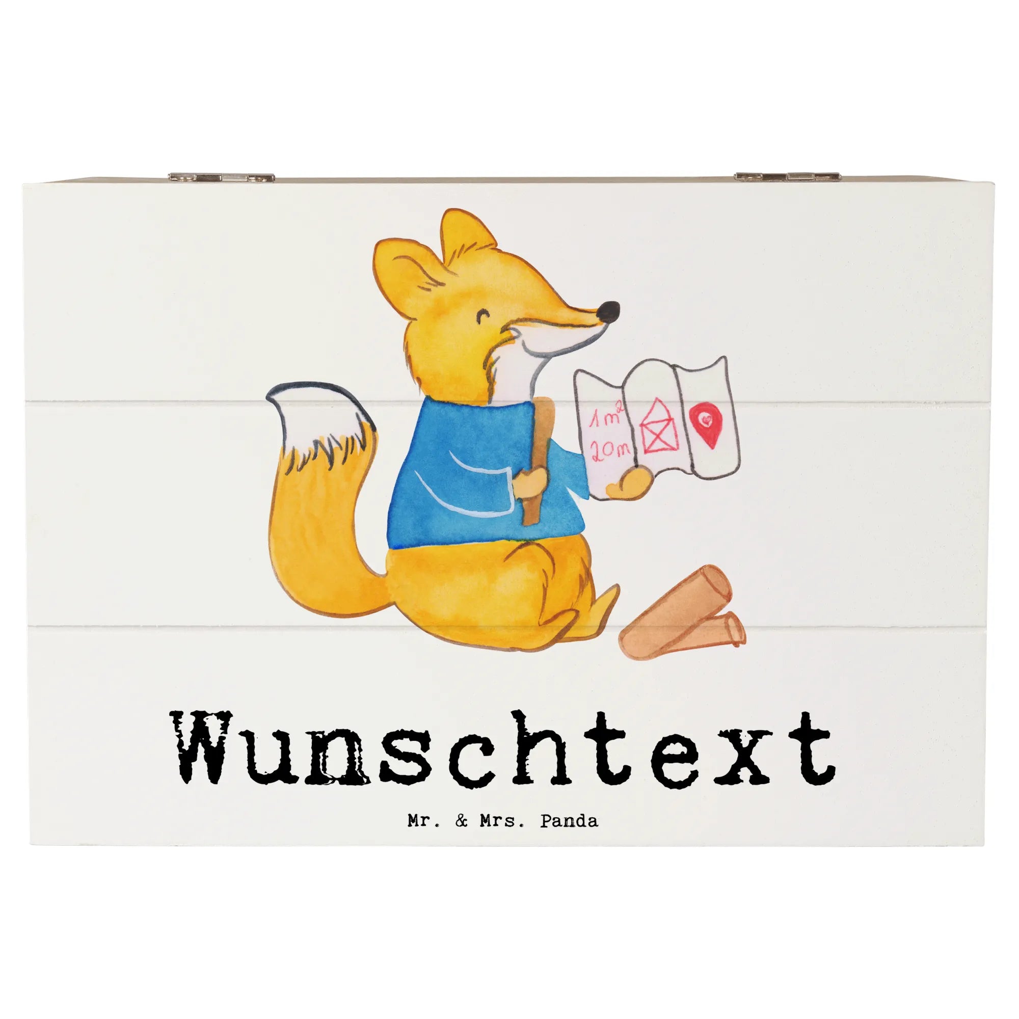 Personalised wooden chest Construction draftsman heart - 22 x 15 cm - White