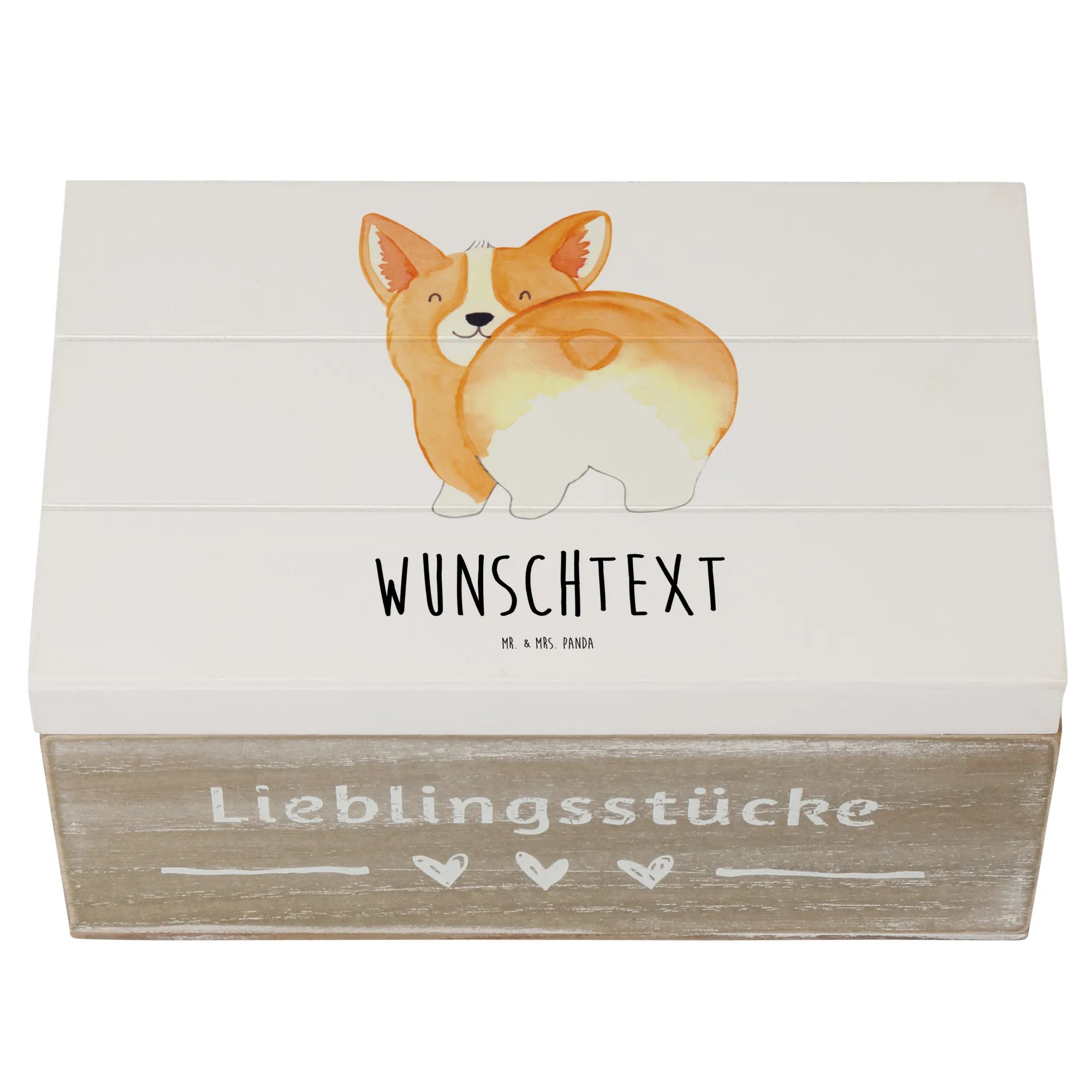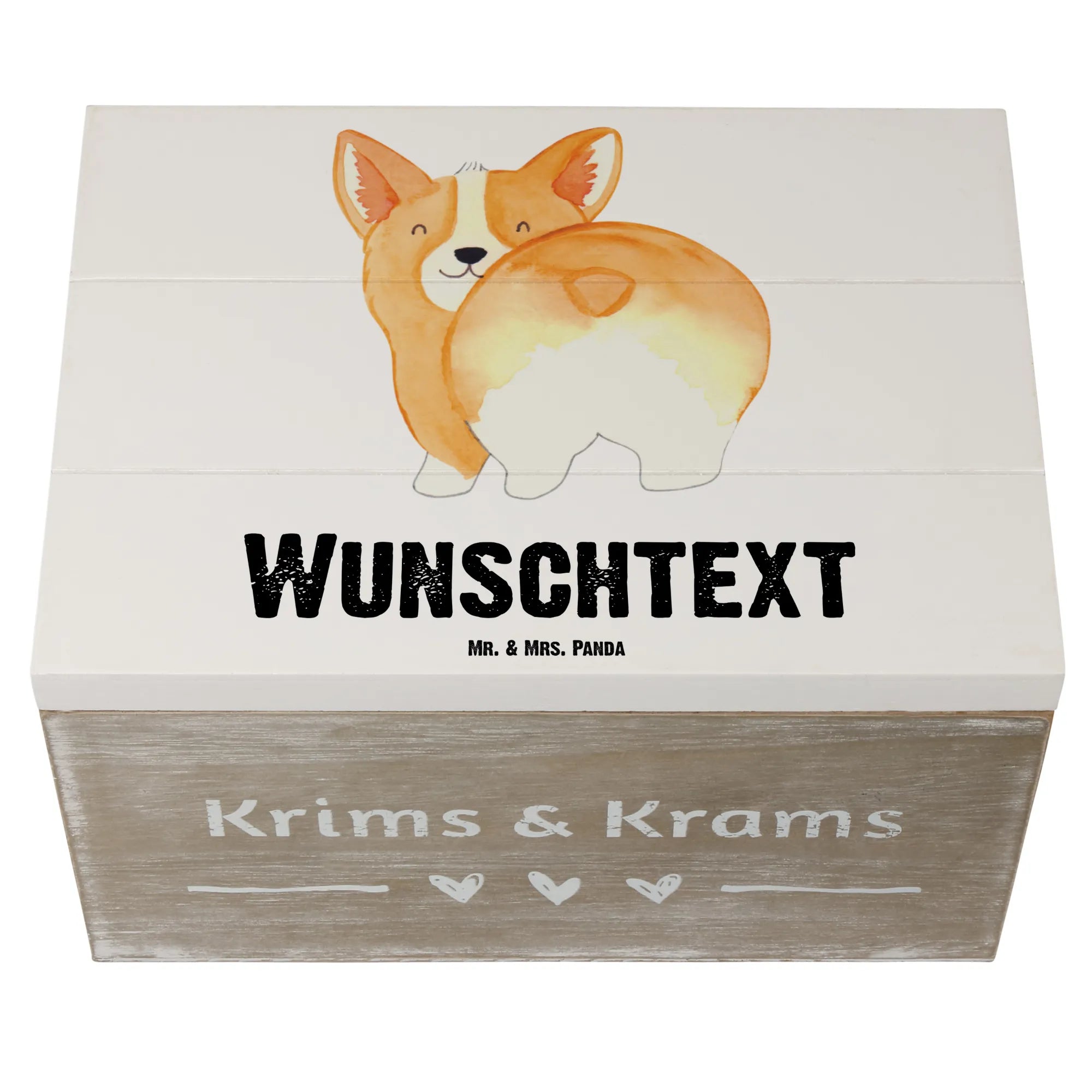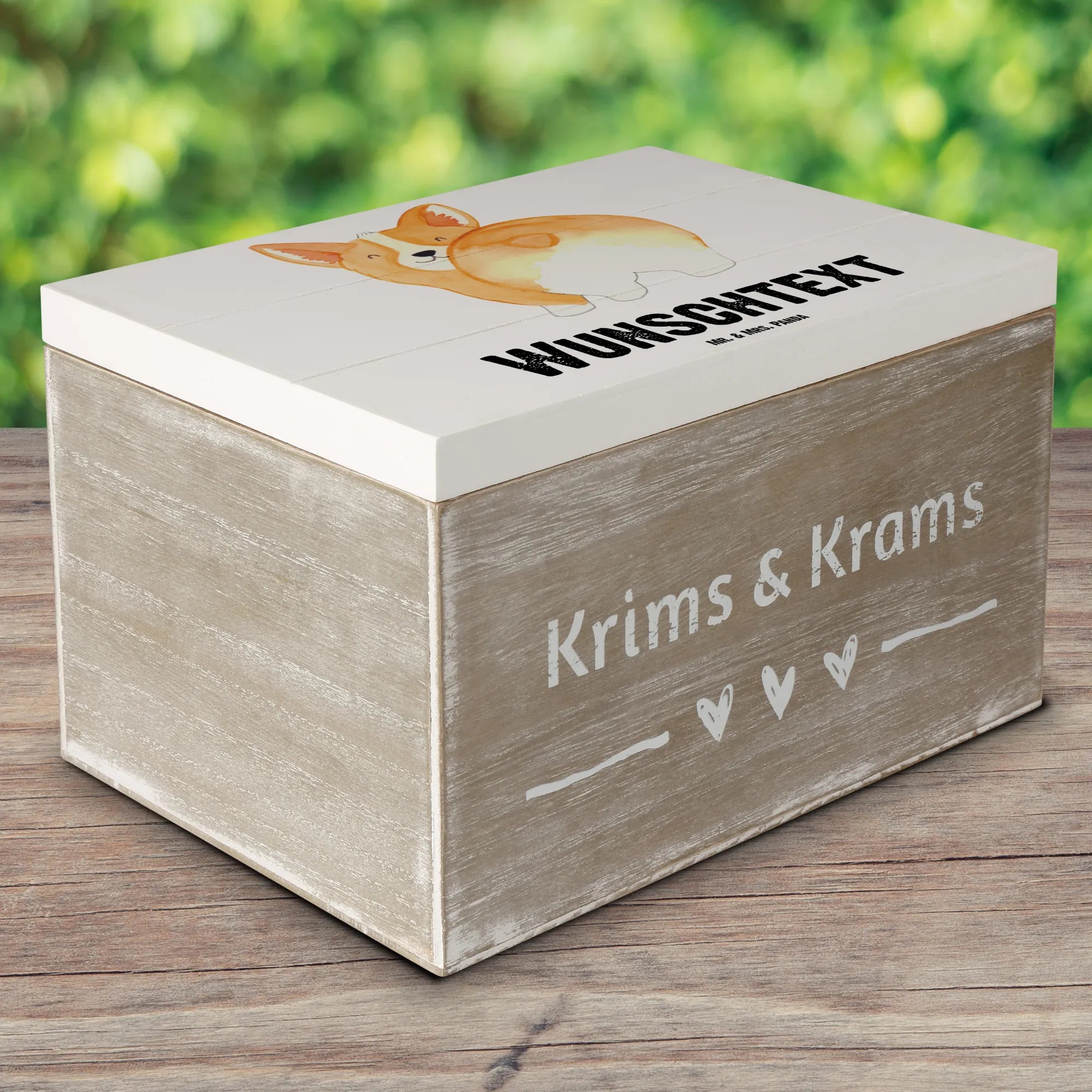 Personalised wooden chest corgi buttocks - 22 x 15 cm - White