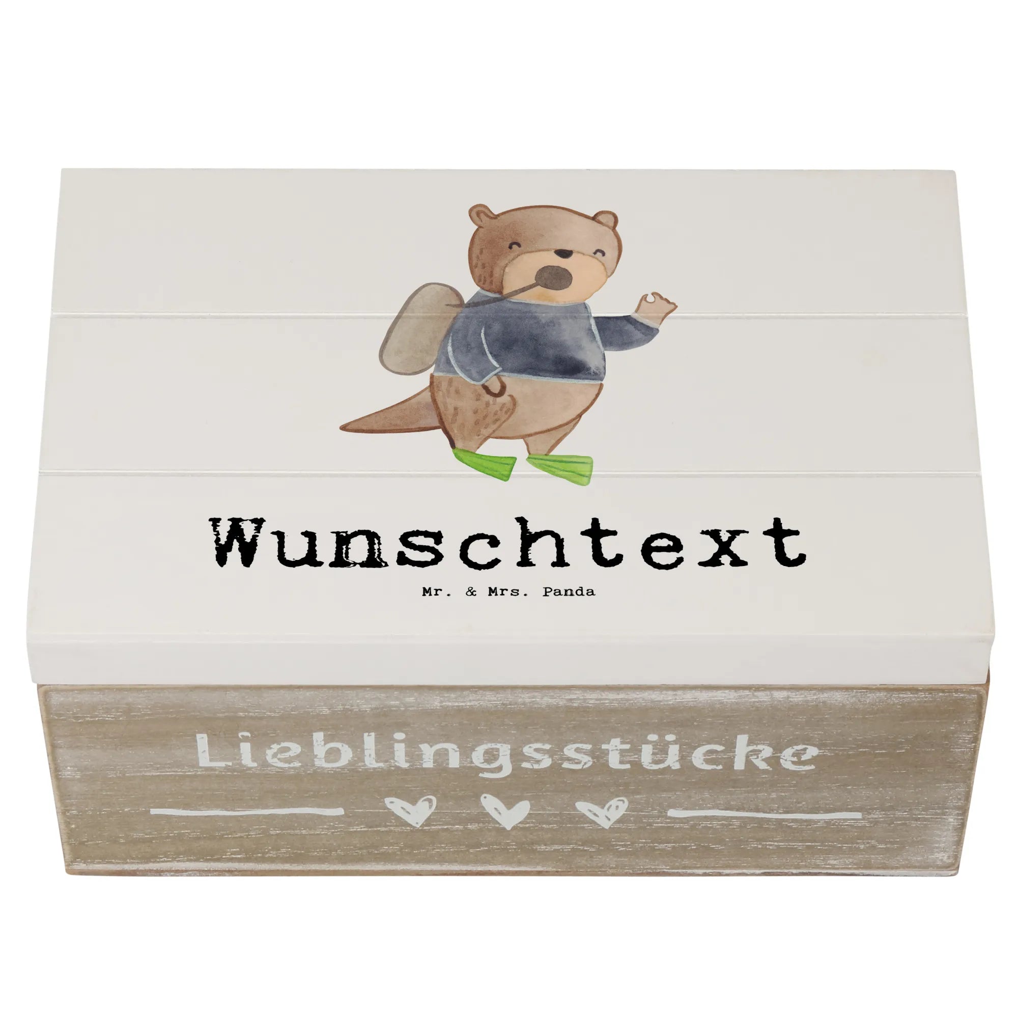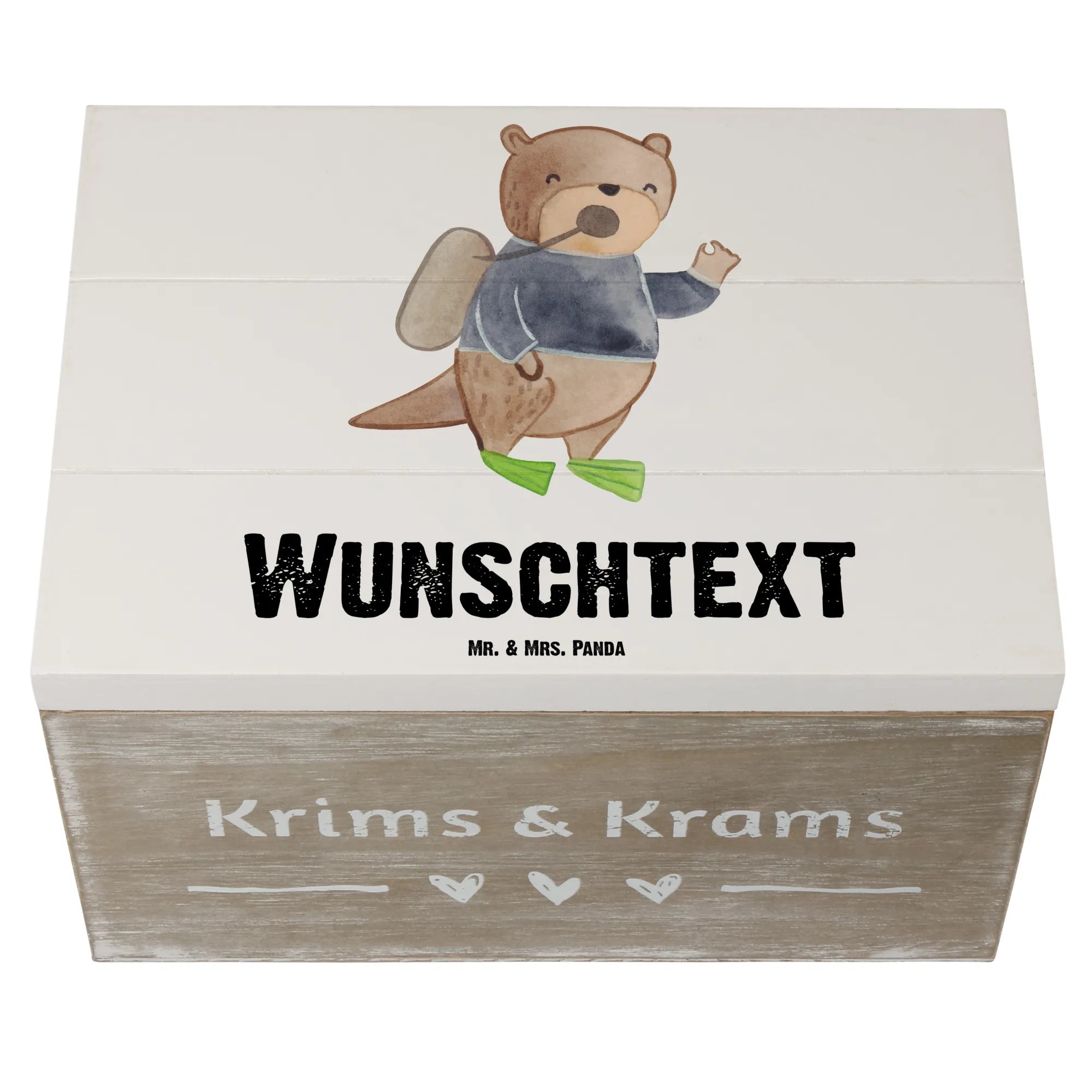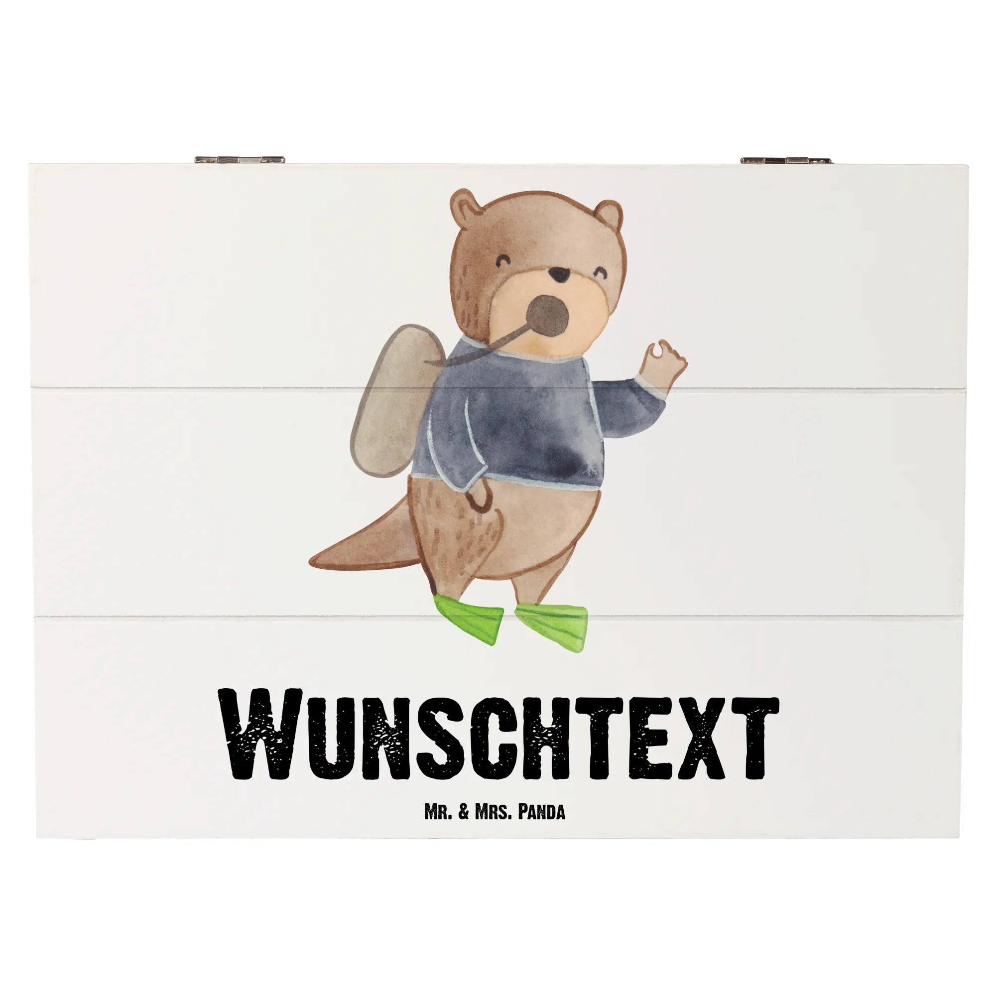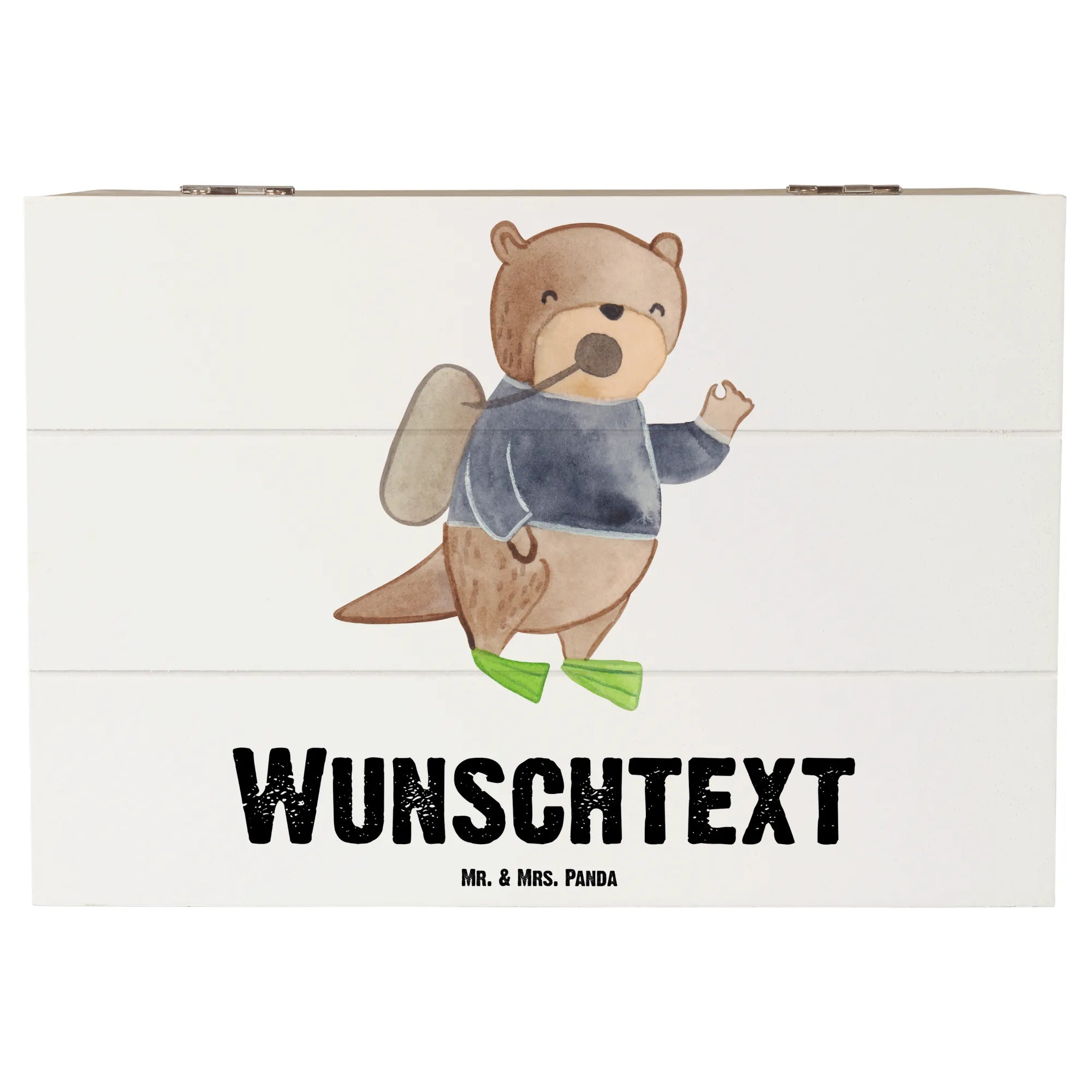 Personalised wooden chest Diver Heart - 22 x 15 cm - White