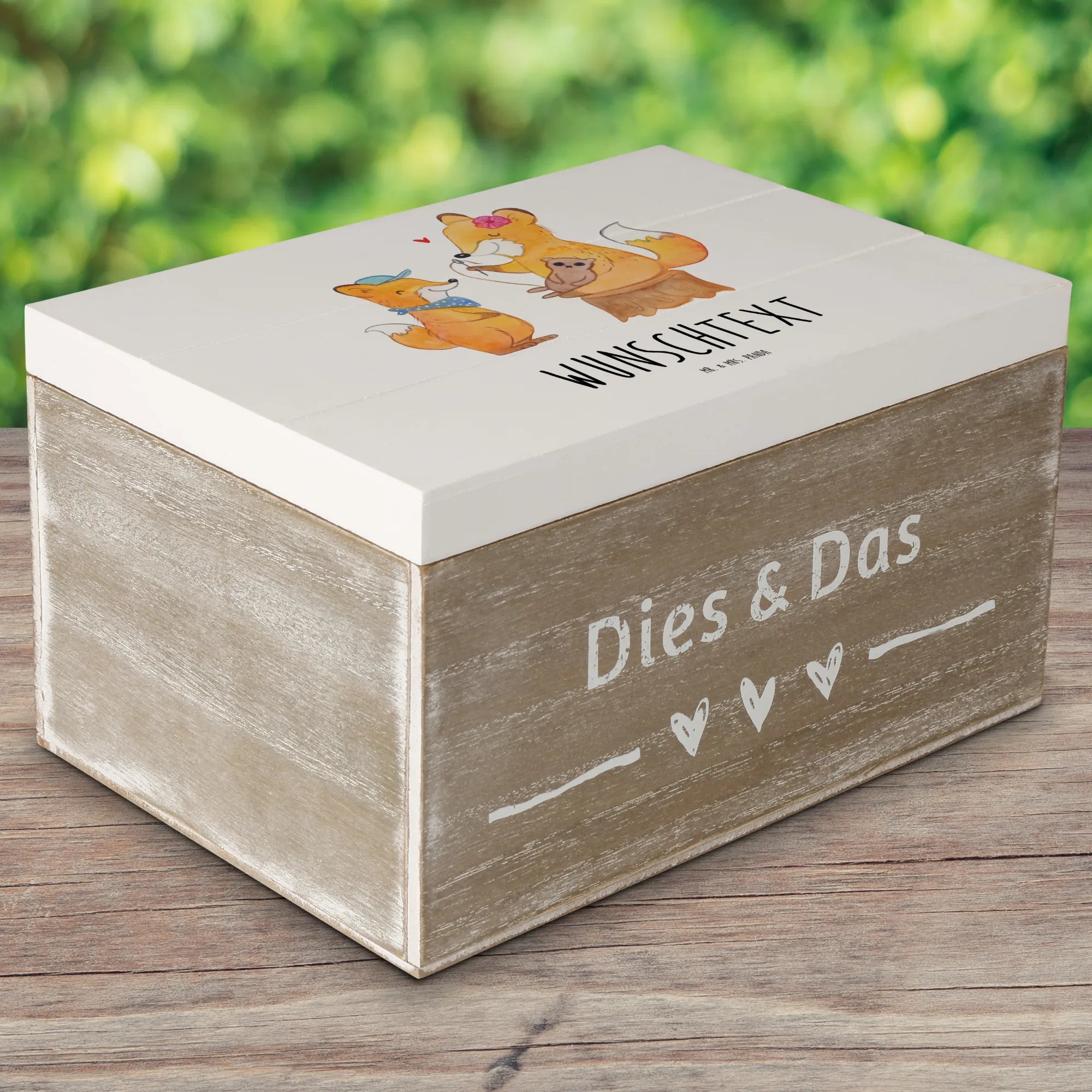 Personalised wooden chest Fox Mom - 22 x 15 cm