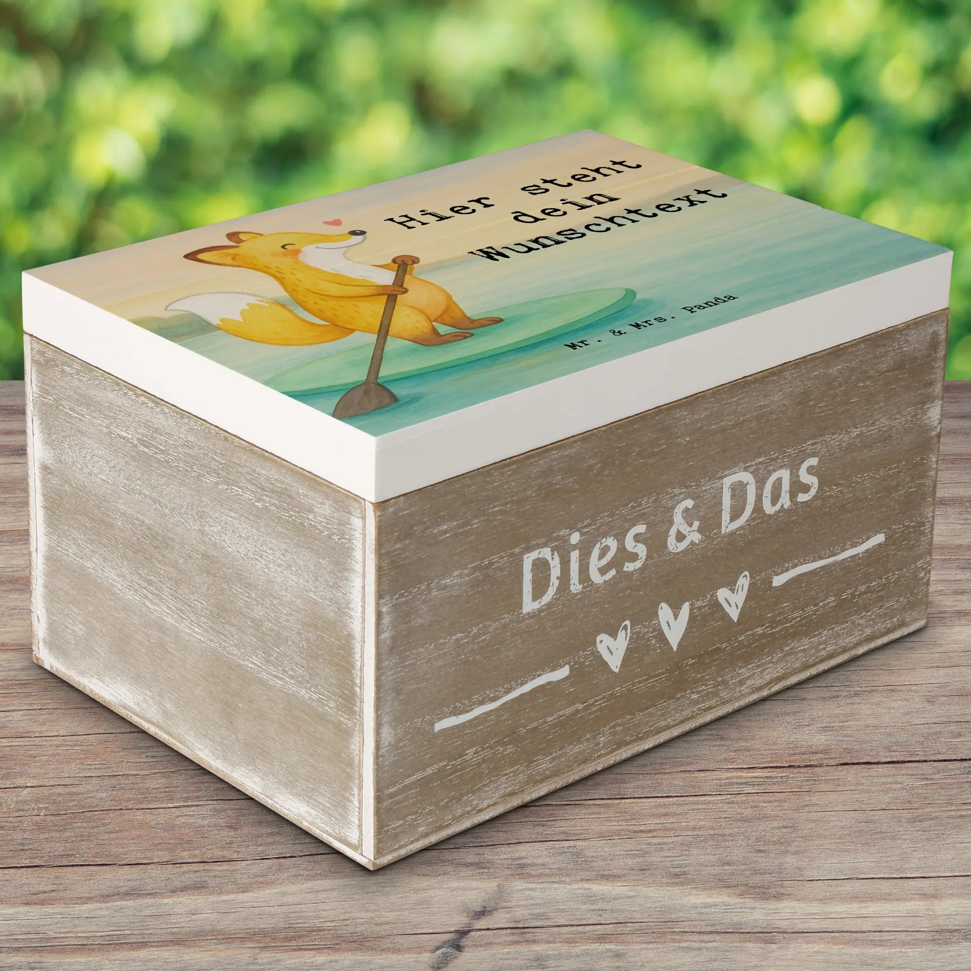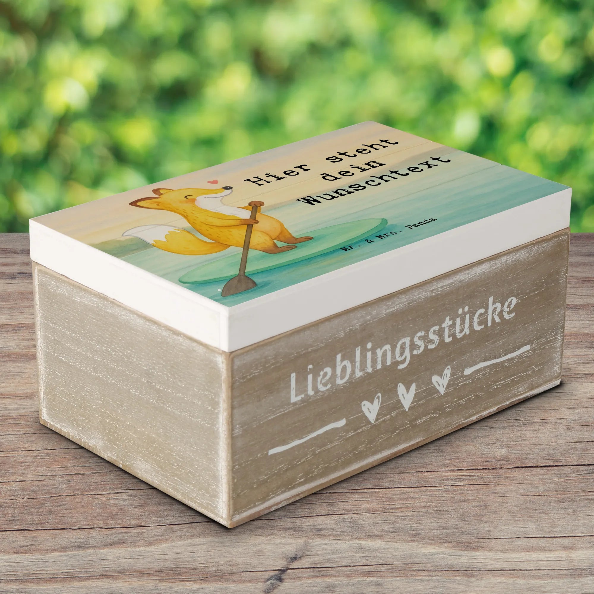 Personalised wooden chest Fox Stand up paddling Design - 22 x 15 cm
