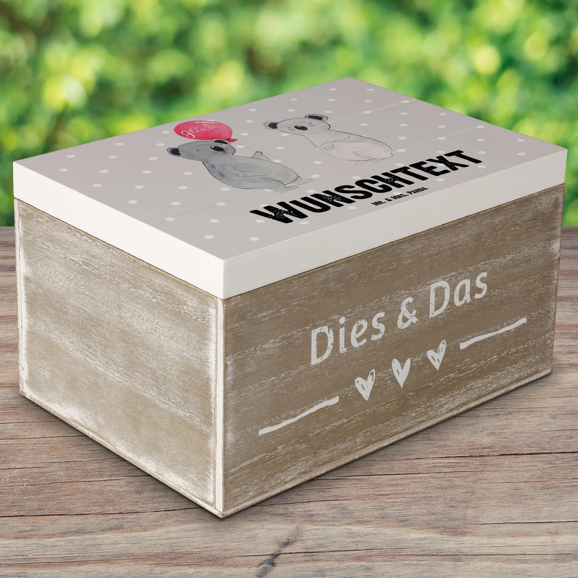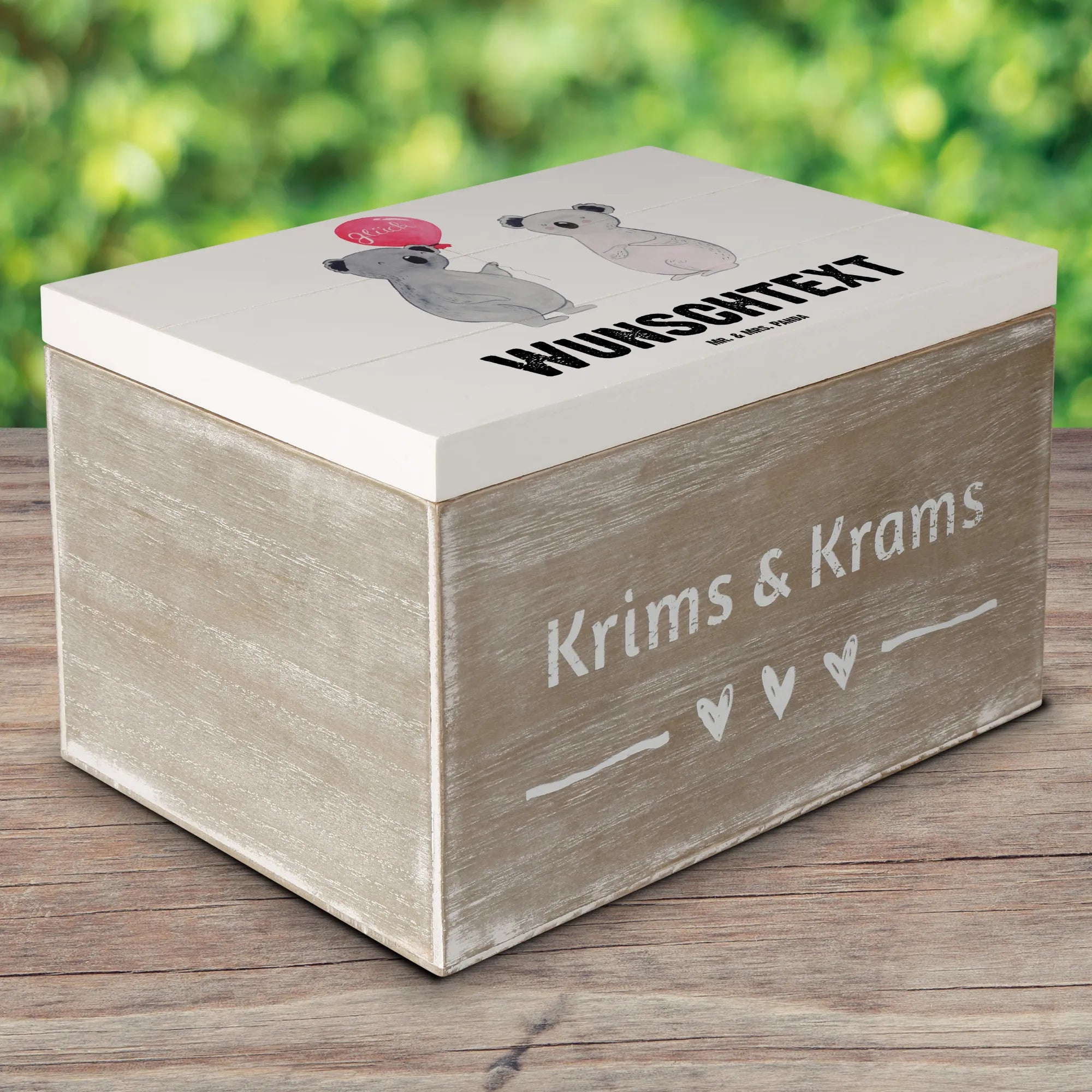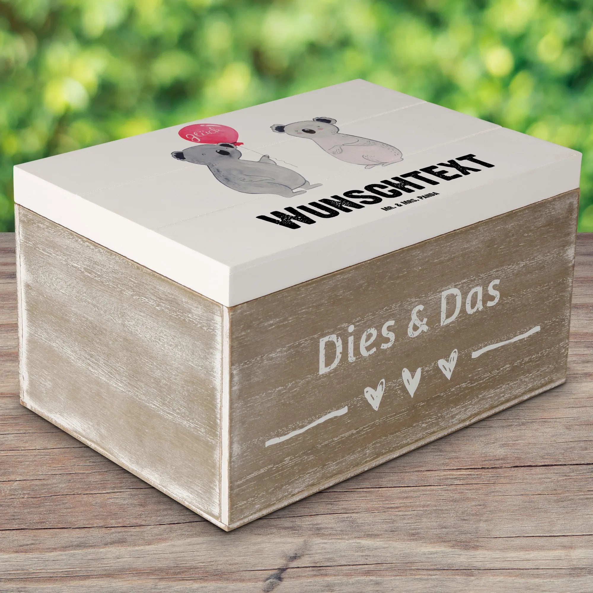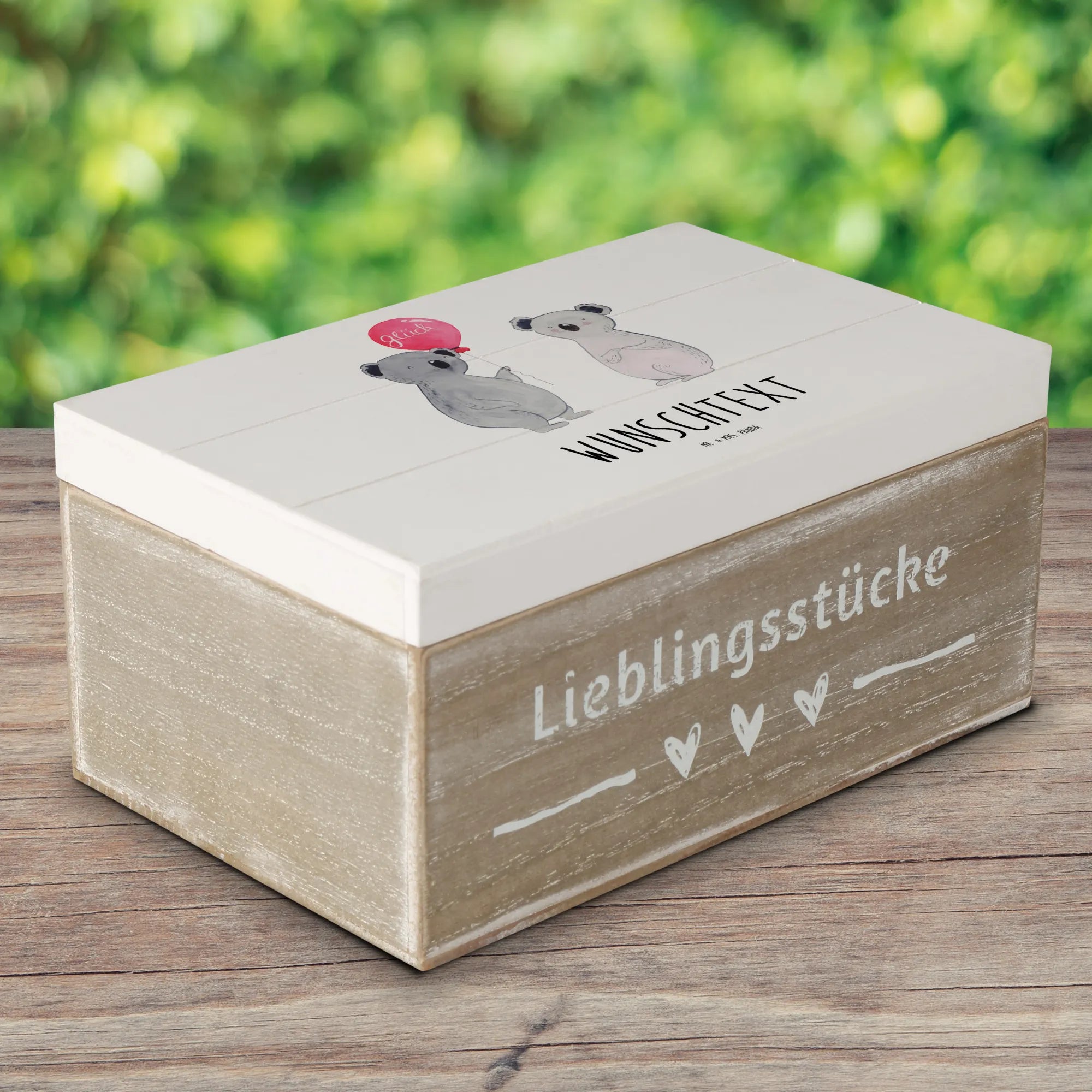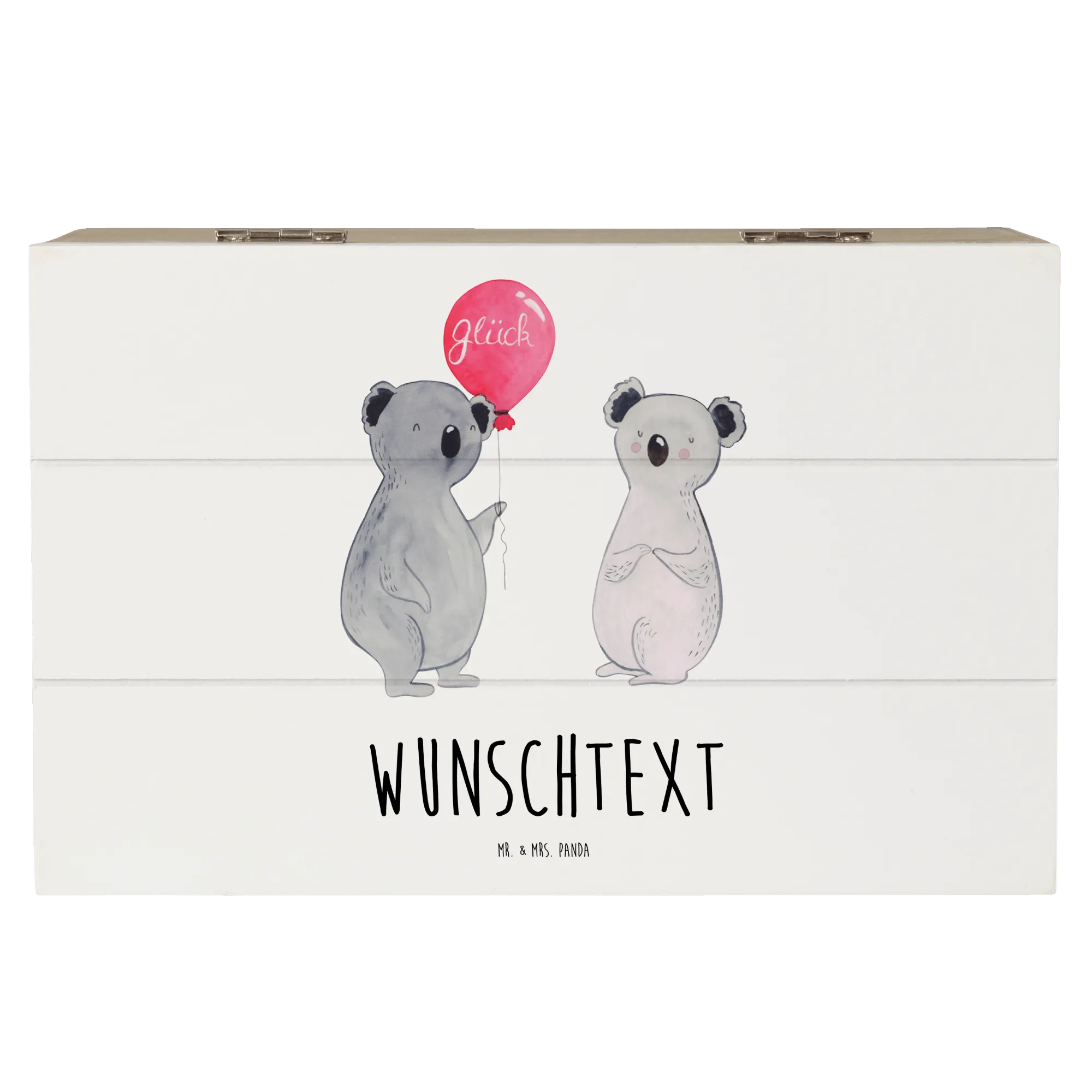 Personalised wooden chest Koala bear balloon - 22 x 15 cm - White