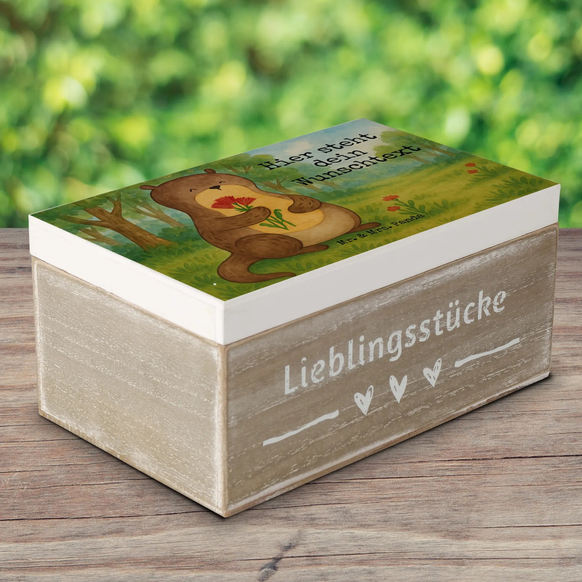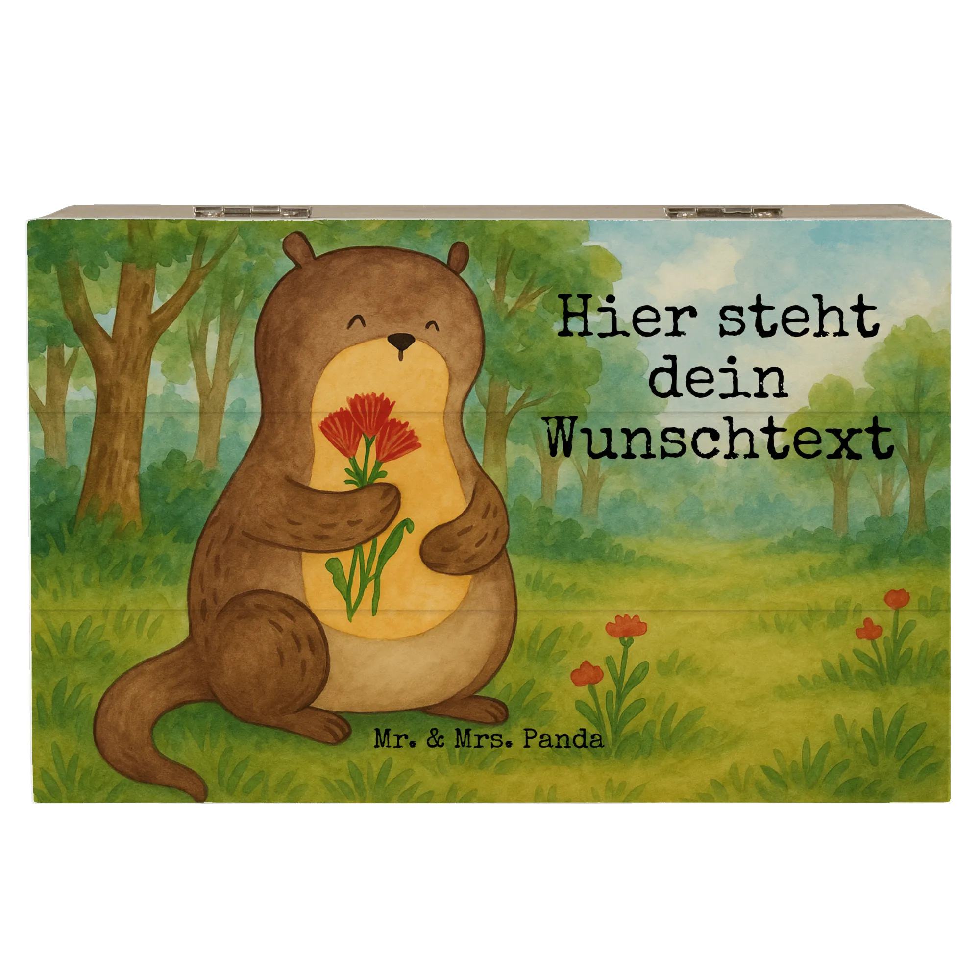 Personalised wooden chest otter Bunch of flowers Design – Mr. & Mrs. Panda