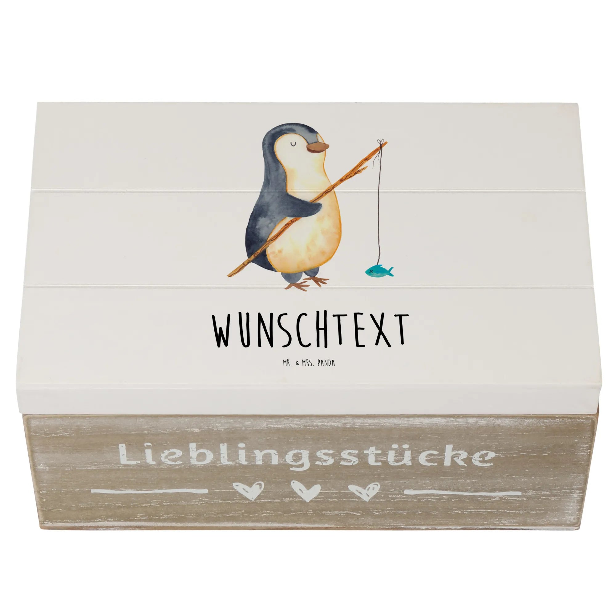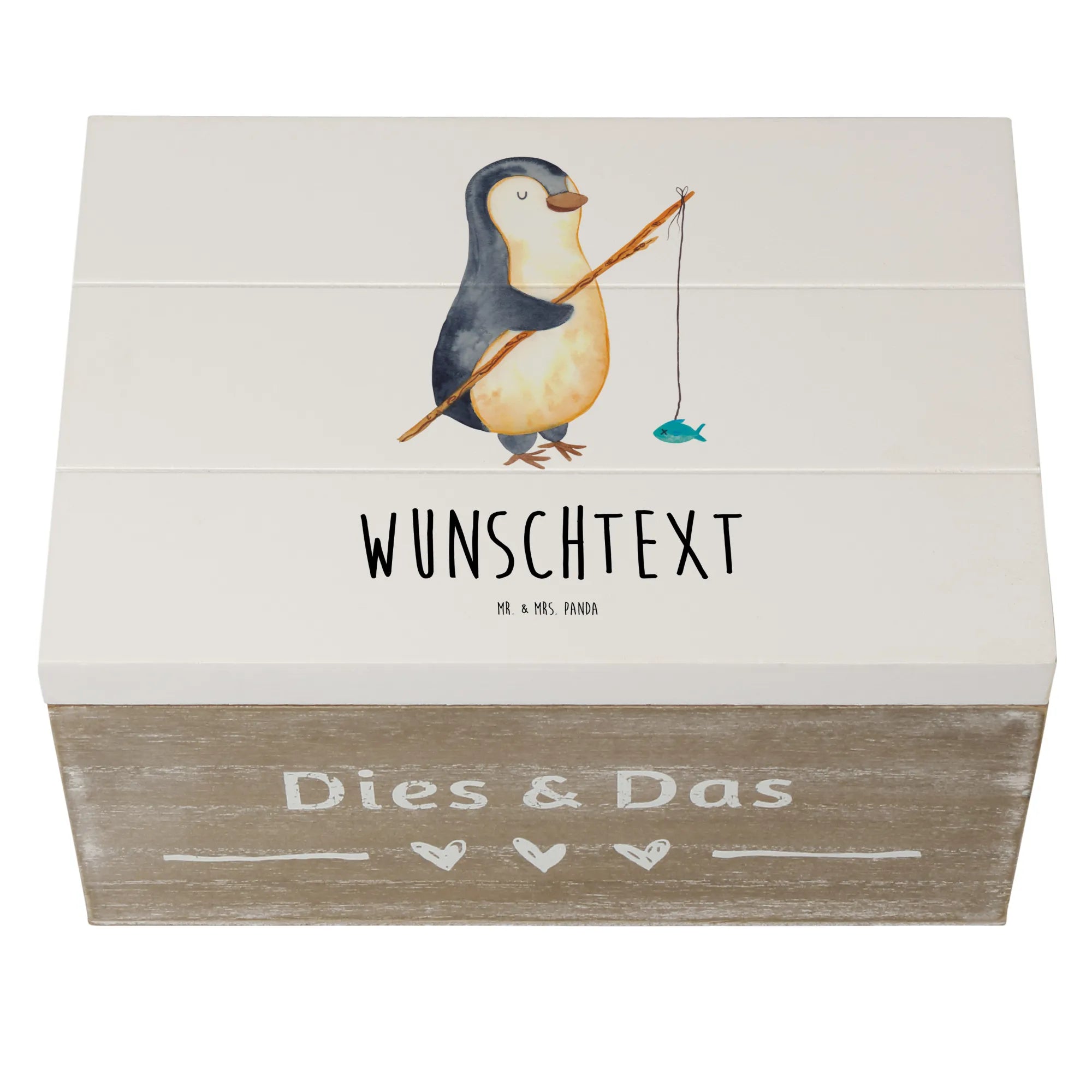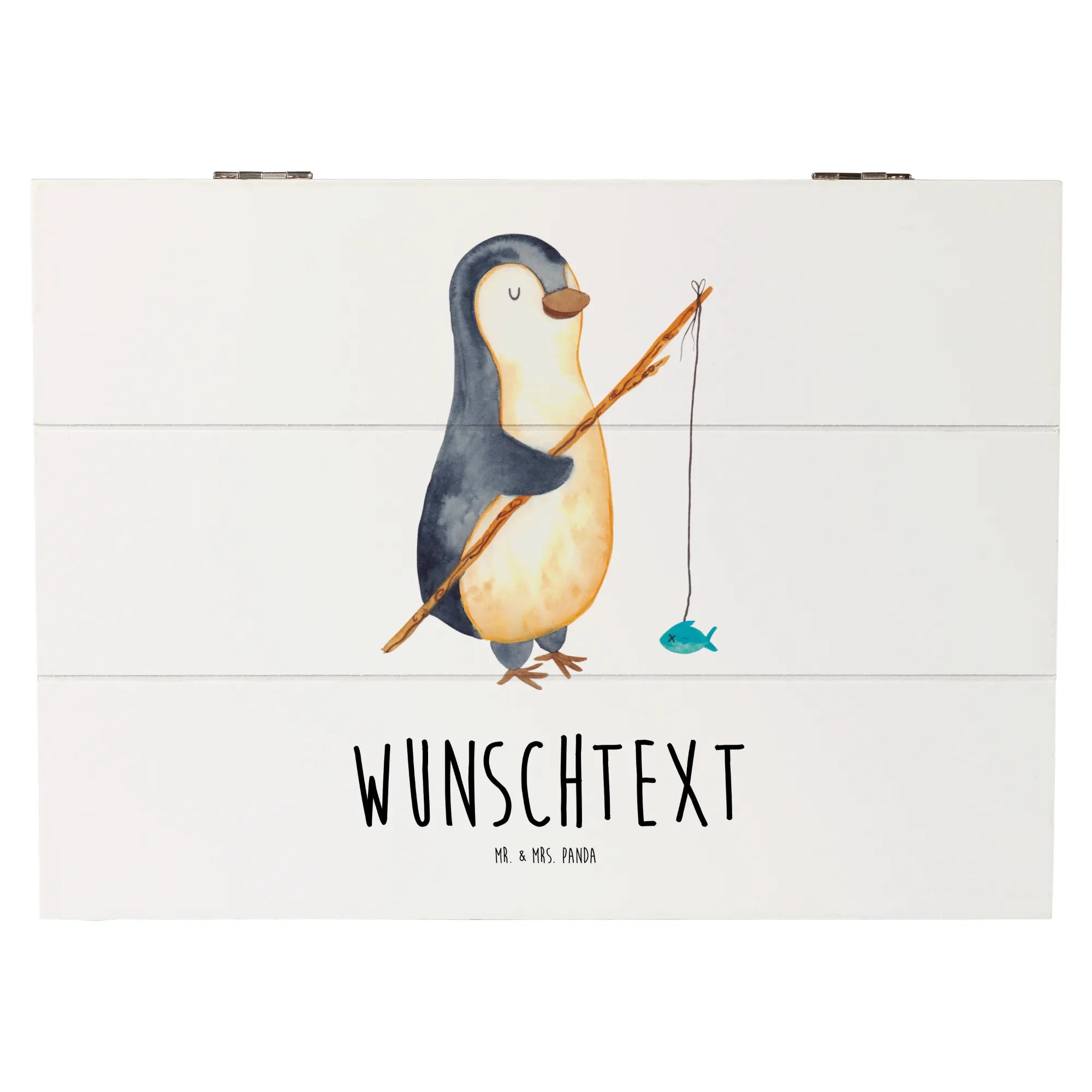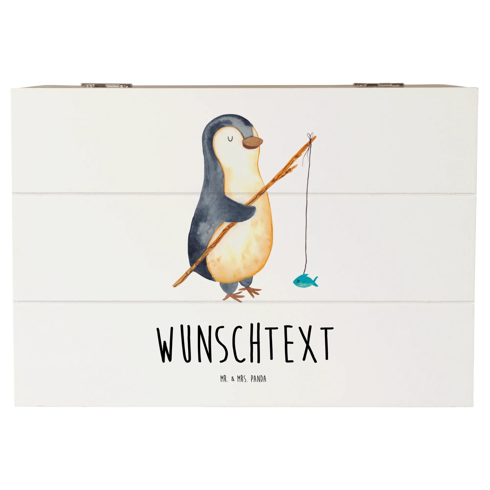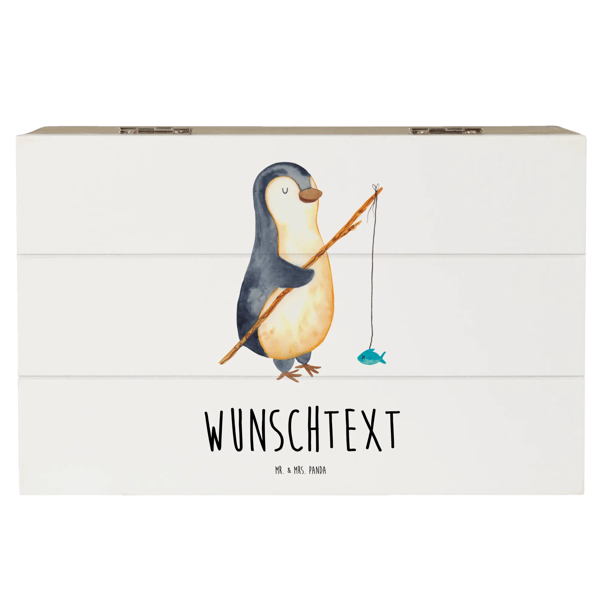 Personalised wooden chest Penguin angler - 22 x 15 cm - White