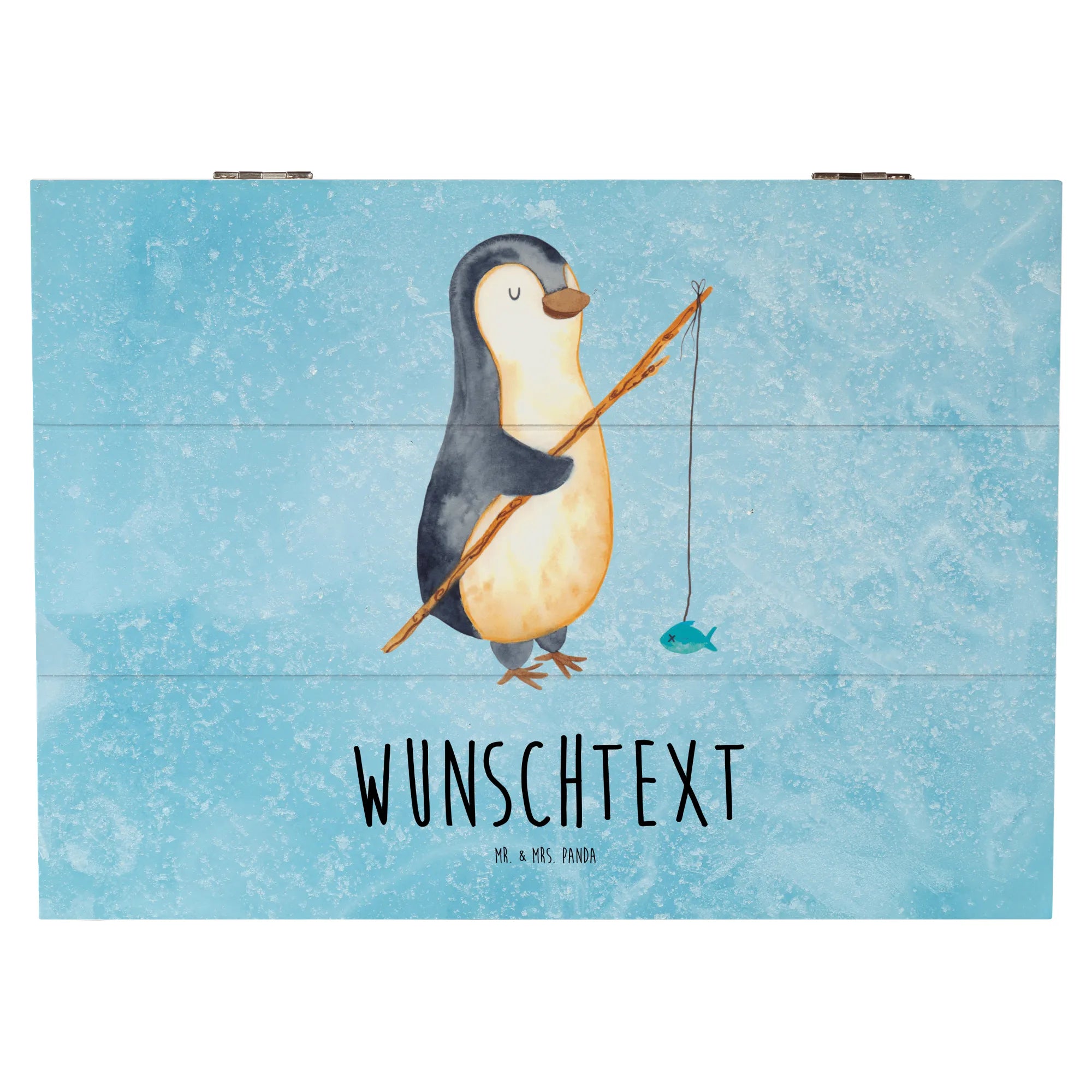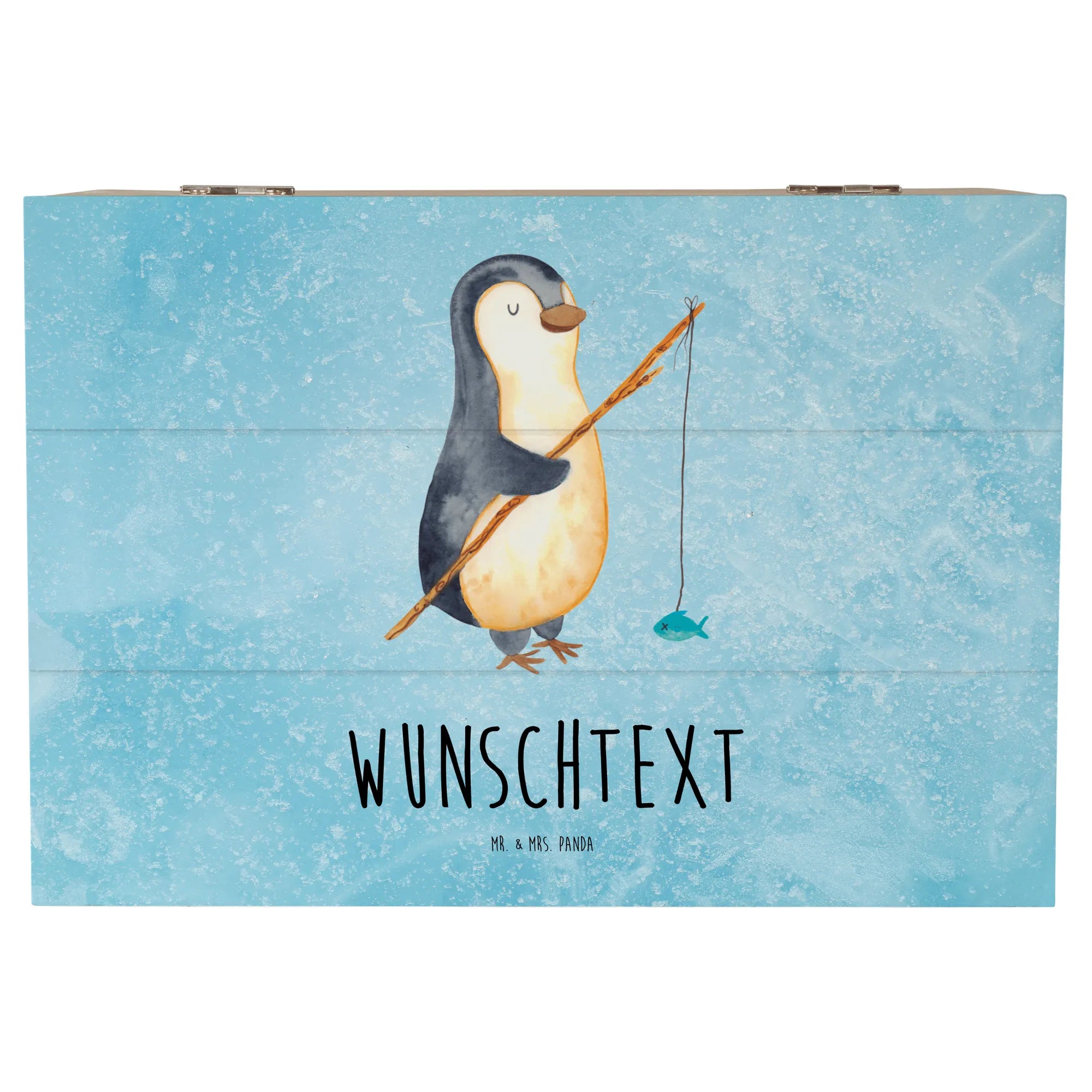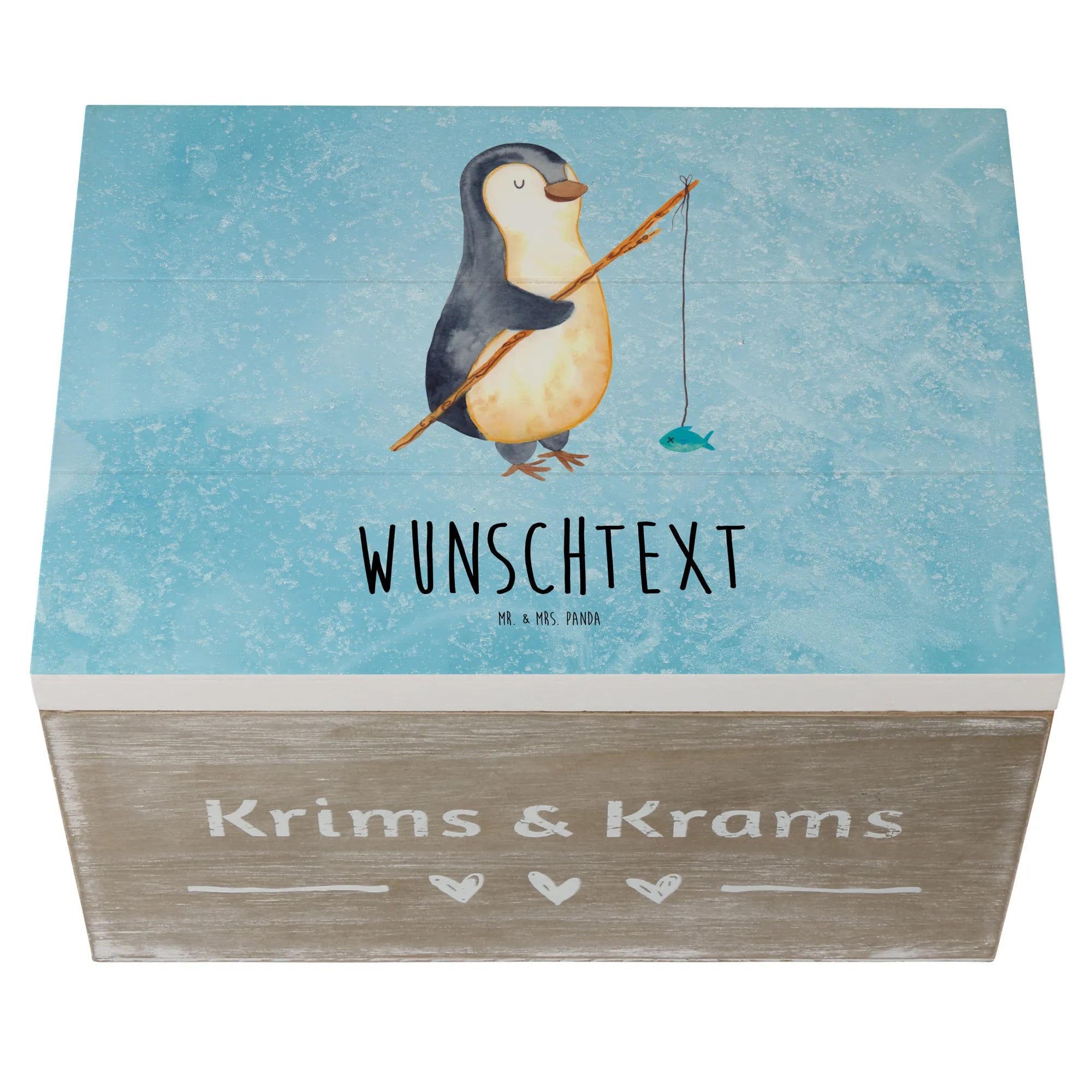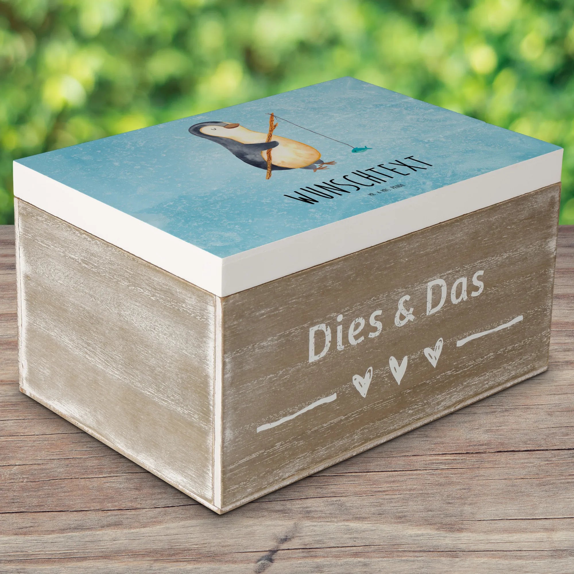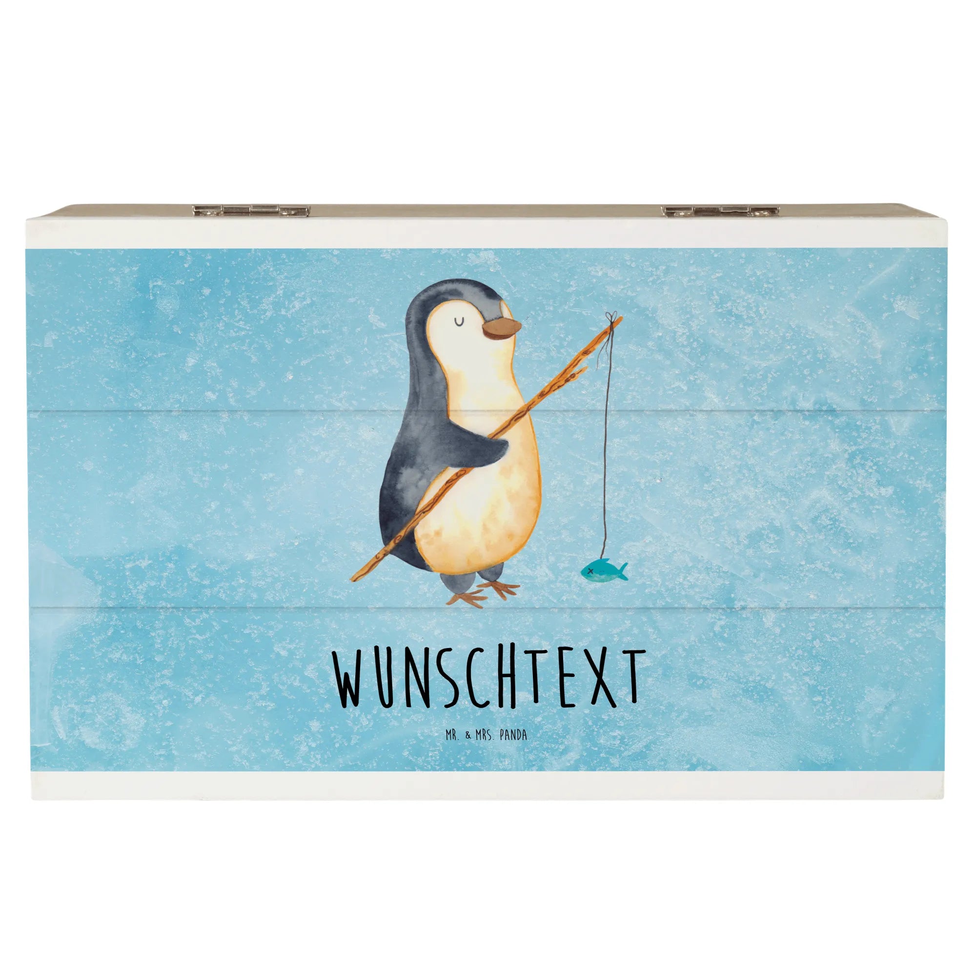 Personalised wooden chest Penguin angler - 22 x 15 cm - White