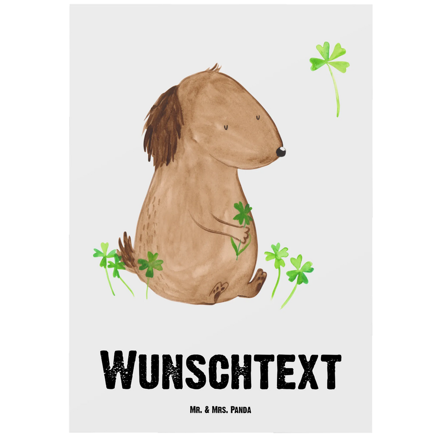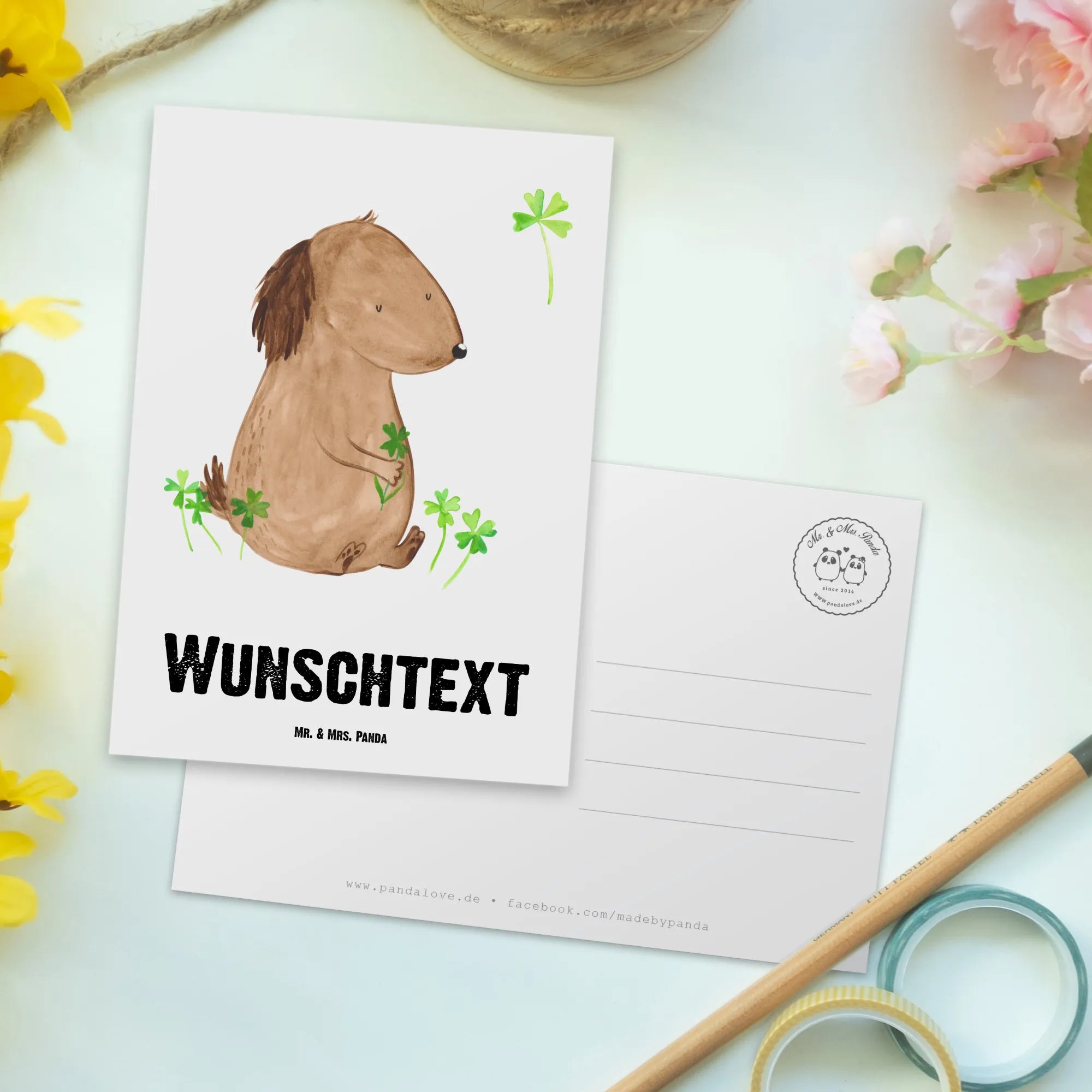 Personalised postcard Dog shamrock dog, mutt, hound, woof, dog mama, dog breed, love dogs, love for dogs, dog decorative items, bag with dog print, funny gifts for dog owners, what do you give a dog lover, Christmas gifts for dogs, gifts for dogs, dog sayings, daydreams, mindfulness, Dog, cloverleaf, lucky charm, new beginning, motivation, gift, happiness, self-love