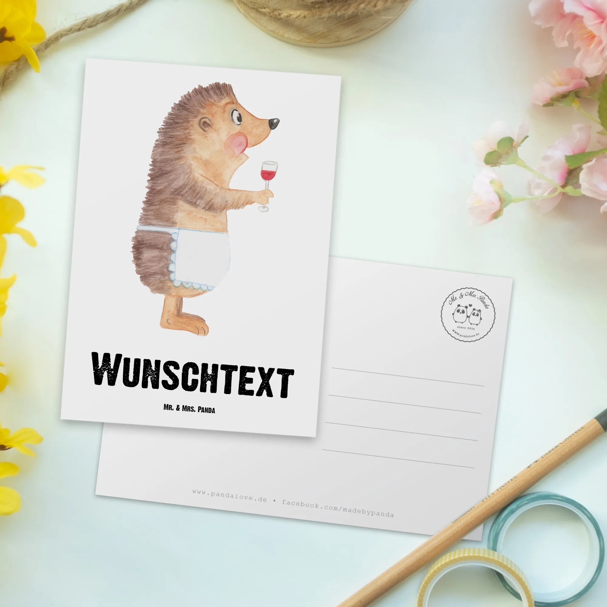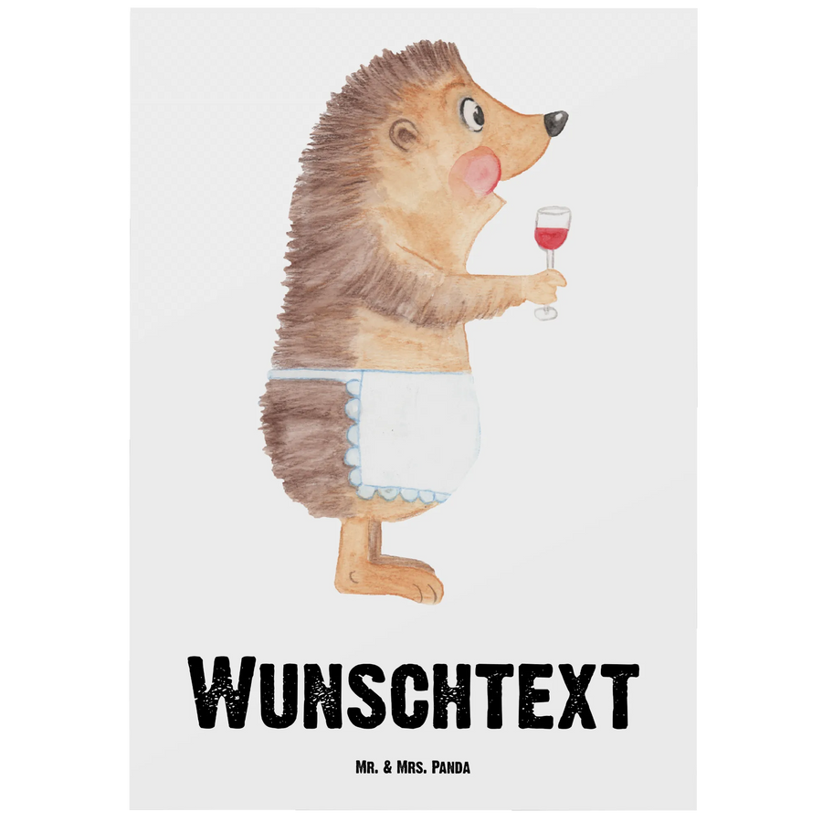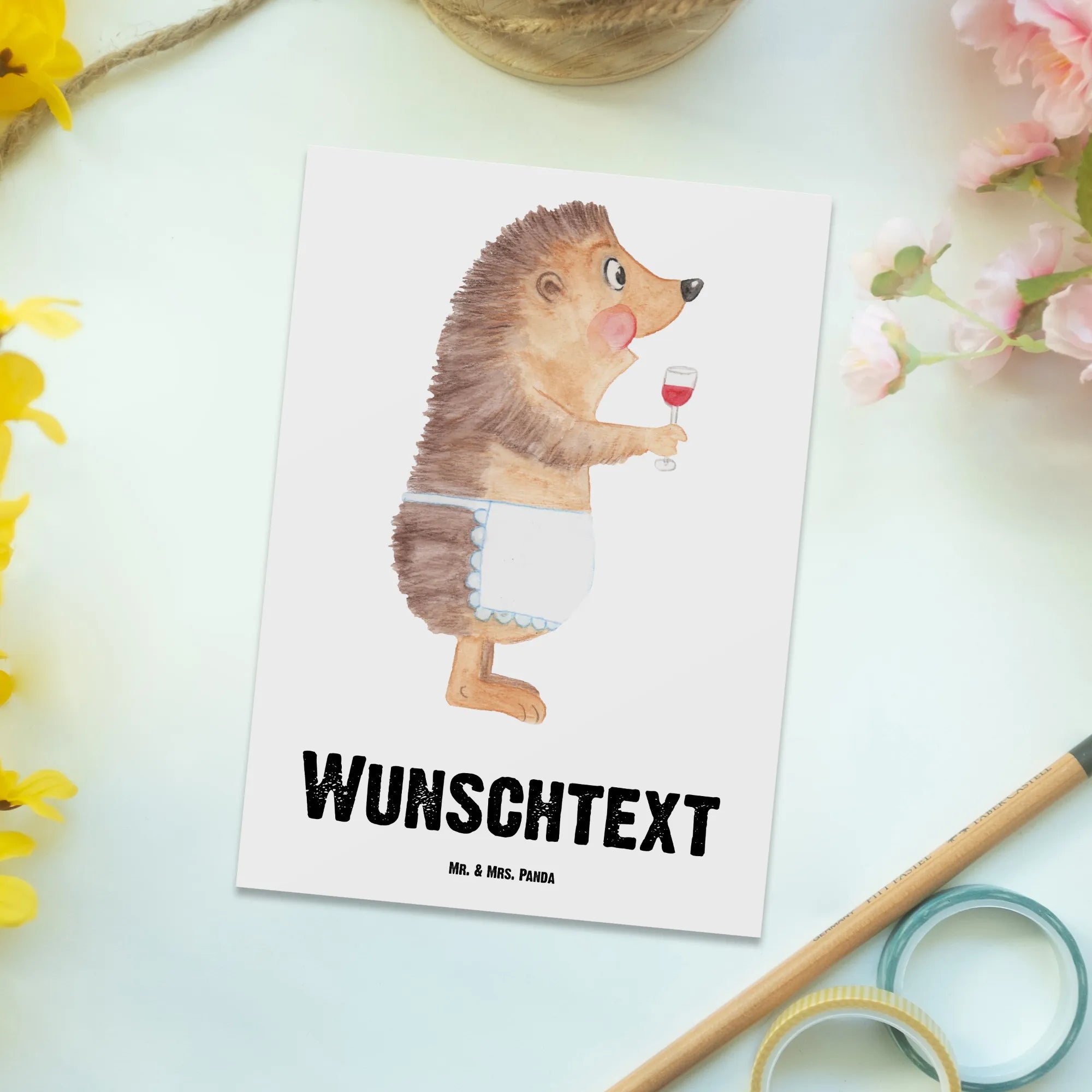 Personalised postcard Hedgehog wine small animals, cute, funny, cute animal motives, hand drawn, small world, funny sayings, good mood, happy, gifts, gift ideas, special gifts, animal lover, card, wine saying, hedgehog, white wine, drinking wine, red wine, gift wine drinker, gift wine lover, wine glass, wine decoration