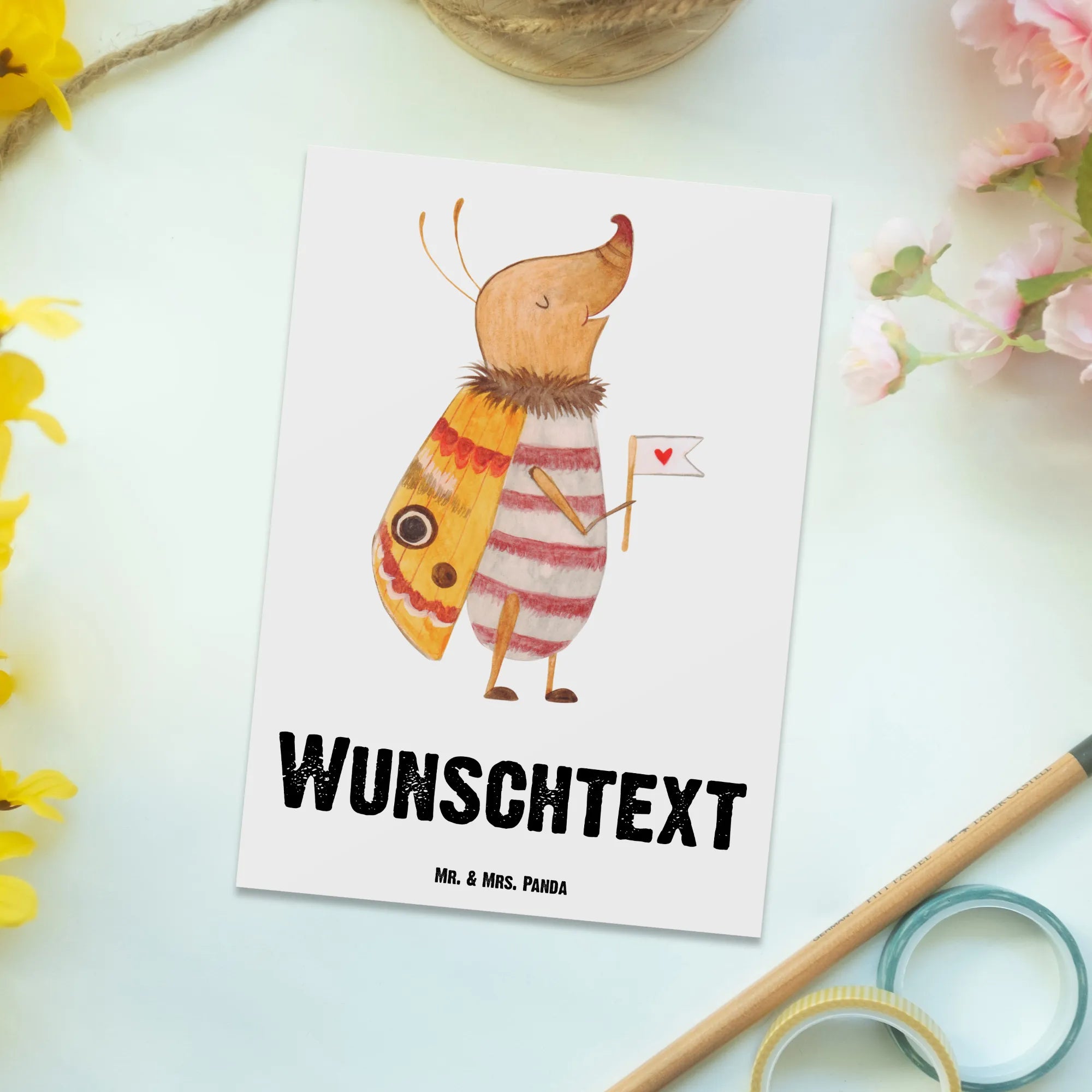 Personalised postcard Moth flag – Mr. & Mrs. Panda