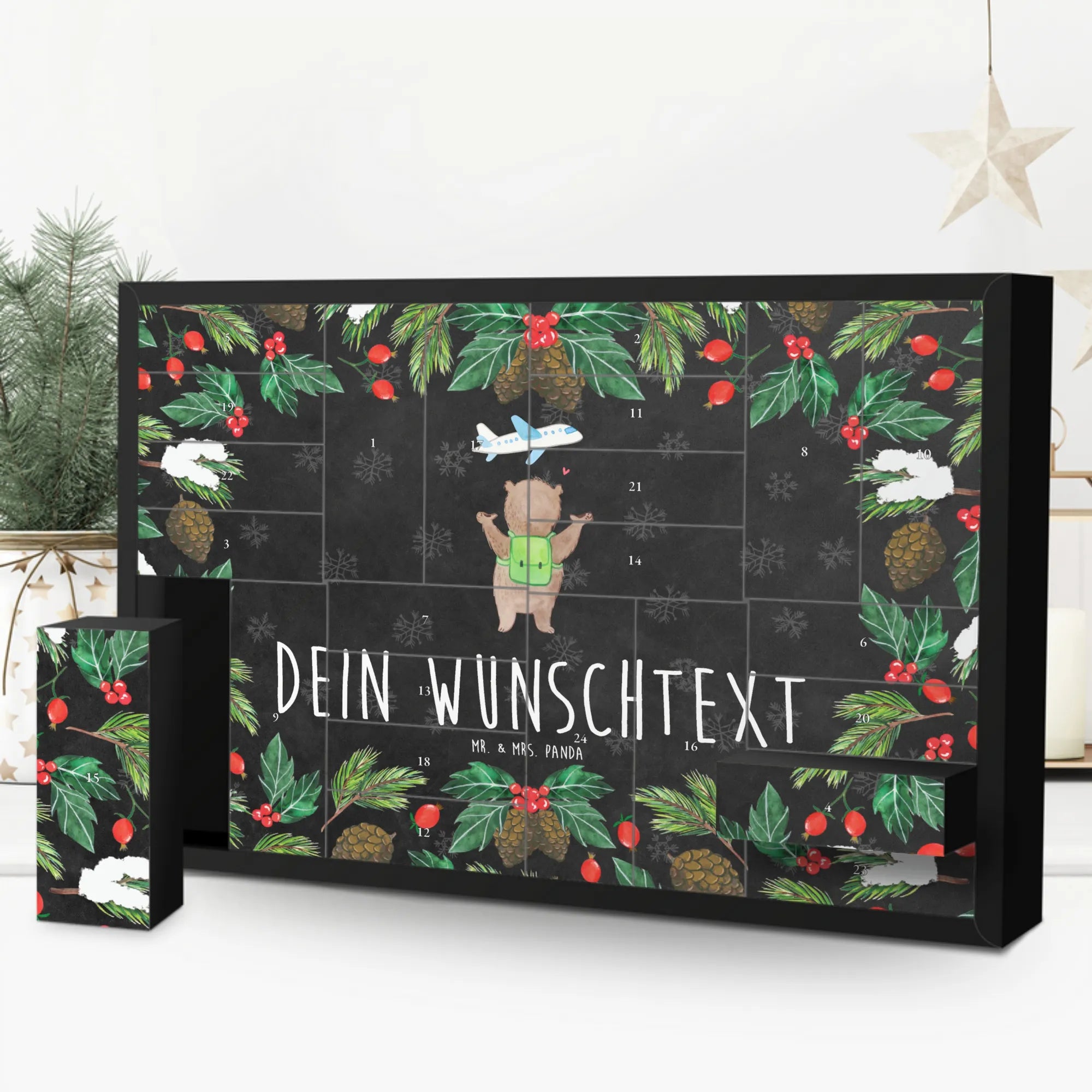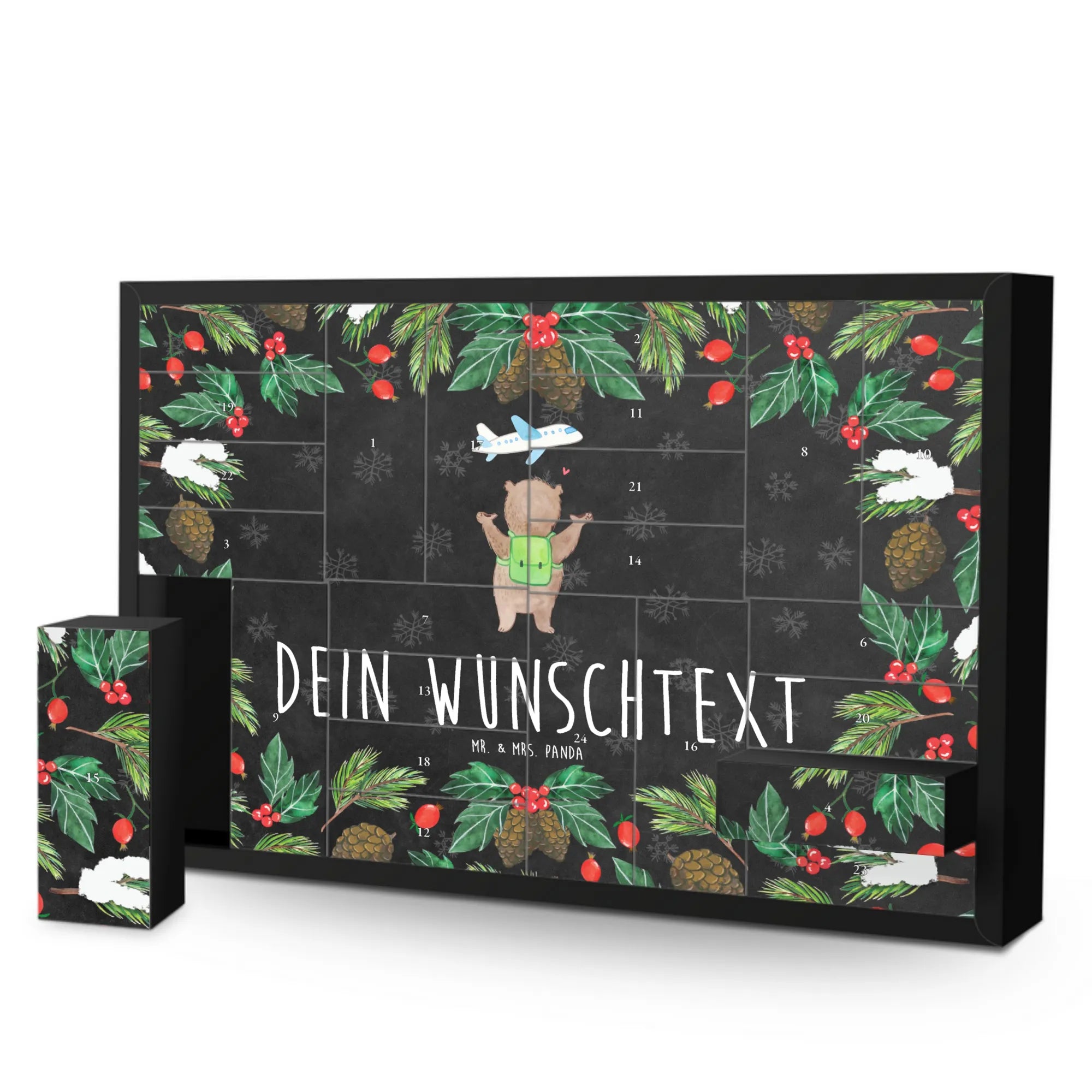 Envision a joyful bear, arms wide open, ready for life’s adventures! With his trusty green messenger bag, this lovely bear gazes up at a playful airplane, with a sweet red heart floating in between them. Reflecting warmth and positivity, the charming slogan, 'Ich möchte mit dir die Welt bereisen, weil ich mit dir an meiner Seite noch so viel mehr erleben will,' beautifully illustrates the joy of exploring the world together. This delightful motif makes an ideal Valentine's Day gift for women or a unique anniversary surprise, reminding your partner of the beautiful travels yet to come!