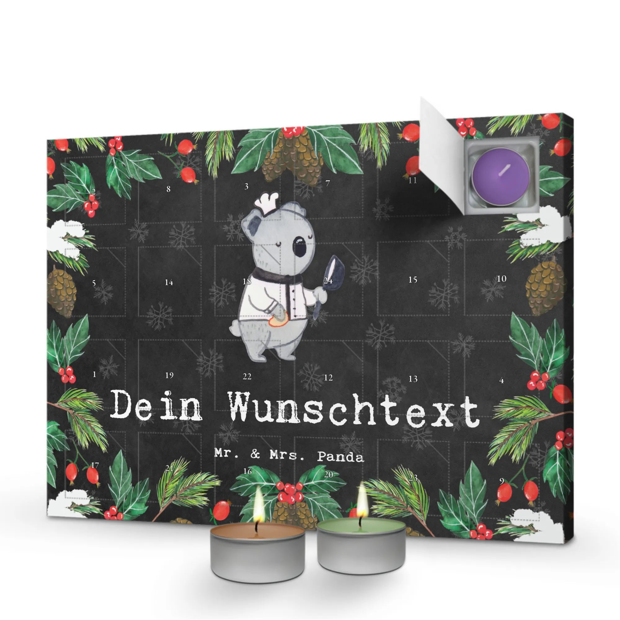 Erlebe Duft und Design: Bestell jetzt den personalisierten Duftkerzen Adventskalender und genieße 24 Tage voller Duftüberraschungen von Mr. & Mrs. Panda.