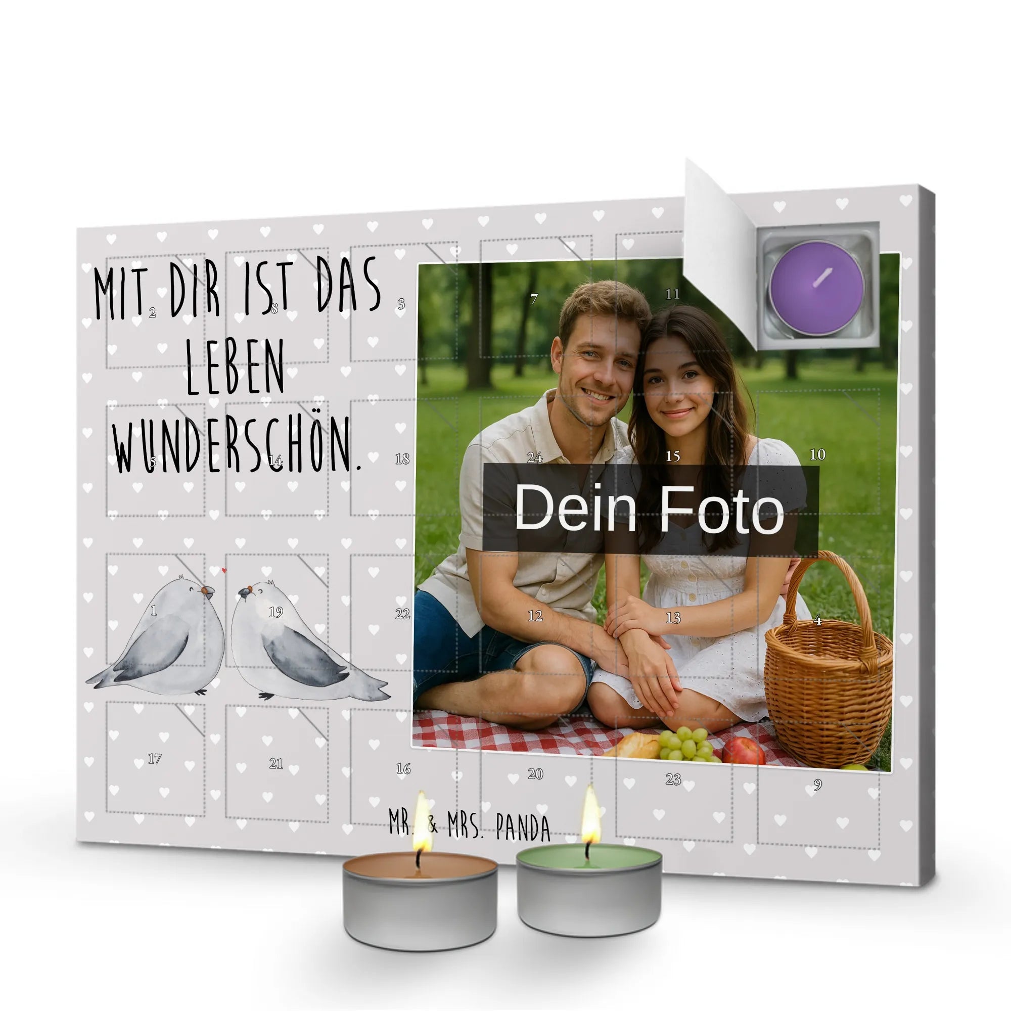Personalisierter Duftkerzen Foto Adventskalender Turteltauben Liebe – Mr. & Mrs. Panda