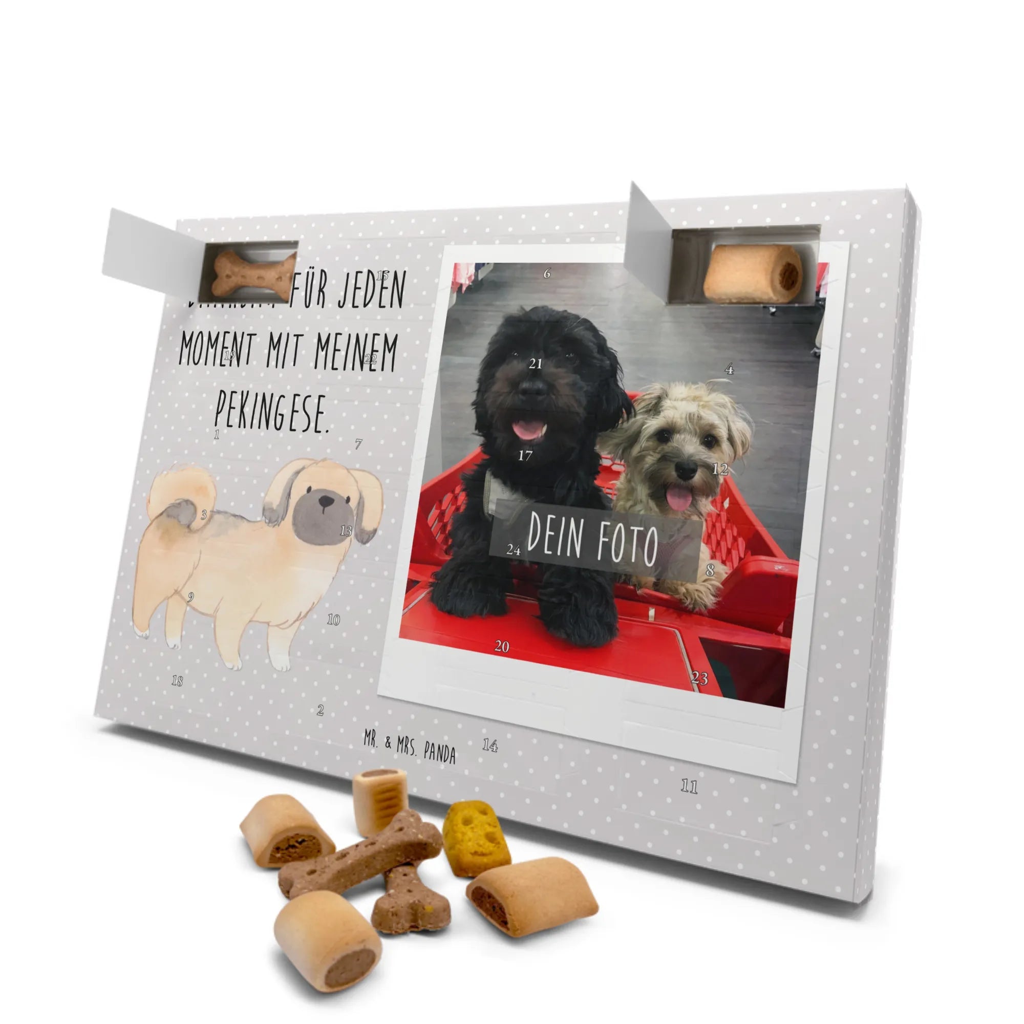 🐼 PERSONALISIERTER KALENDER: Dein Foto-Adventskalender mit 24 Premium-Hundekuchen, personalisierbar, liebevolle Motive von Mr. & Mrs. Panda.