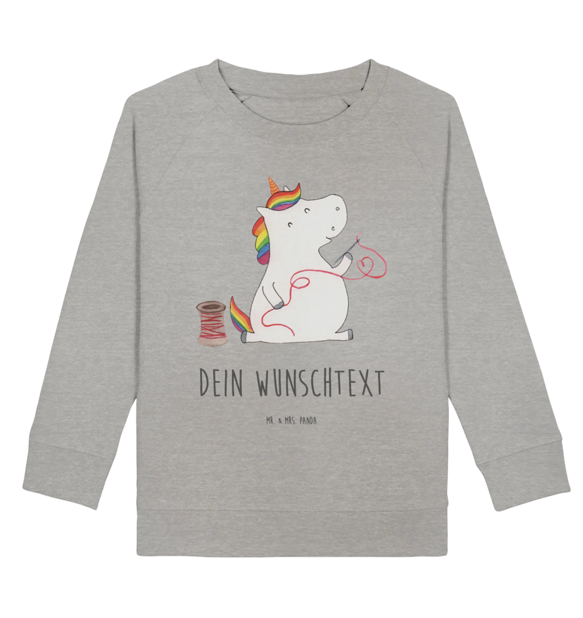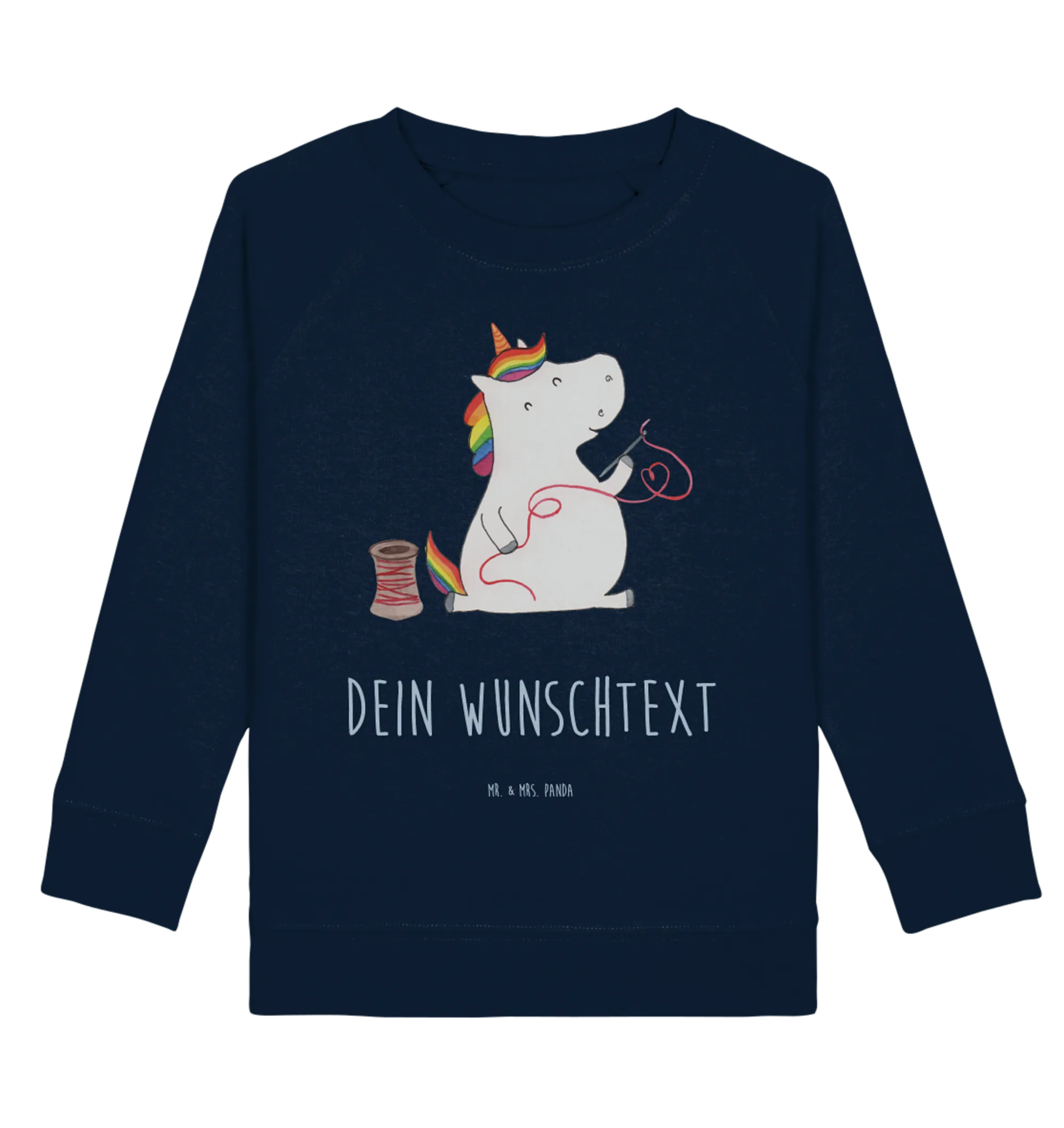 Der personalisierte Kinder Pullover 'Einhorn Näherin' aus der zauberhaften Einhorn-Kollektion von Mr. & Mrs. Panda ist das perfekte Geschenk für kleine Kreative und Einhorn-Fans.