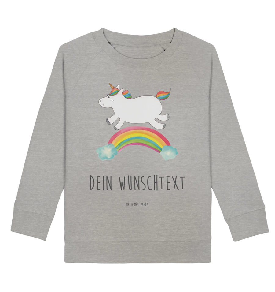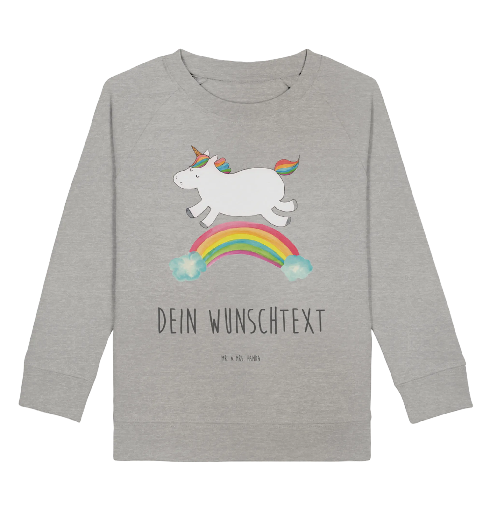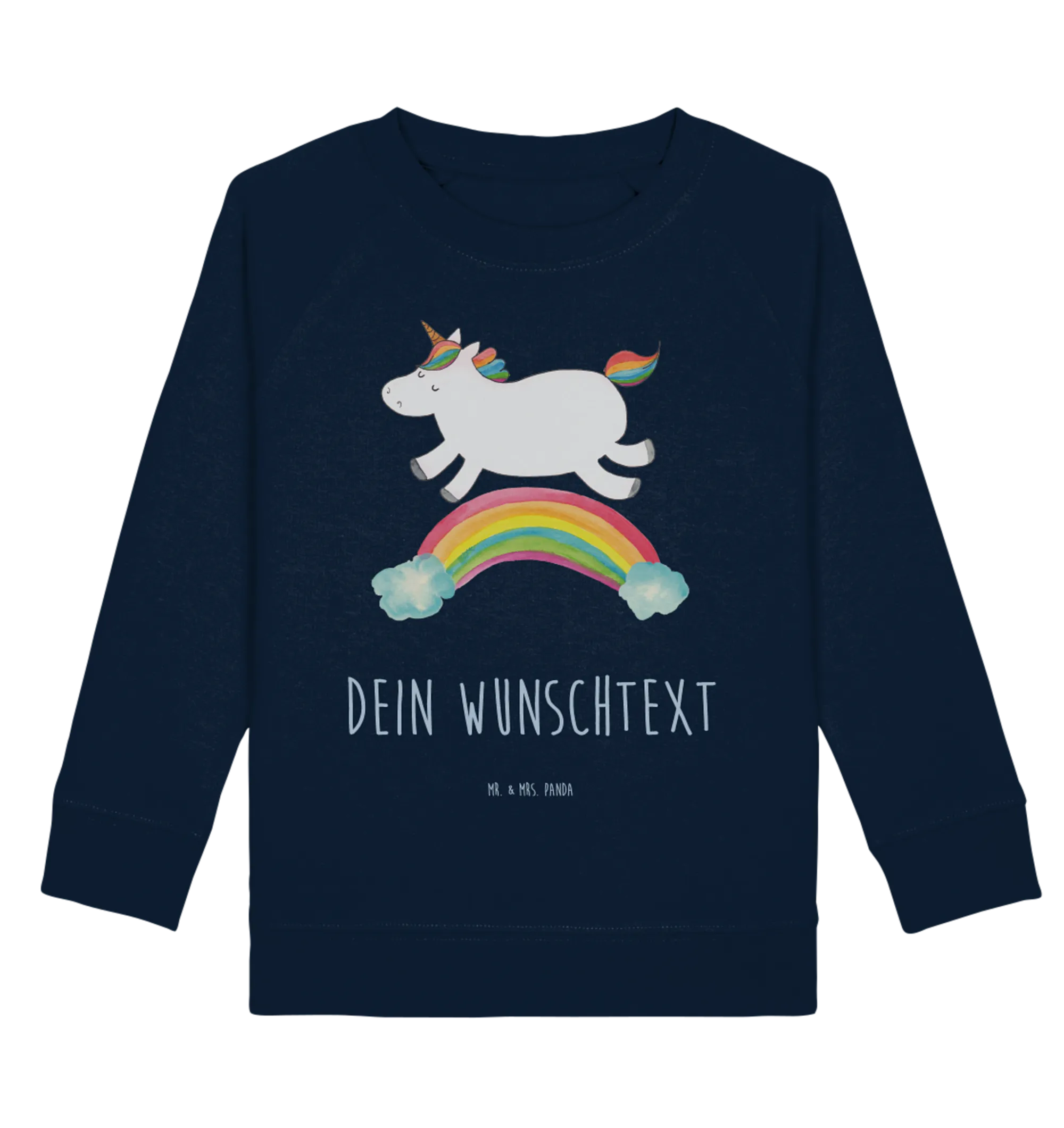Entdecke den personalisierten Kinder Pullover mit einem fröhlichen Einhorn und Regenbogenmotiv aus unserer bezaubernden Einhorn-Kollektion! 🎉