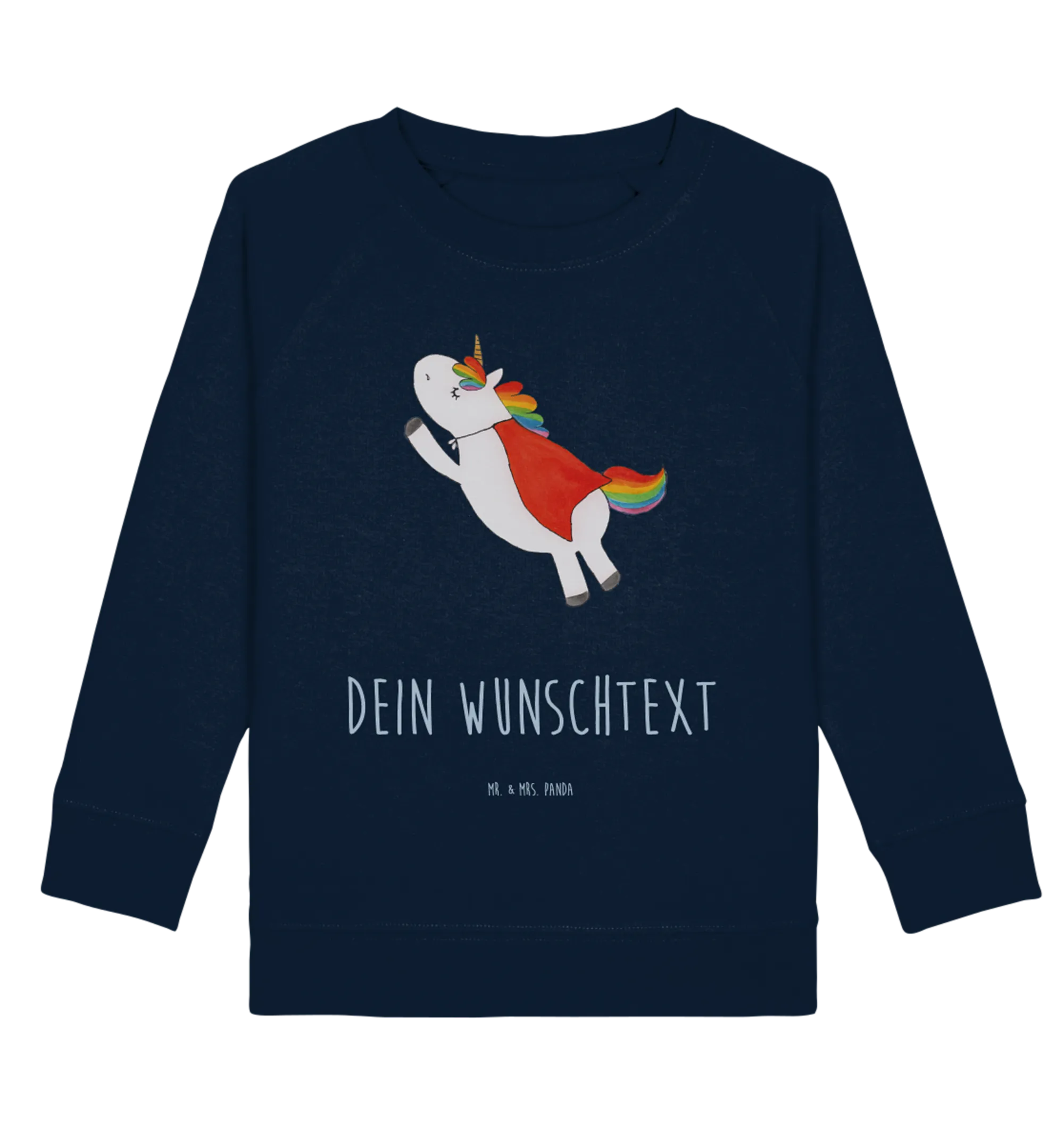 Der personalisierte Kinder Pullover "Einhorn Super" aus der einzigartigen Einhorn-Kollektion von Mr. & Mrs. Panda ist das perfekte Geschenk für kleine Einhorn-Fans. Mit seinem fröhlichen Design wird jeder Pullover zum absoluten Blickfang. Die zauberhafte Welt der Einhörner fasziniert nicht nur Mädchen, sondern auch Jungen – und genau hier setzt unser Pullover an: Er verbindet den märchenhaften Charme eines Einhorns mit dem heroischen Motiv eines Superhelden.