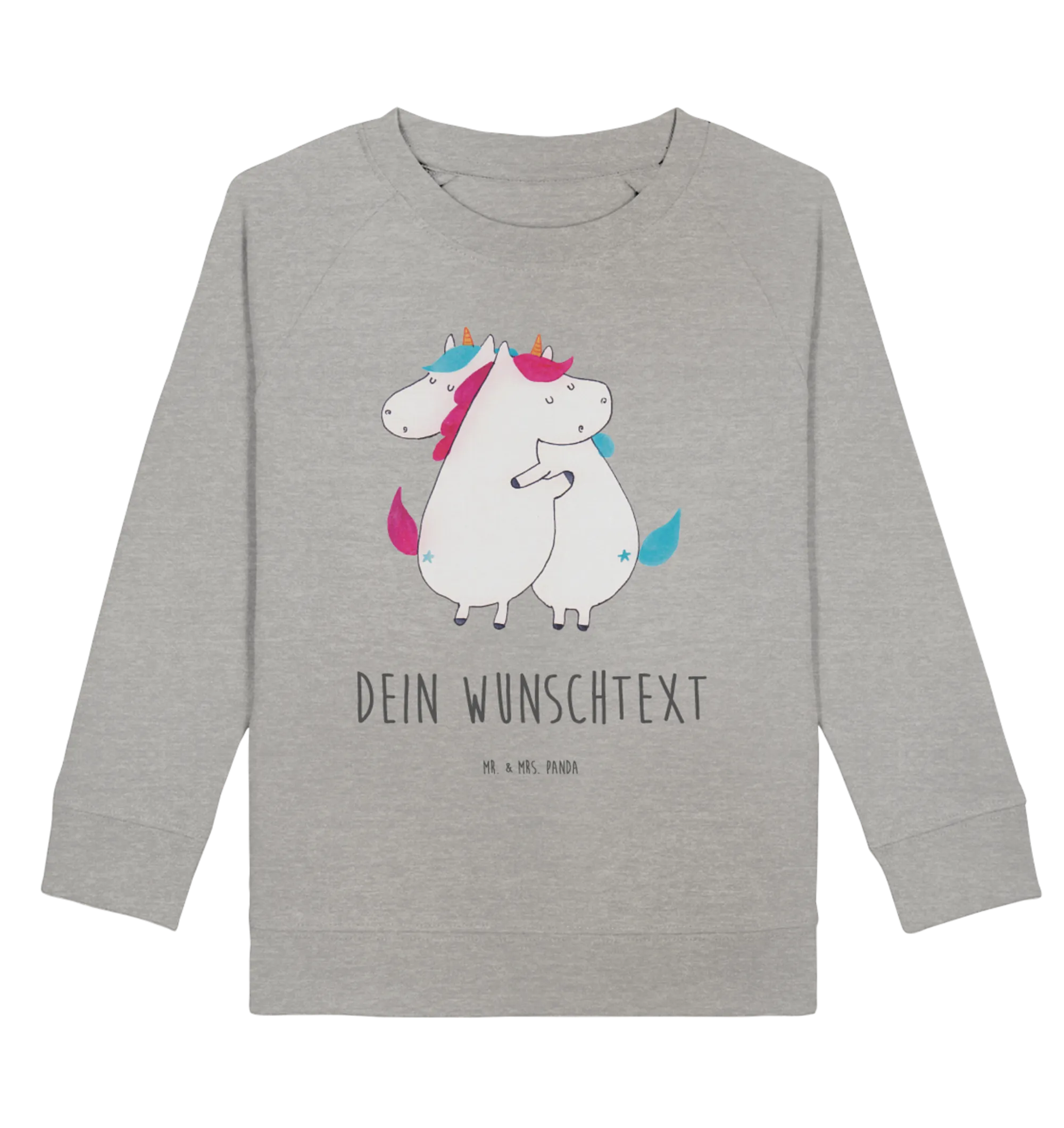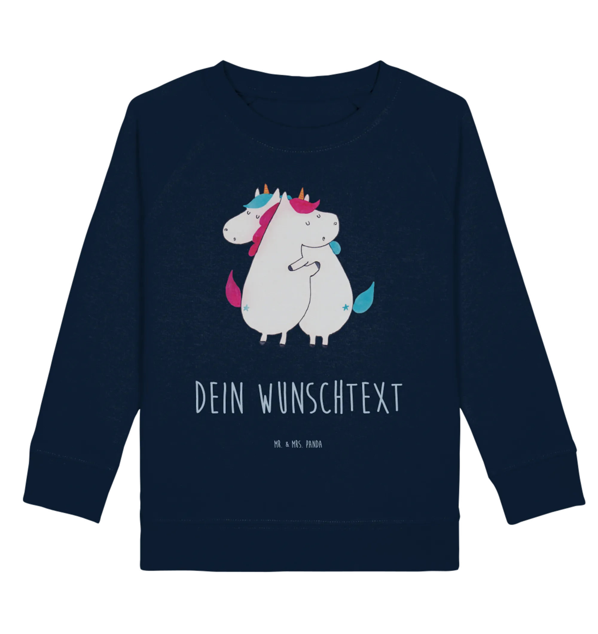 Schenke ein kleineres Stück Magie und jede Menge Kuschelmomente. Der personlisierte Kinder Pullover „Einhörner Umarmen“ ist ein liebevolles Geschenk für Schwestern, Freundinnen und alle Einhorn-Liebhaberinnen – designed mit viel Herz von Mr. & Mrs. Panda.