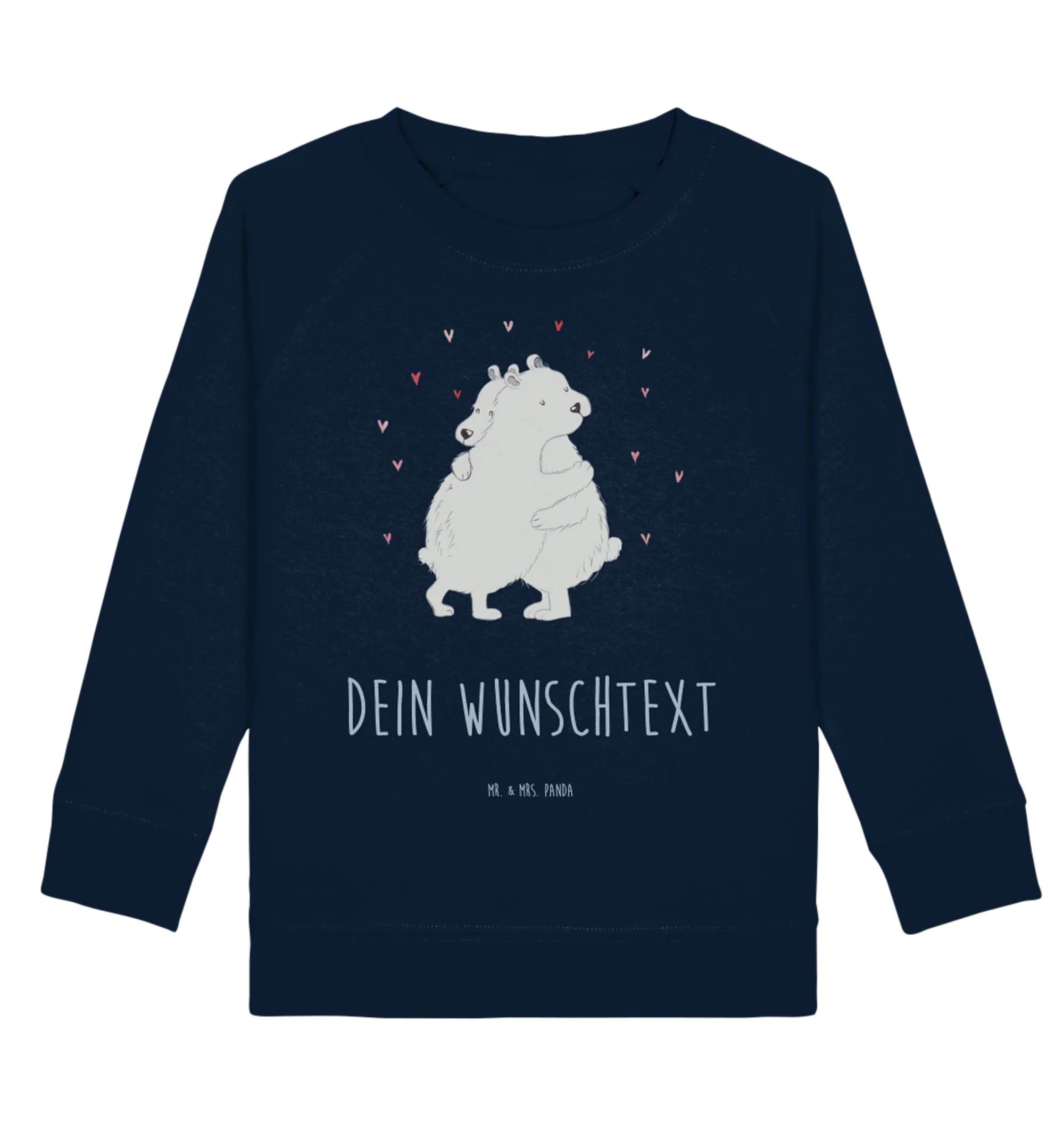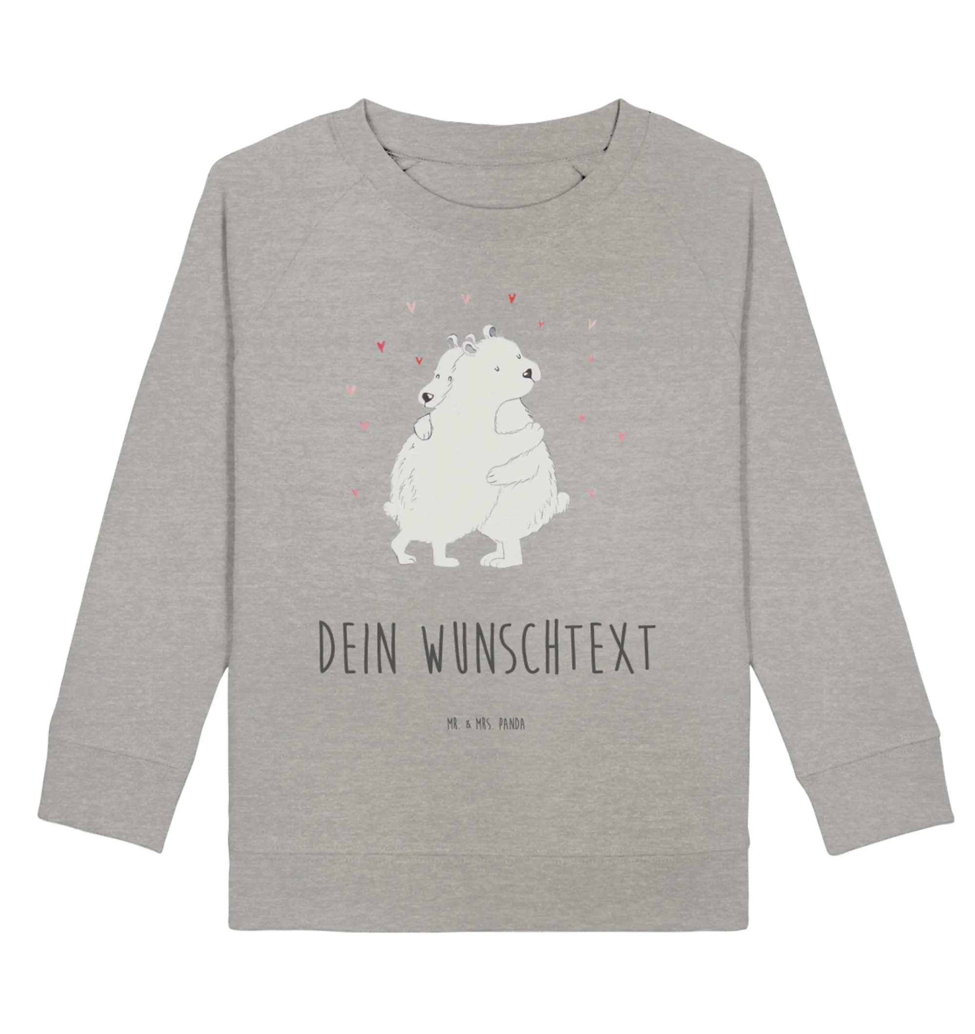 Entdecke den zauberhaften personalisierten Kinder Pullover mit dem süßen Motiv "Eisbär Umarmen" aus der Small World Kollektion von Mr. & Mrs. Panda! Dieser Pullover ist nicht nur warm und bequem – er bringt auch das Herz zum Schmelzen! Die beiden Eisbären, die sich innig umarmen, strahlen pure Liebe und Freundschaft aus.