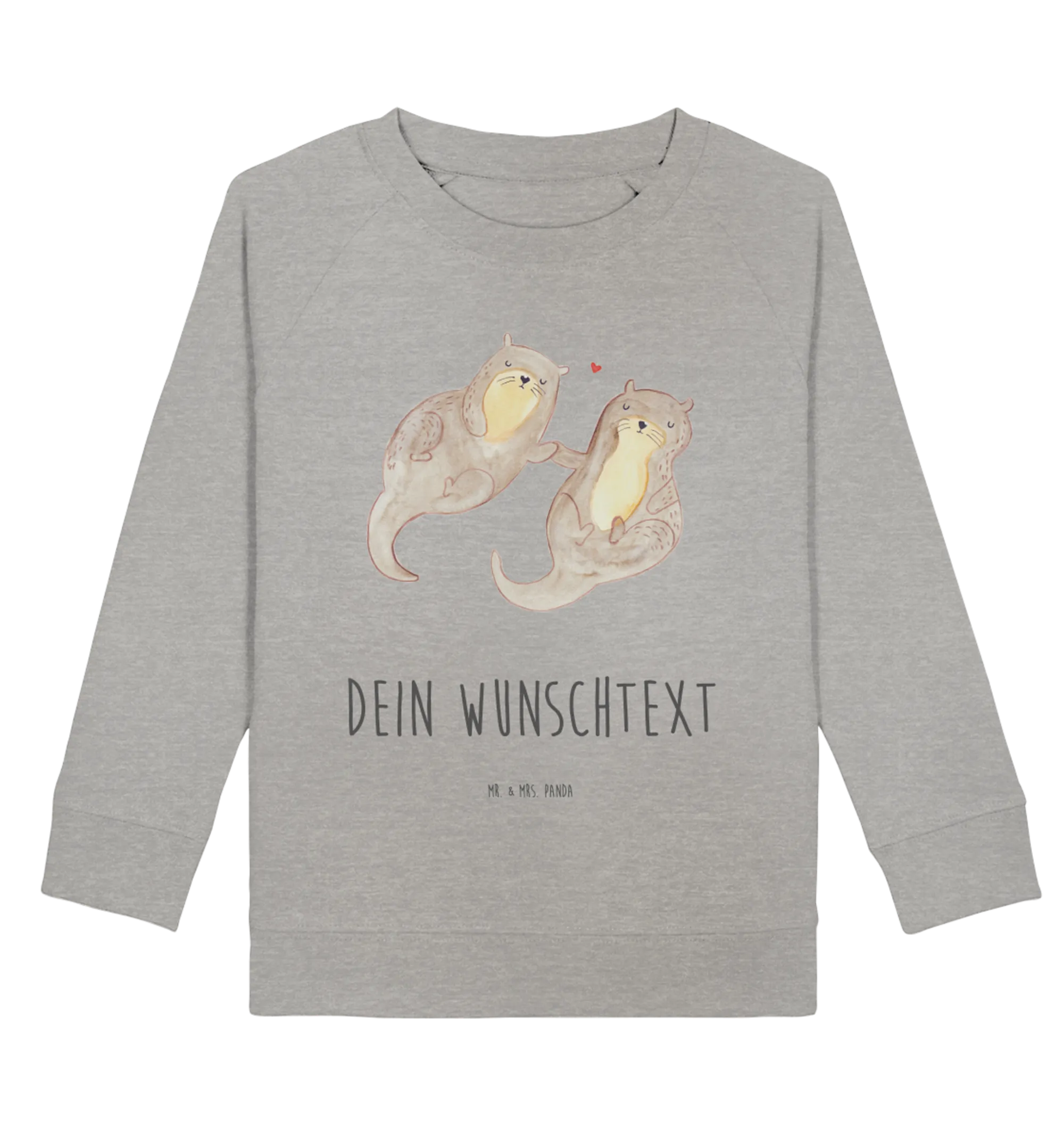 Personalisierter Kinder Pullover Otter händchenhaltend - 12-14 Jahre (152/164) - Heather Grey
