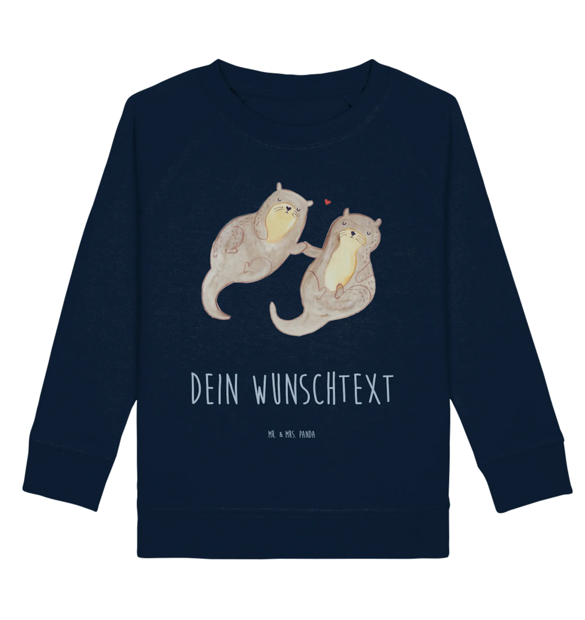 Hol dir jetzt das Otter-Pärchen: Schenke Geborgenheit, Freude und ein kleines Zeichen der Zuneigung – mit dem personalisierten Kinder Pullover „Otter händchenhaltend“. I love you like no otter!