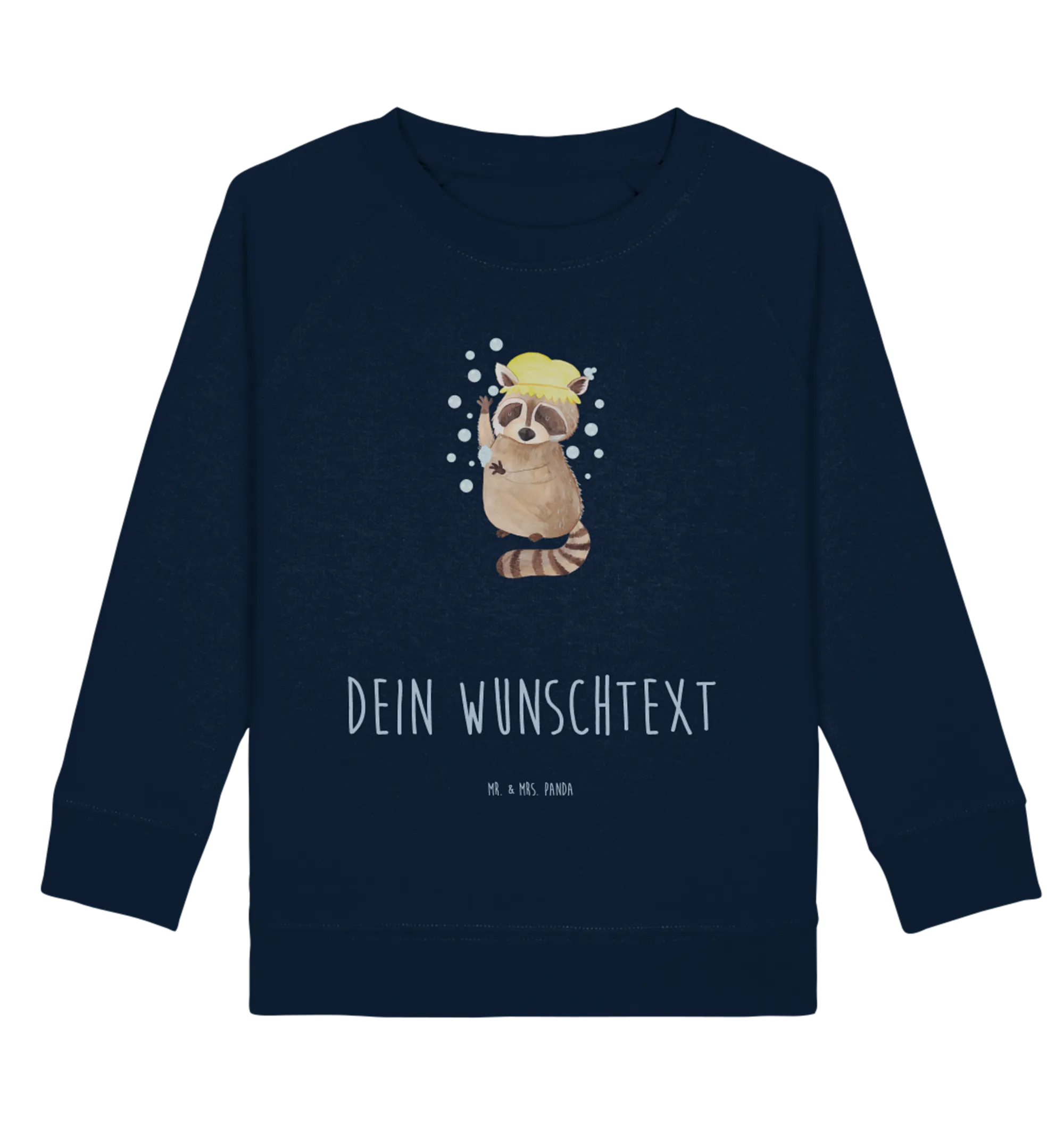 Möchtest du das perfekte Geschenk für dein kleines Tierliebhaber? Mit unserem personalisierten Kinder Pullover mit dem süßen Waschbär-Motiv wird jeder Tag zum Abenteuer! Dieser Pullover aus 100% Öko Baumwolle ist nicht nur super bequem, sondern trägt auch einen fröhlichen Slogan: "Mein Plan für heute: Tagträumen und fröhlich sein." Der Waschbär, der es sich unter der Dusche gemütlich macht, ist ein wahrer Blickfang und sorgt für gute Laune.