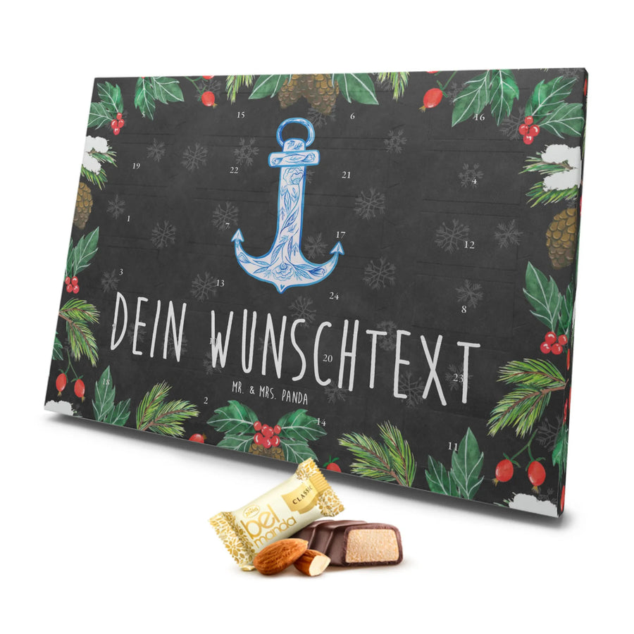 Personalisierter Marzipan Adventskalender Anker Blau - Schwarz