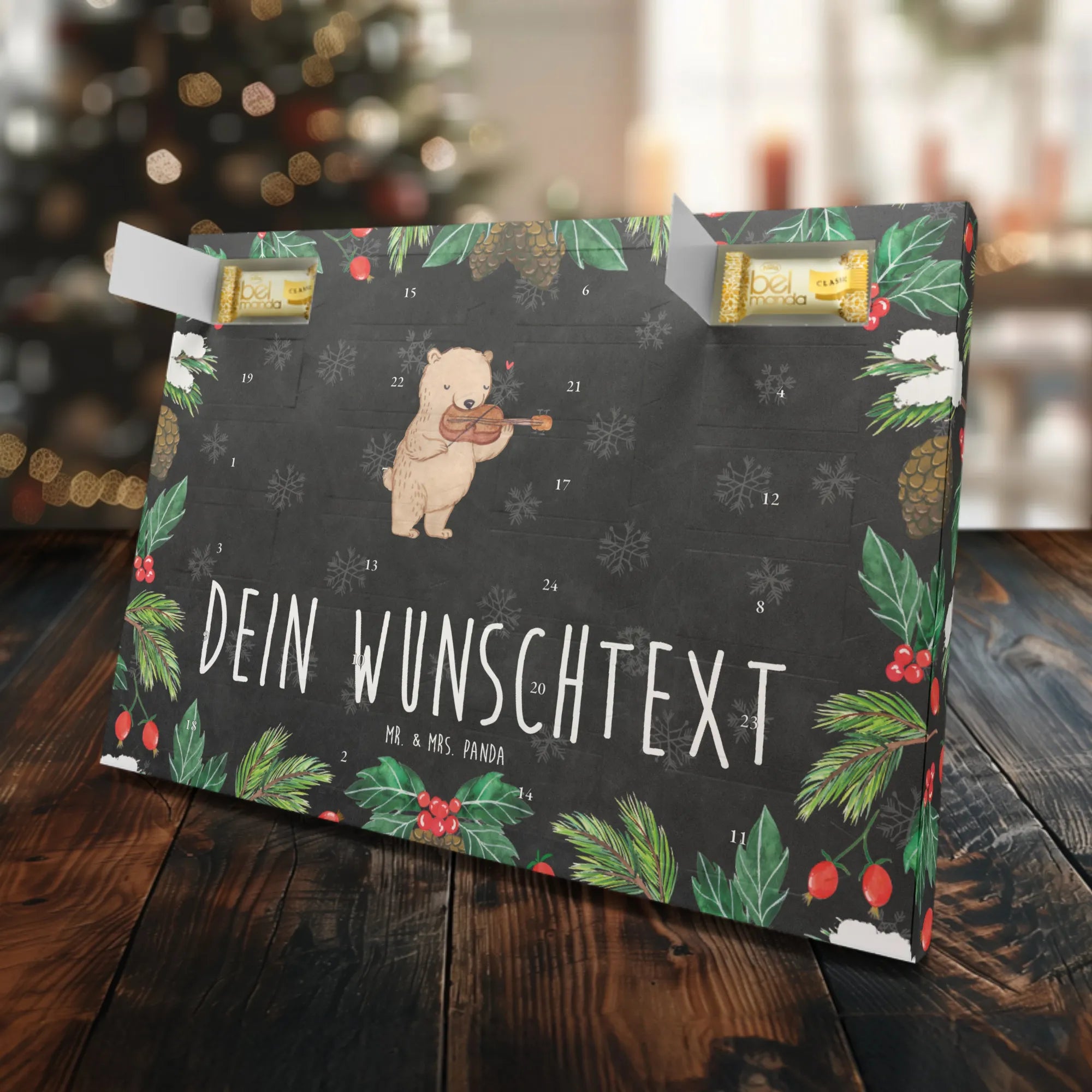 Personalisierter Marzipan Adventskalender Bär Geige - Schwarz