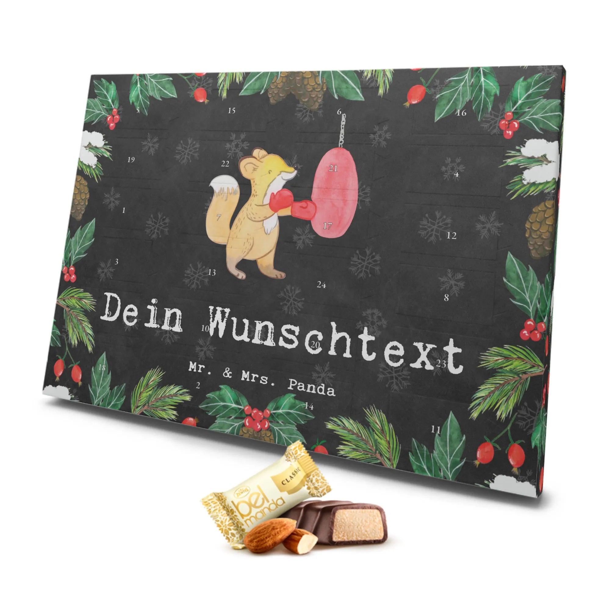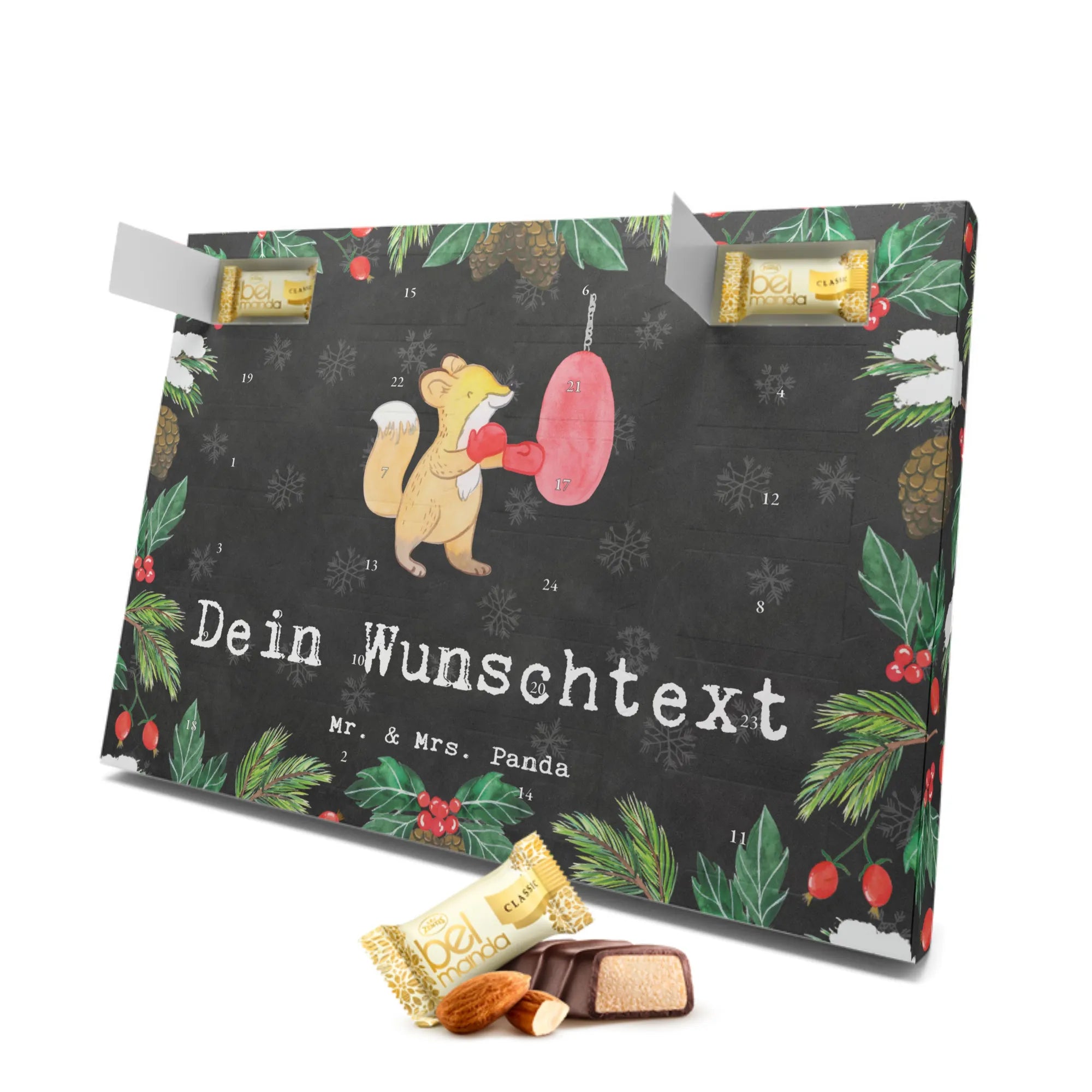 Personalisierter Marzipan Adventskalender Fuchs Boxen Personalisierter Marzipan Adventskalender, Geschenk, Sport, Sportart, Hobby, Schenken, Danke, Dankeschön, Auszeichnung, Gewinn, Sportler, Boxtraining, Boxen, Boxkampf