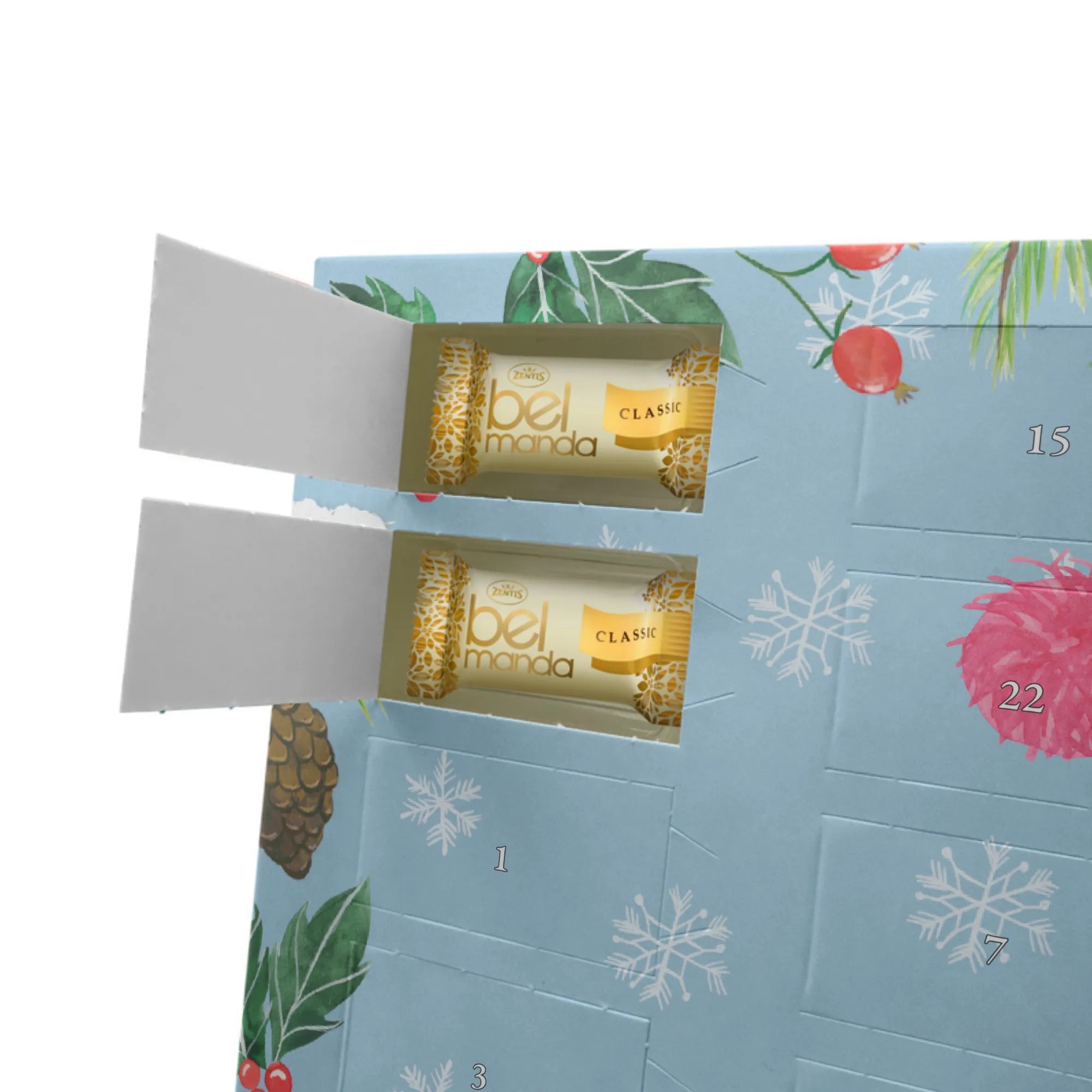 Der Adventskalender ist befüllt mit 24 einzeln verpackten Edelmarzipan Pralinés, die dank der hochwertigen Zutaten wie 29% Mandeln und feiner Kakaomasse zu einem Genuss ohnegleichen werden. Die seidenmatte Oberflächenveredelung macht das Gesamtbild noch edler und die brillanten Druckqualitäten der handgemalten Motive sind ein absoluter Hingucker.