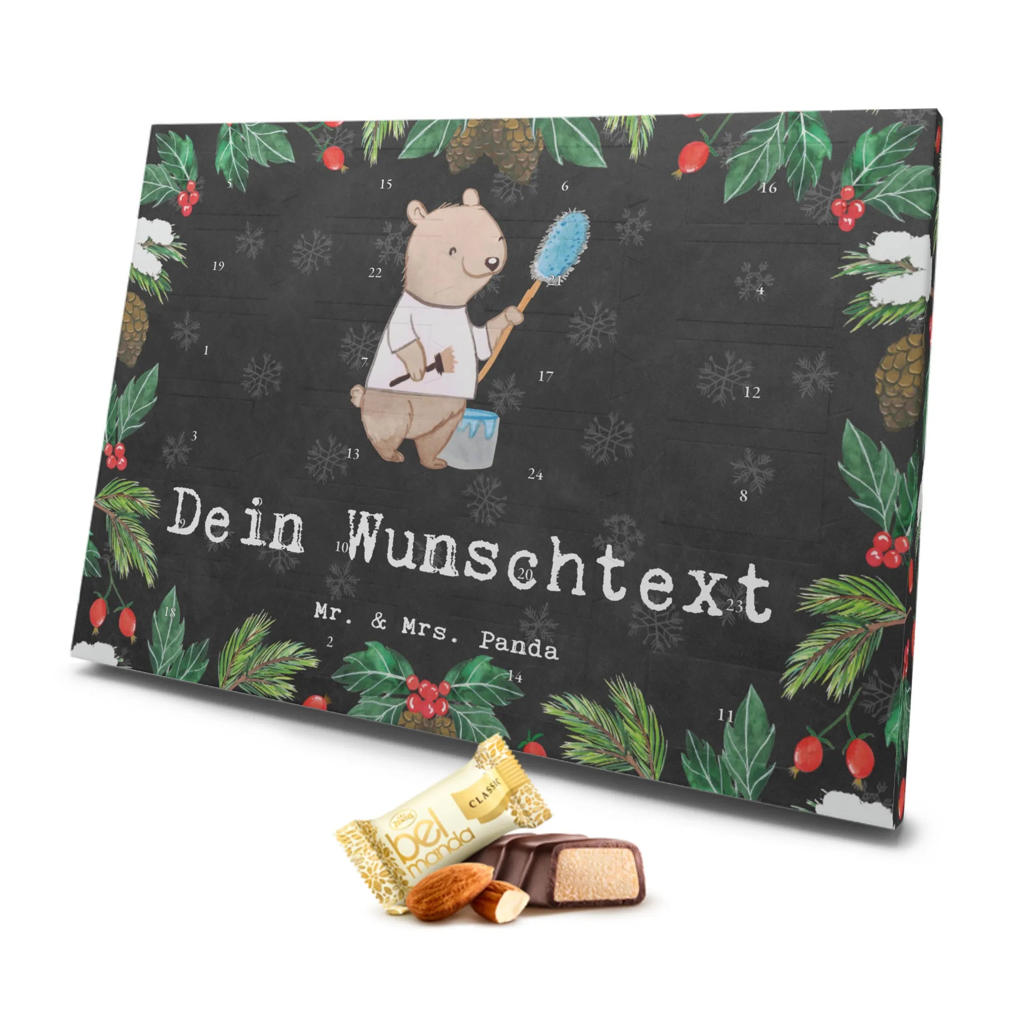 Und das Beste daran? Du kannst den Kalender mit einem individuellen Namen oder Wunschtext personalisieren, wodurch er noch mehr Bedeutung erhält. Dank seiner liebevollen Gestaltung wird dieser Adventskalender sicher für viele strahlende Gesichter sorgen.