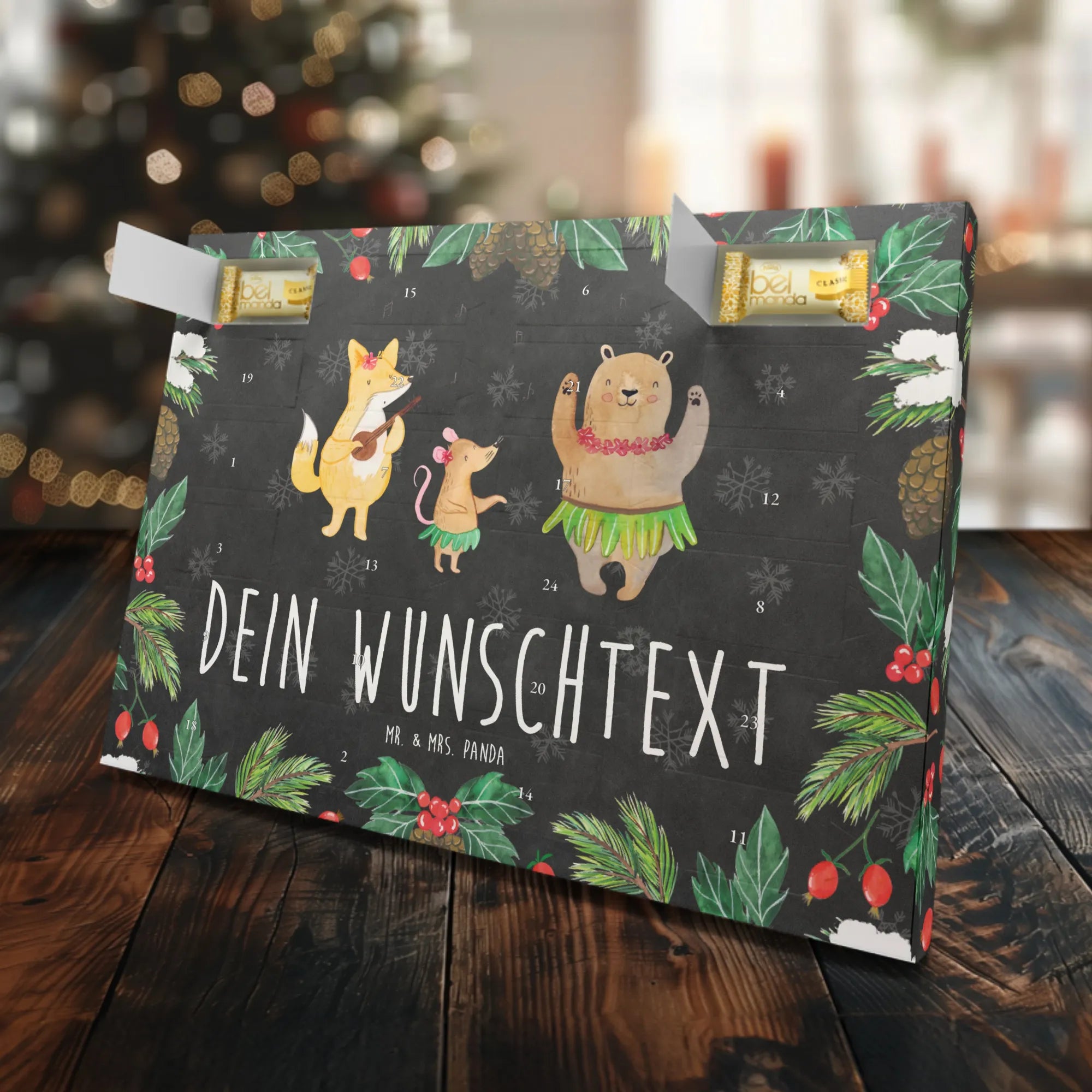 Der personalisierte Marzipan Adventskalender mit dem zauberhaften Motiv "Waldtiere Aloha" von Mr. & Mrs. Panda ist das perfekte Geschenk für alle, die das Leben lieben und es mit Lachen und Tanzen bereichern möchten! 🎉
