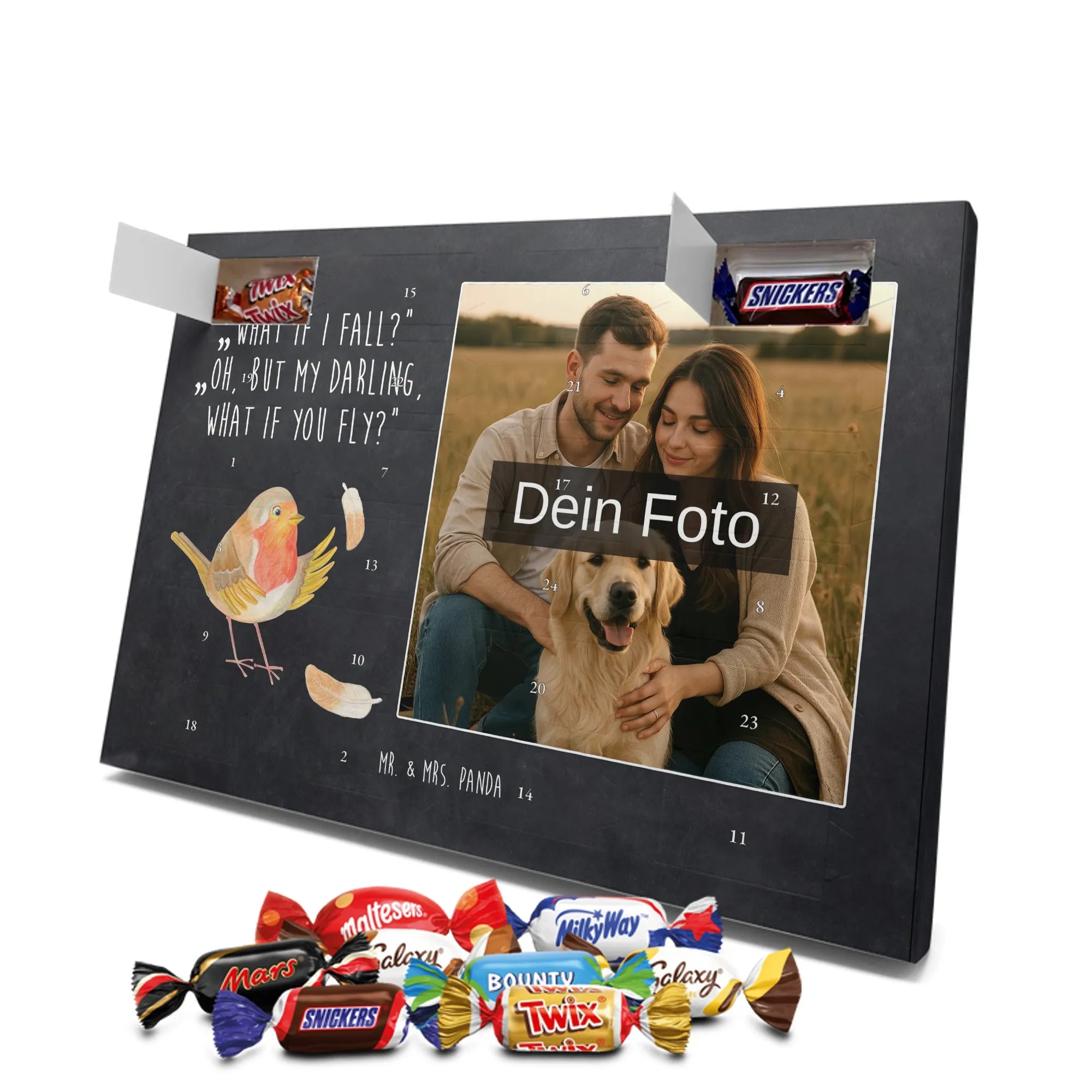 Verschenke Vorfreude: Gestalte jetzt deinen personalisierten Schoko Foto Adventskalender und überrasche mit süßen, persönlichen Momenten von Mr. & Mrs. Panda.