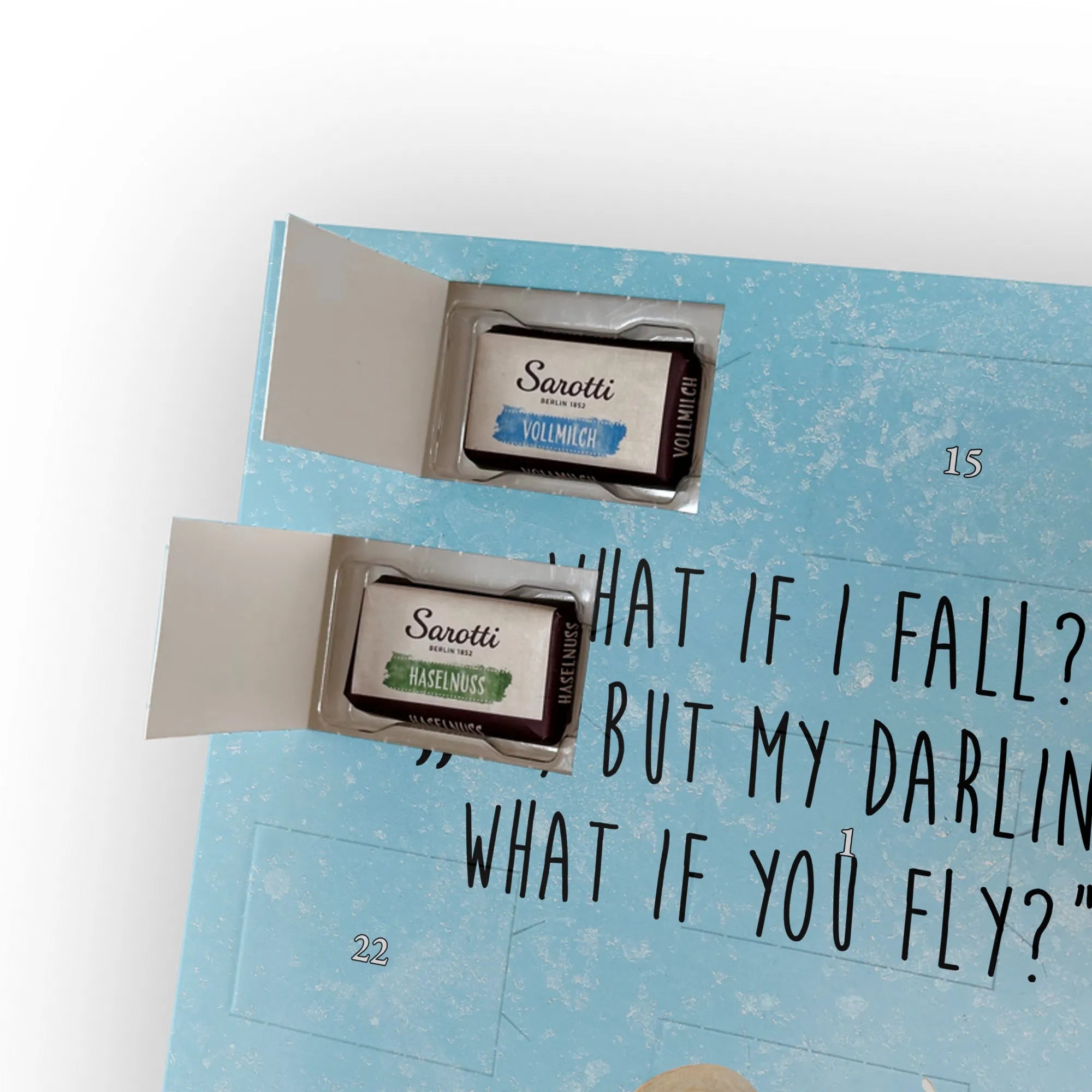 Personalisierter Schoko-Adventskalender mit Foto – das kleine Weihnachtswunder von Mr. & Mrs. Panda! Verschenke jeden Tag Vorfreude: Der Kalender ist liebevoll gestaltet mit unseren herzlichen Illustrationen und Sprüchen, während dein Foto die persönliche Mitte bildet. Bitte lade ein hochauflösendes Foto hoch und prüfe den Bildausschnitt, damit nichts Wichtiges verloren geht. Nutze nur Bilder, für die du die Rechte hast. Die hochwertige, seidenmatte Veredelung und die bedruckten Seitenflächen garantieren ein edles Erscheinungsbild. Maße: 355 mm x 245 mm x 11 mm; lässt sich sowohl aufhängen als auch aufstellen. Achtung: Fotos werden nicht nachbearbeitet oder zugeschnitten; personalisierte Artikel sind vom Rückgaberecht ausgeschlossen. Gefüllt mit 24 einzeln verpackten Schokoladentäfelchen aus den vier Geschmacksrichtungen Vollmilch, Nougat, Zartbitter und Haselnuss – von Sarotti® und Confiserie Heidel®. Insgesamt enthält der Kalender 107 g Markenschokolade. Ein persönliches Geschenk mit süßem Inhalt, ideal für Partner, Familie und Freunde, verpackt mit der typischen Mr. & Mrs. Panda Liebe zum Detail.