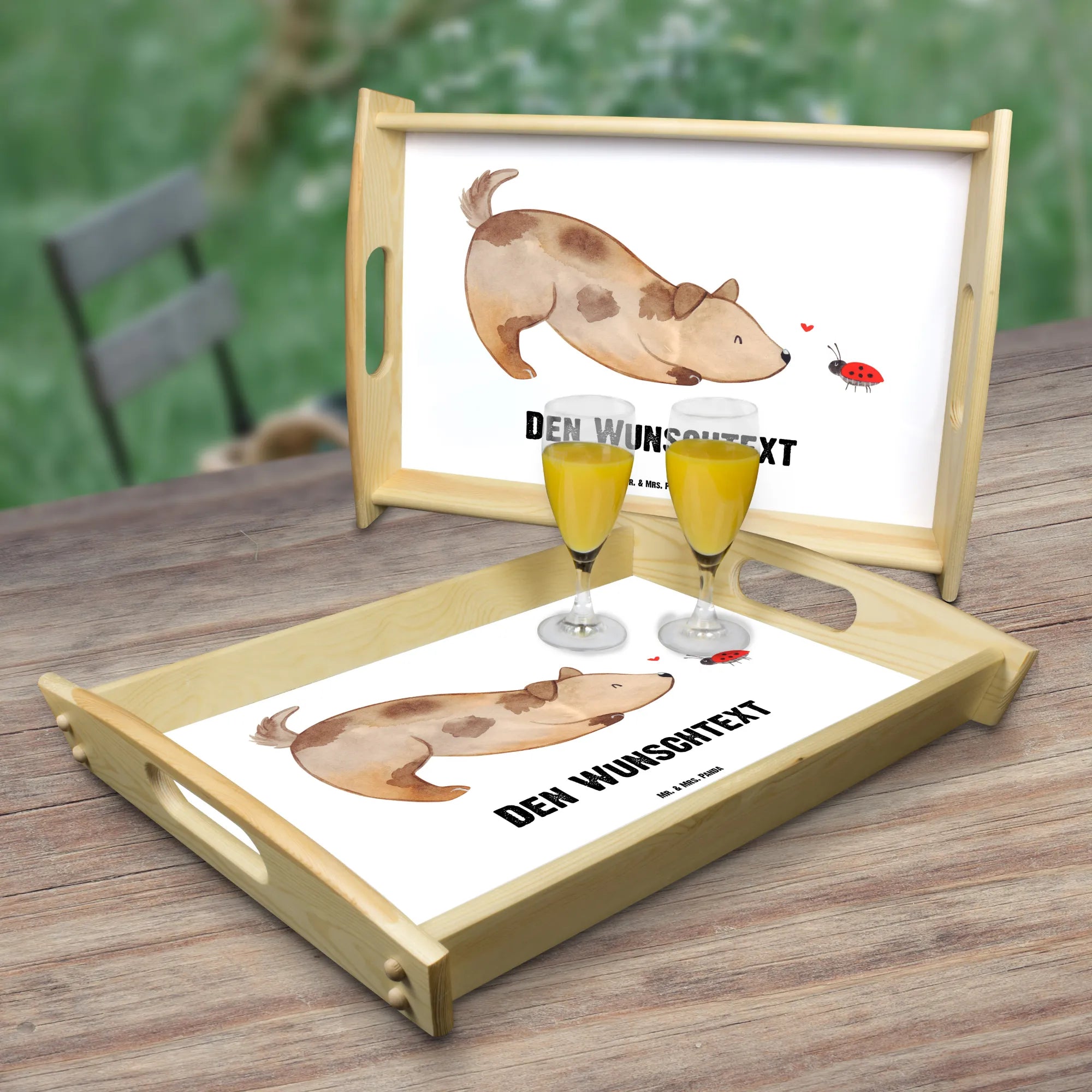 Elevate your home ambiance with our personalized serving tray by Mr. & Mrs. Panda! This charming tray, crafted from glazed real wood, measures 480 mm x 365 mm x 65 mm, and is perfect for serving breakfast, snacks, or drinks. Adorned with enchanting motifs and quotes, you can personalize it with a name or special message. Thoughtfully designed with ergonomic side handles for easy carrying, plus anti-slip pads to keep everything secure, it's both stylish and practical. Its durable surface resists scratches, and cleaning is hassle-free—just use a damp cloth and mild soap, avoiding soaking! Please remember that custom designs may require extra production time. Make every occasion special with this beautiful tray that makes a fantastic gift!